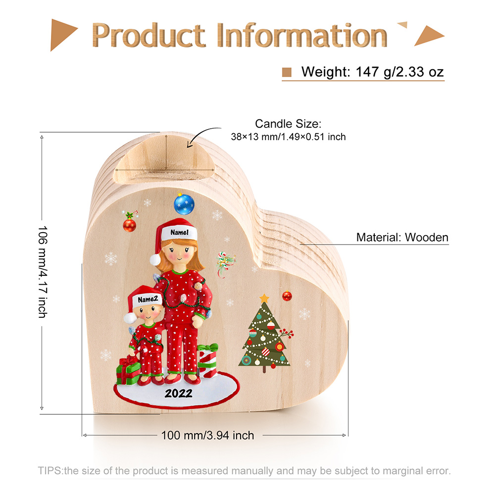 Herzform Kerzenhalter Personalisierte 2 Namen & Text Mutter und Kind Weihnacht Thema
