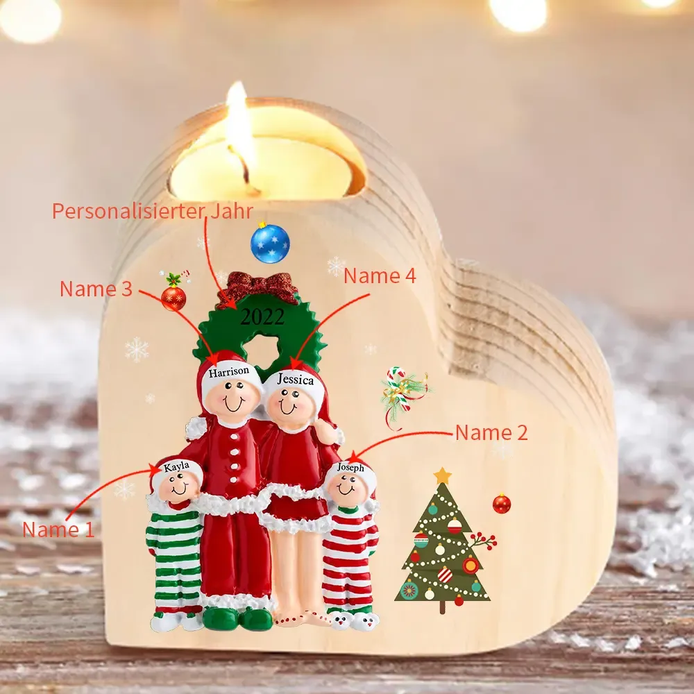Herzform Kerzenhalter Personalisierte 4 Namen & Jahr Weihnacht Thema Kerzenhalter