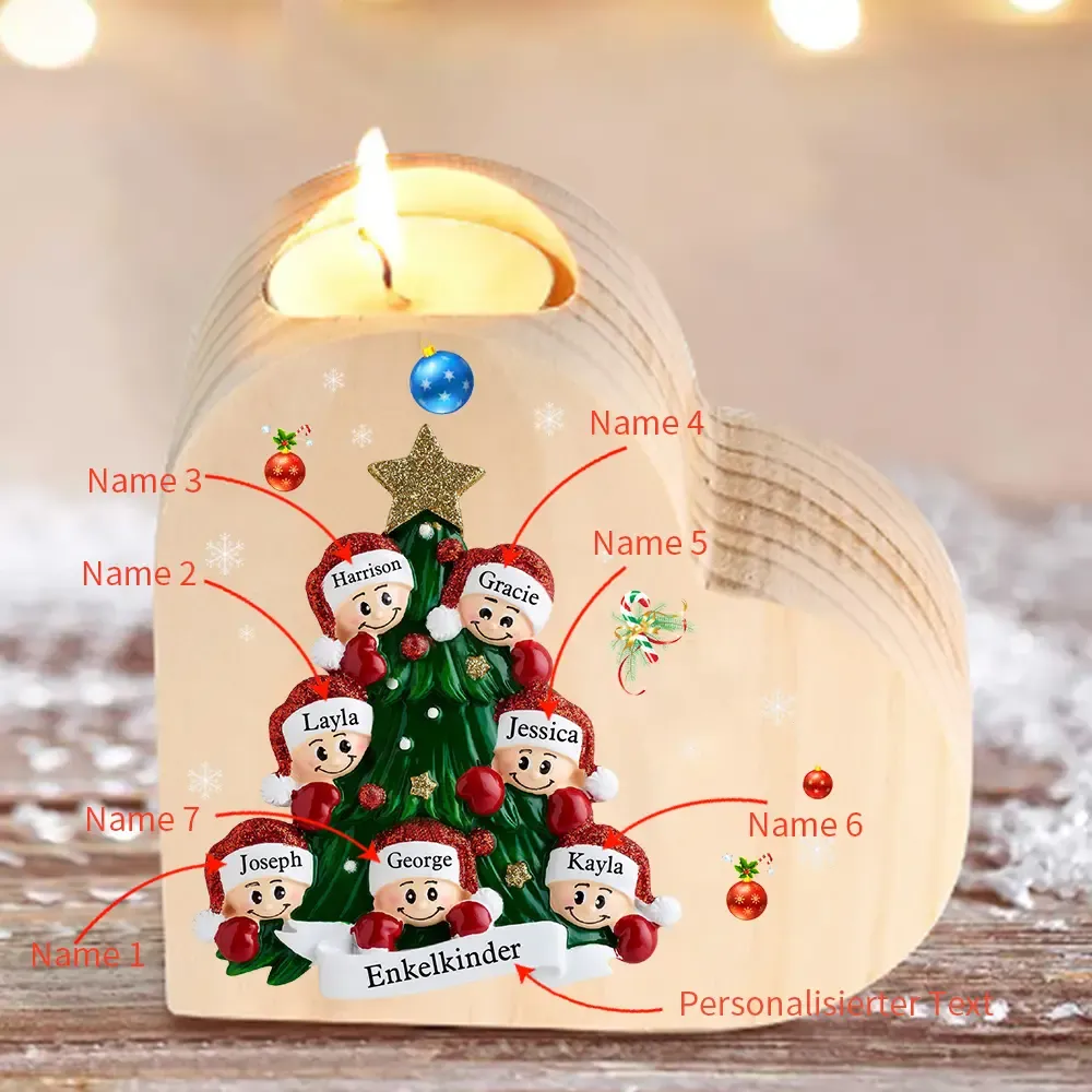 Herzform Kerzenhalter Personalisierte 7 Namen & Text Weihnachtsbaum & 7Kinder Kerzenhalter