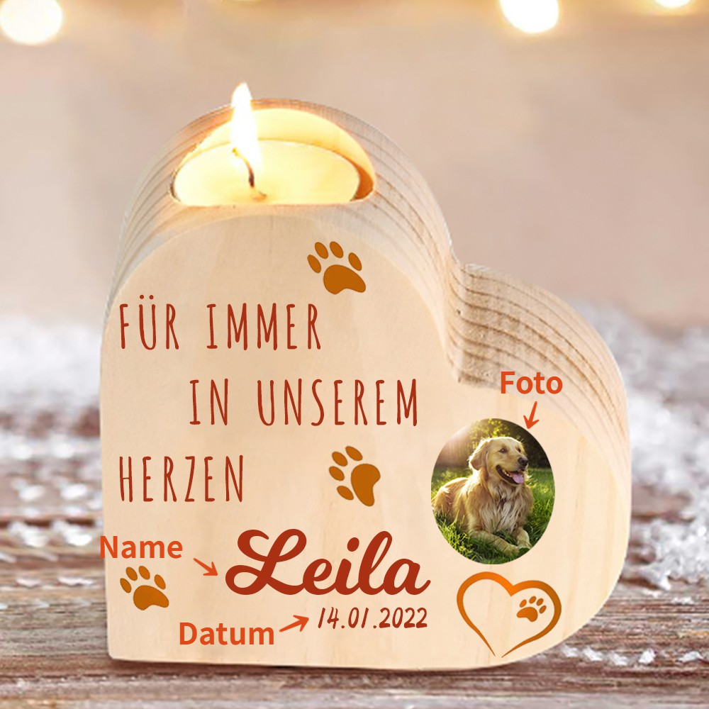 Herzform Kerzenhalter-Personalisierter Name Foto Datum-Für immer in unseren Herzen-Trauer Kerzenhalter für Haustier