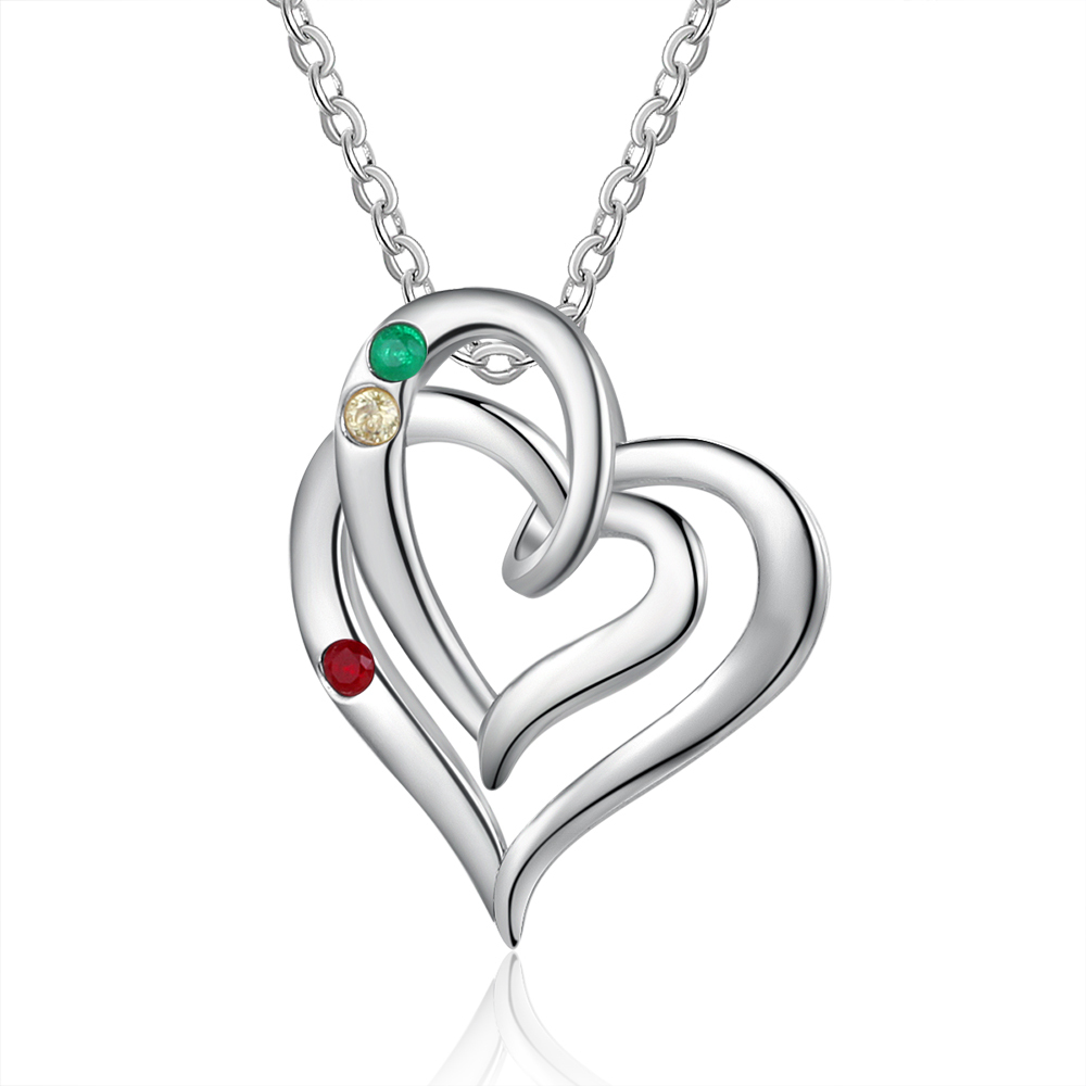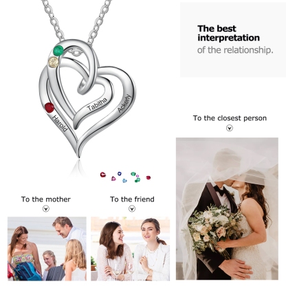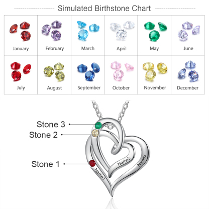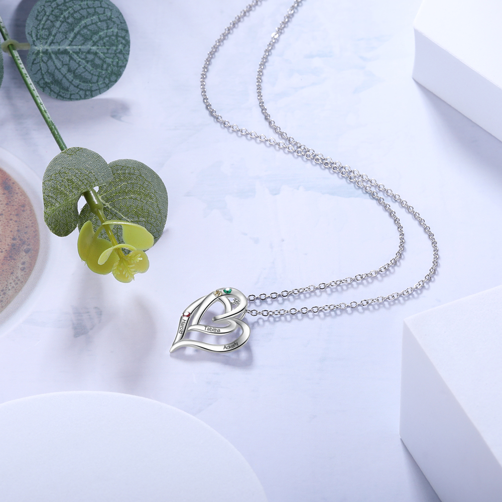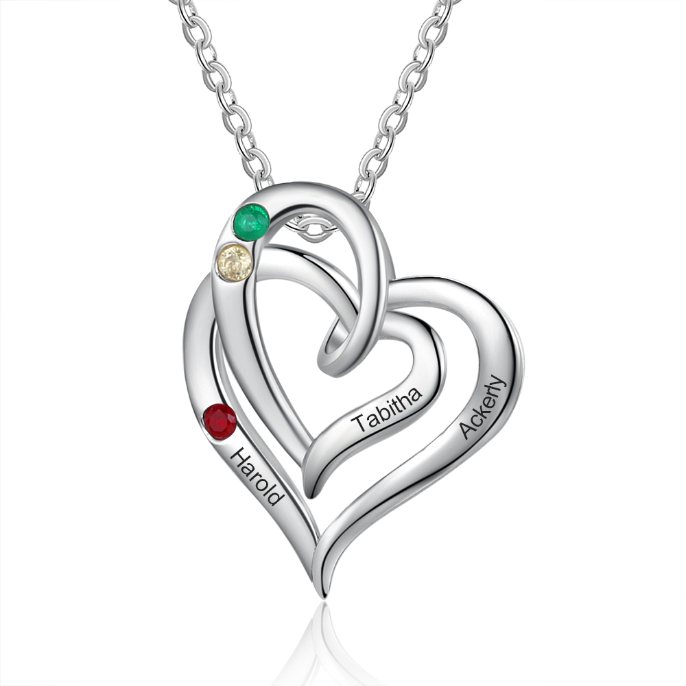 Herzförmige Halskette mit 3 Namen und 3 Geburtssteinen