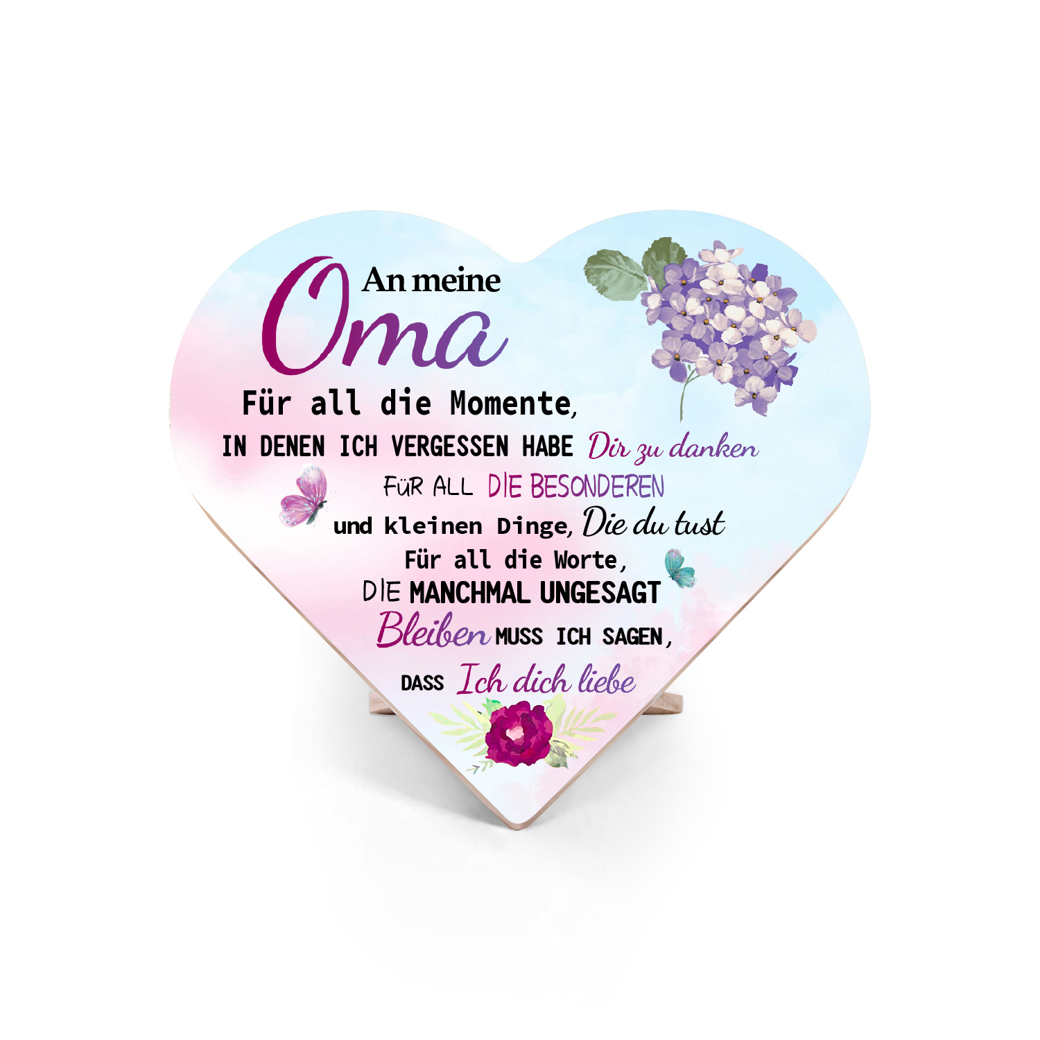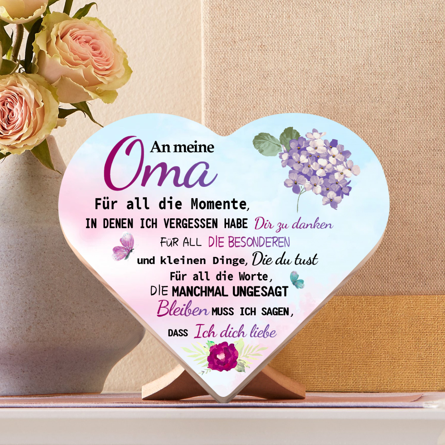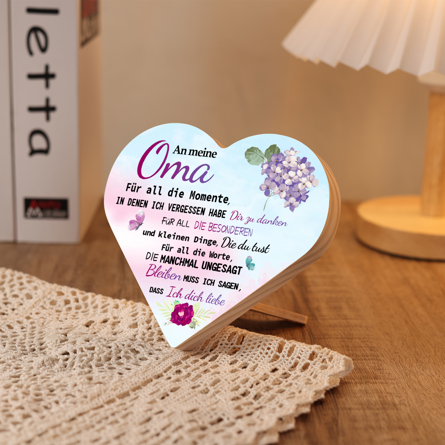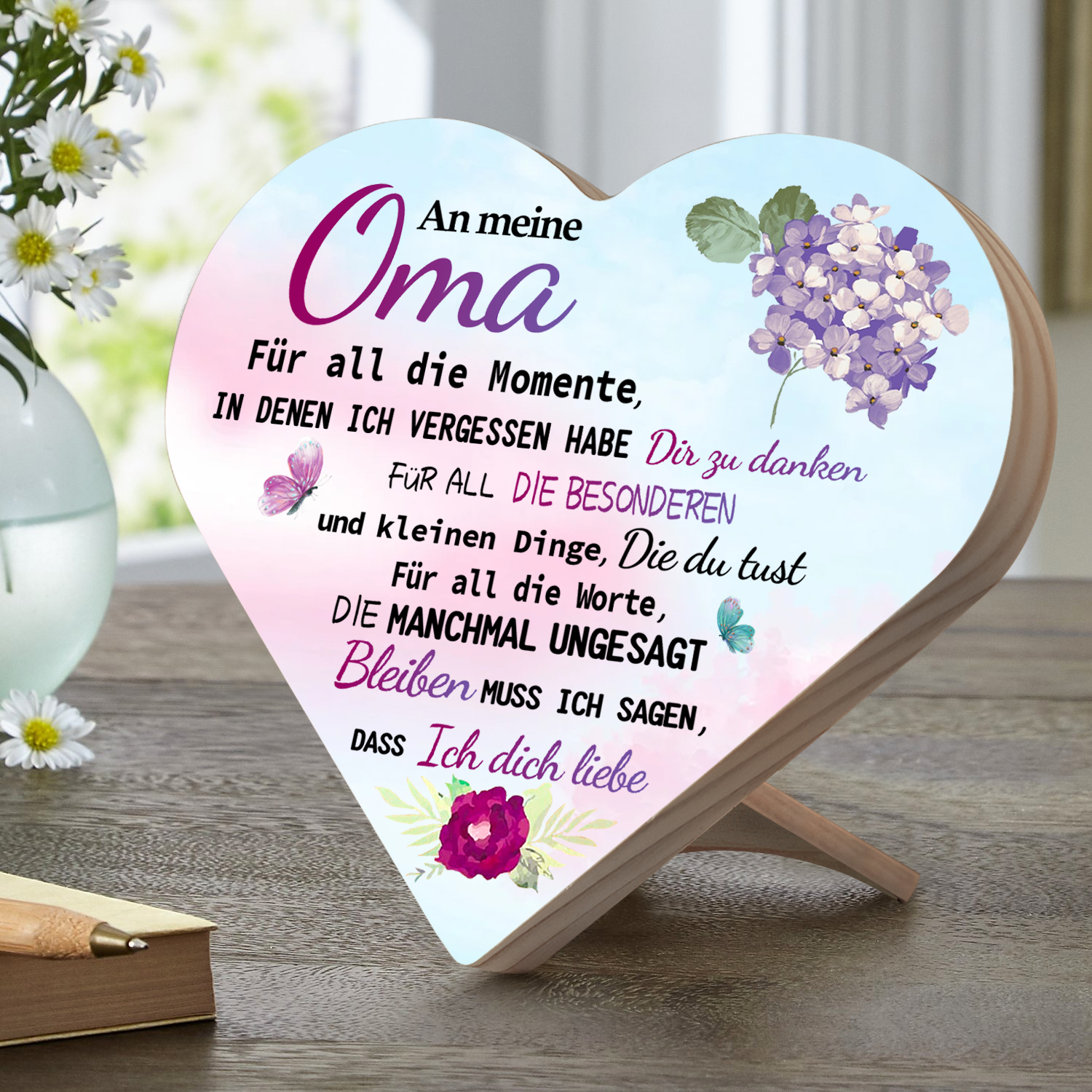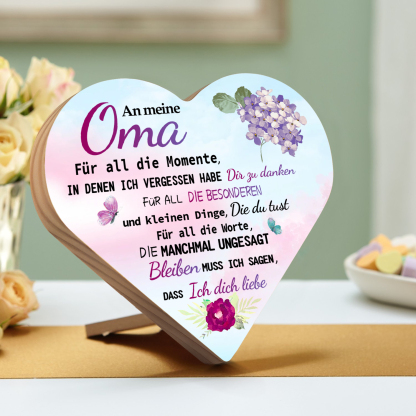 Herzholz-Deko-An meine Oma Ich liebe dich-Schreibtischdekoration Holz Ornament