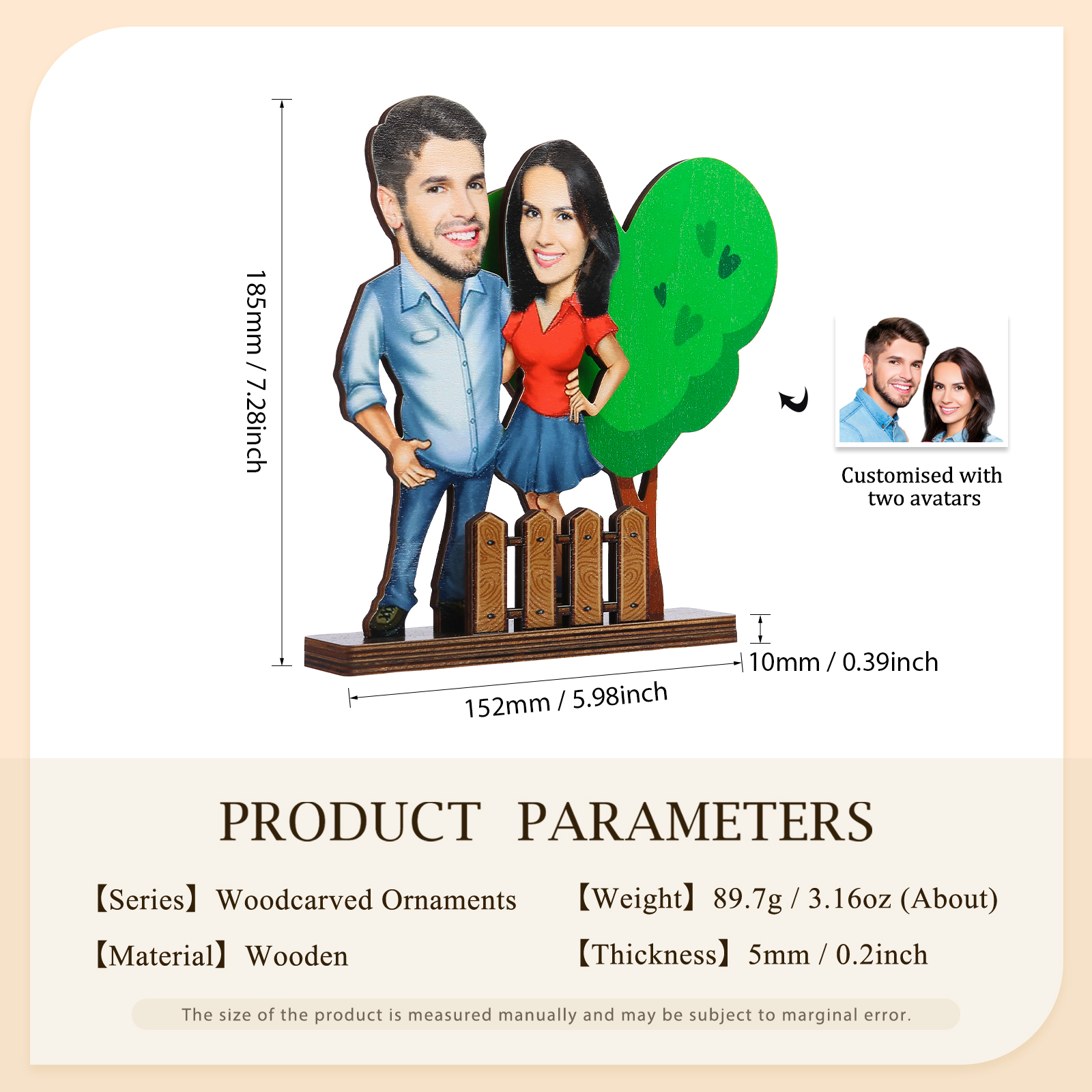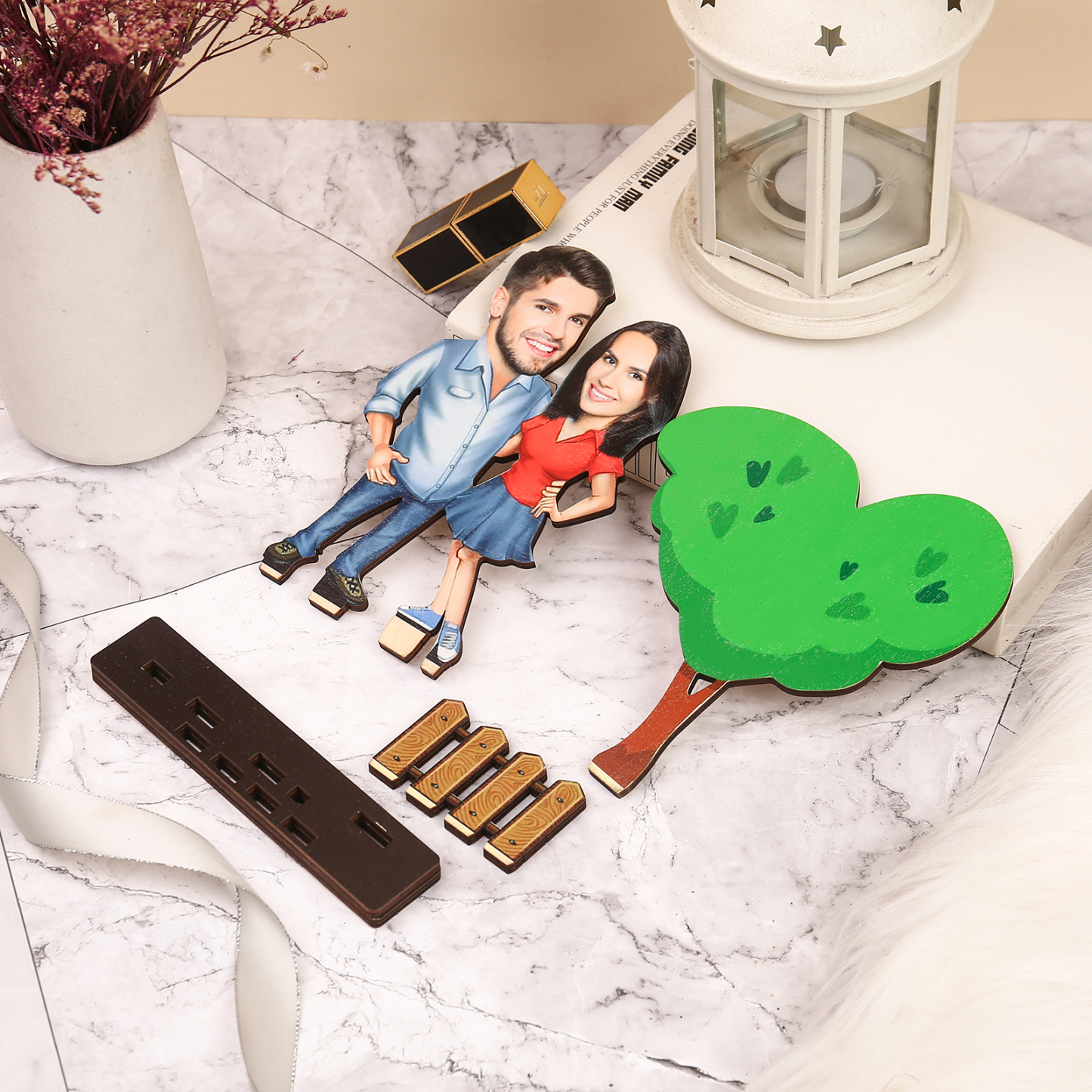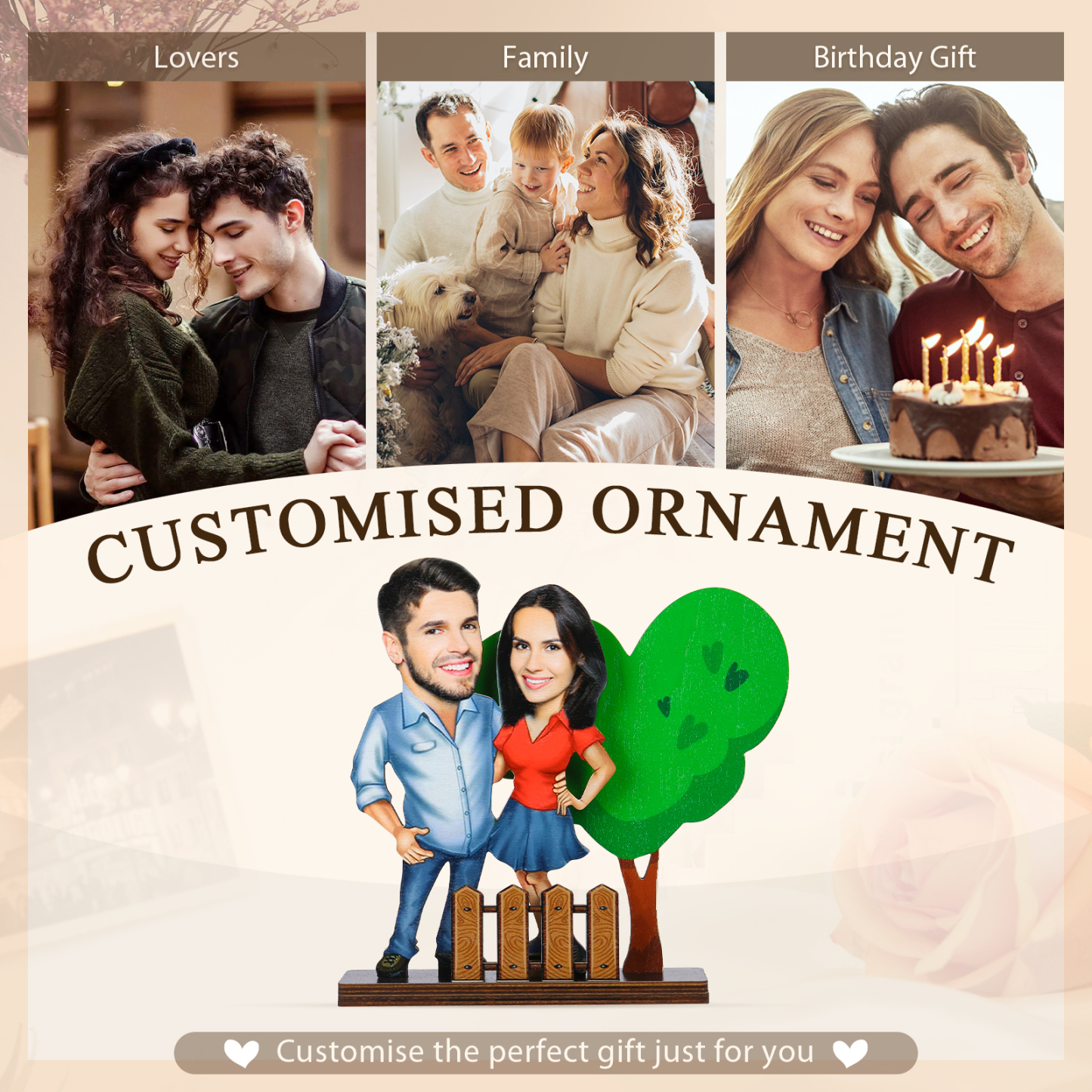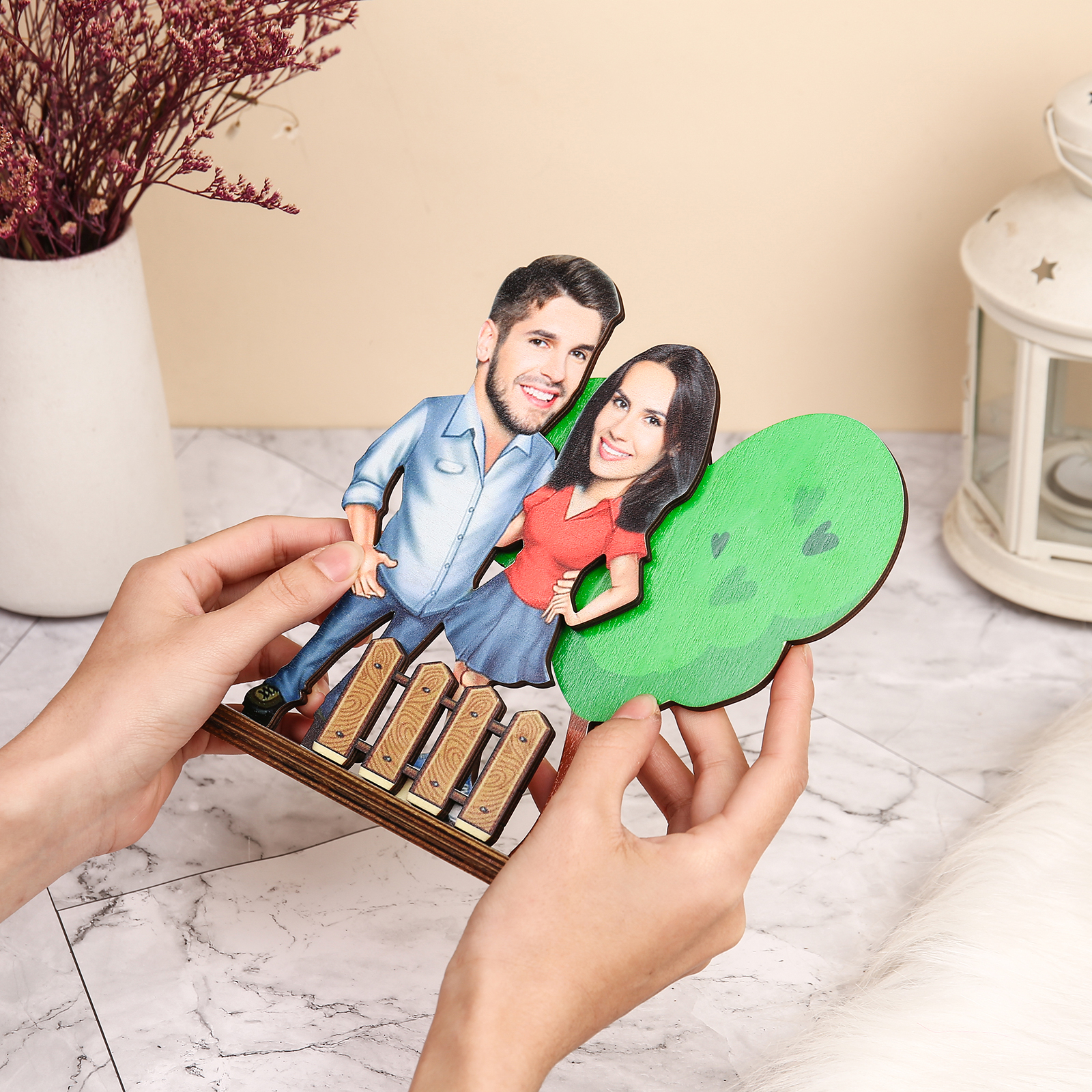 Holz Deko-Personalisierbare 2 Fotos Ornament für Paare-Holzdekoration