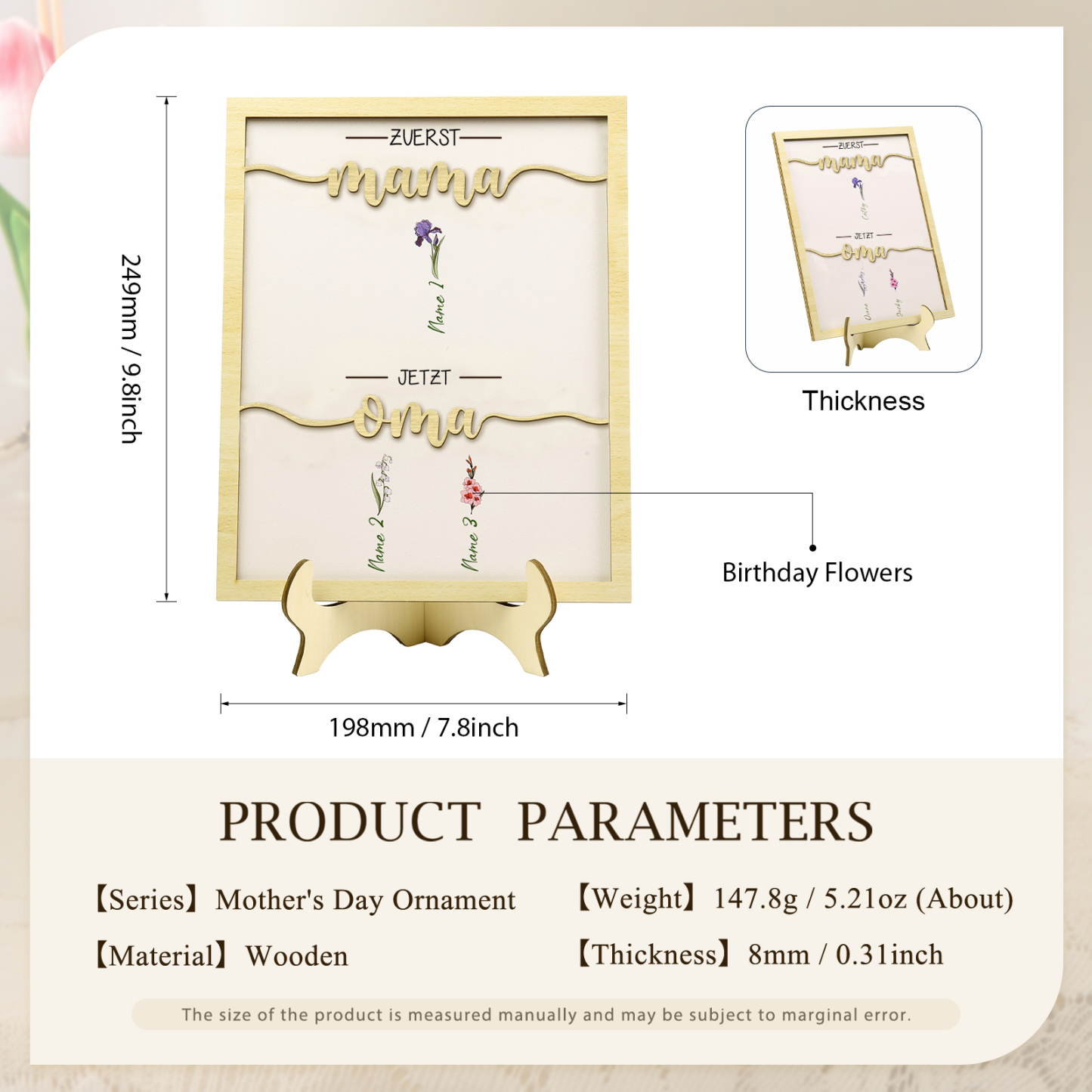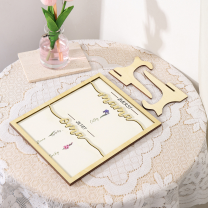 Holz Deko-Personalisierbare 3 Namen & Geburtsblume Ornament Zuerst Mama Jetzt Oma Holzdekoration für Mutter/Großmutter