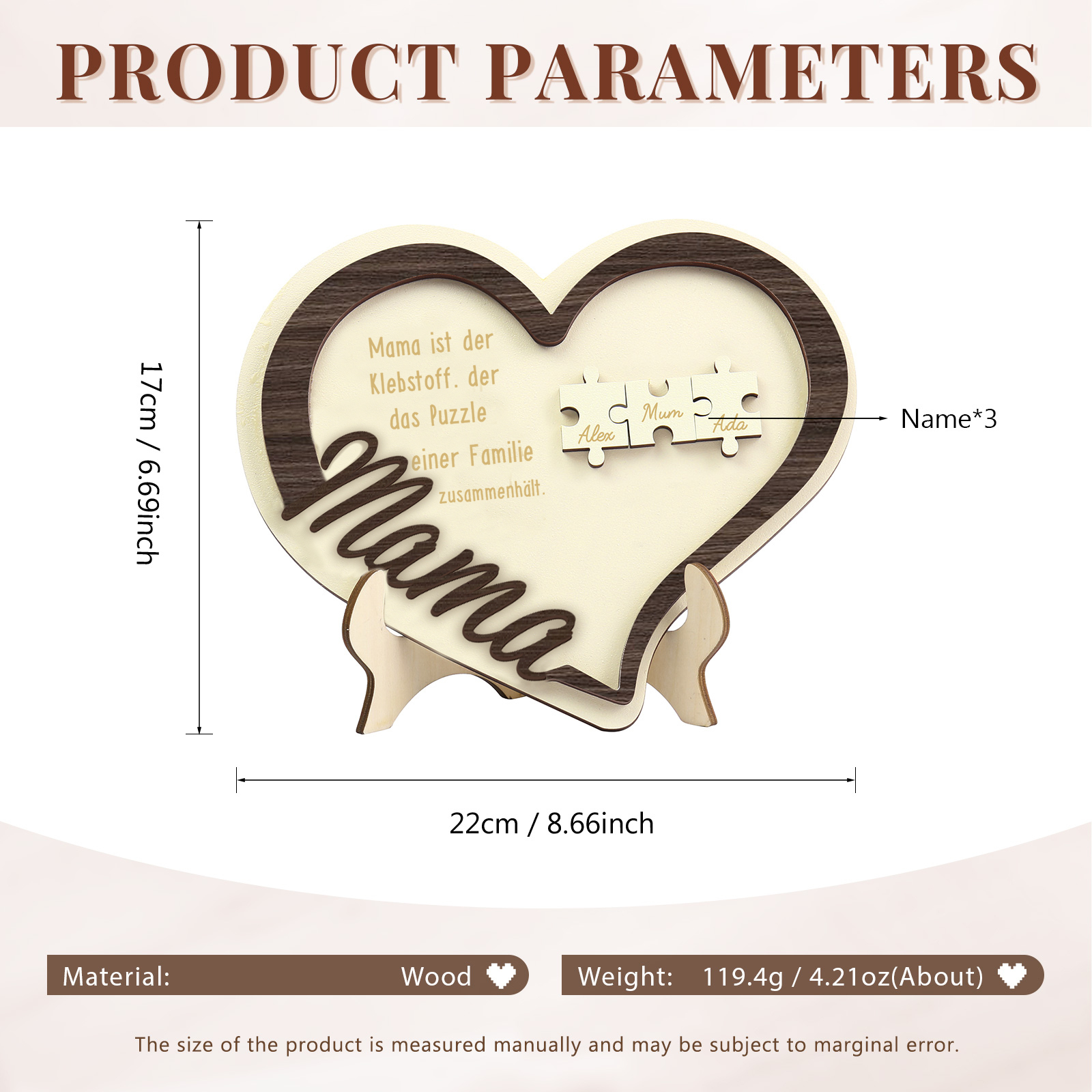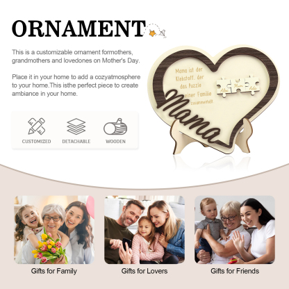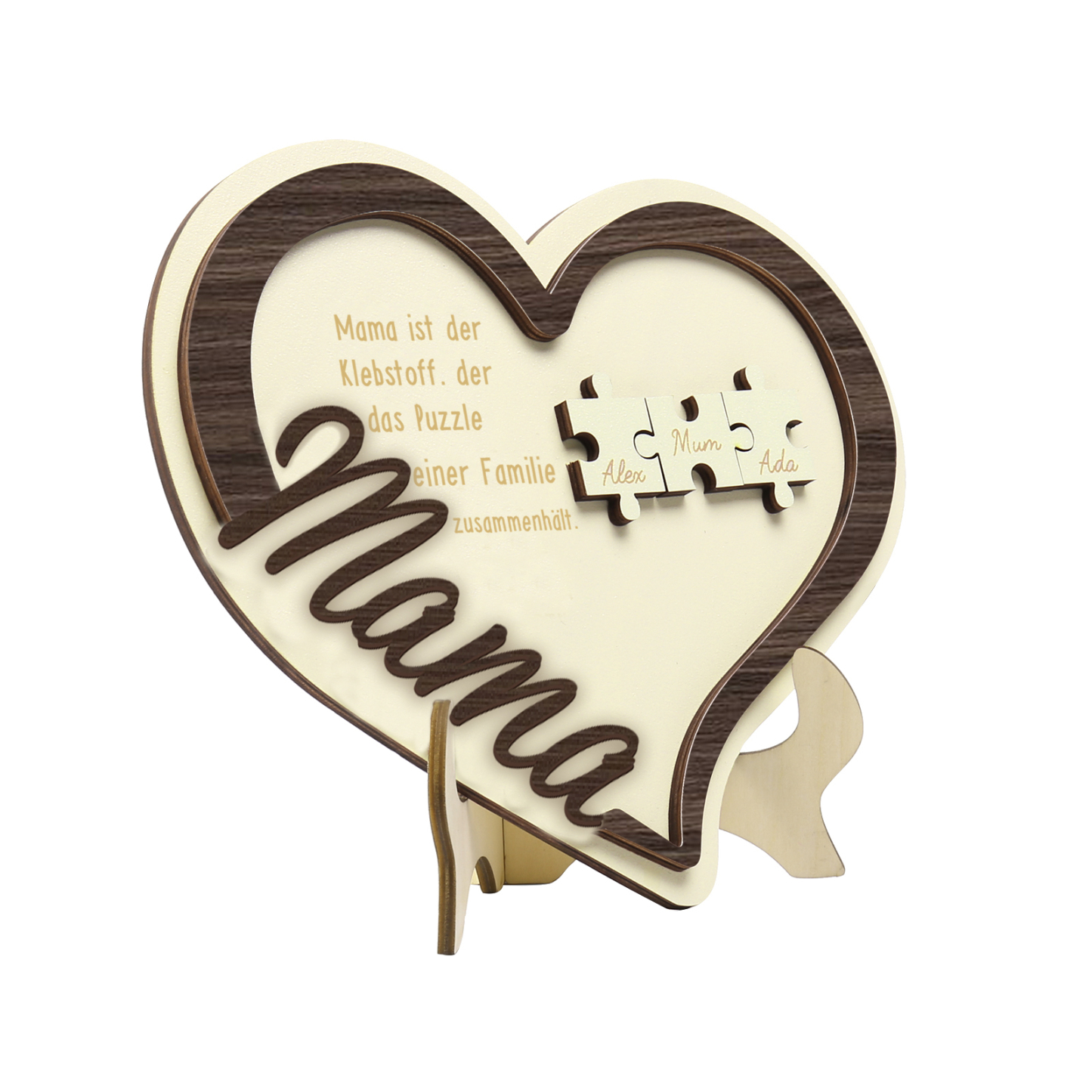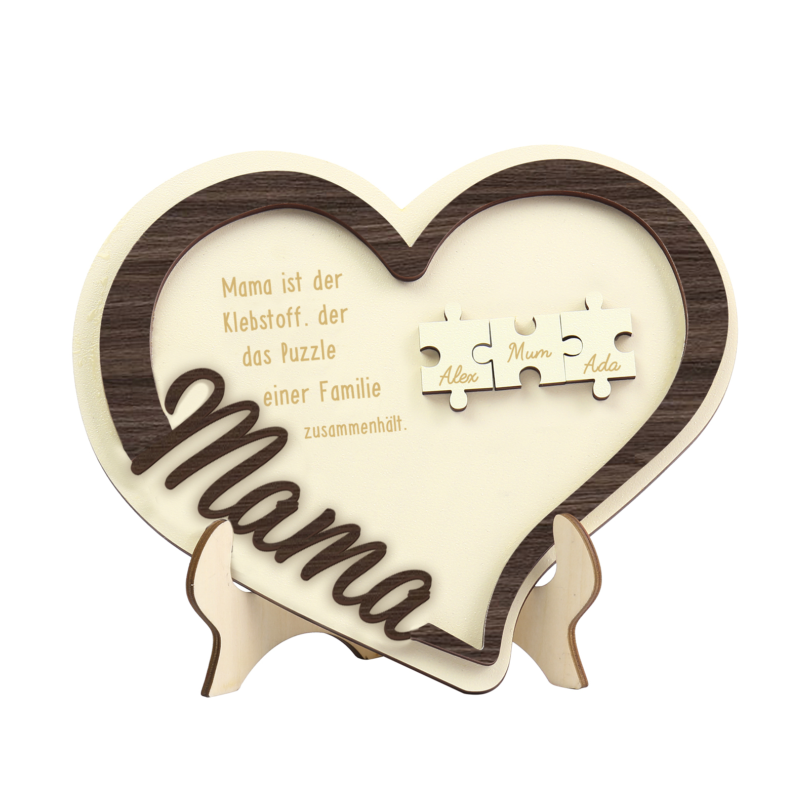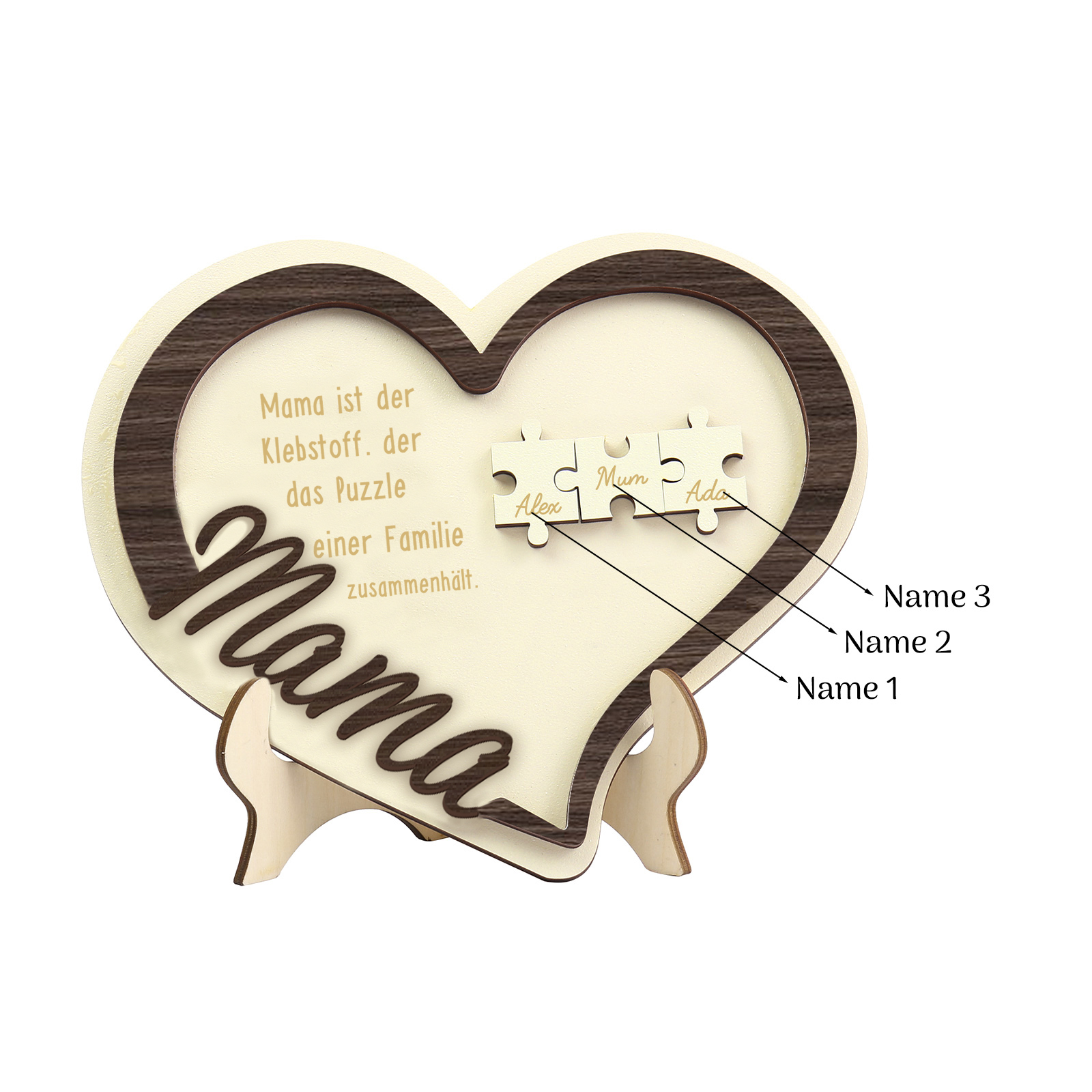 Holz Deko-Personalisierbare 3 Namen Ornament -Mama ist der Klebstoff. der das Puzzle einer Familie zusammenhält- Herz Holzdekoration für Mutter