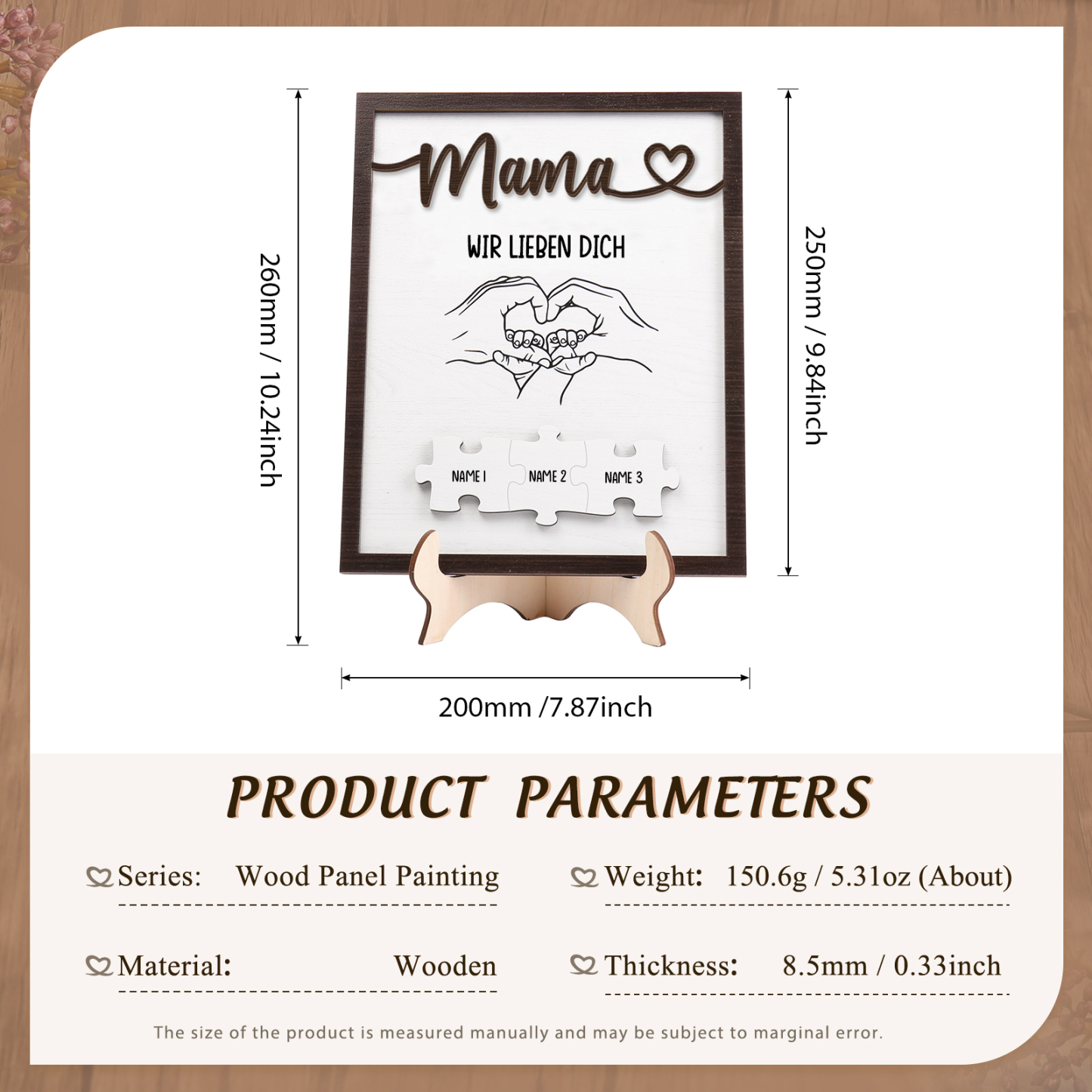 Holz Deko-Personalisierbare 3 Namen Ornament Mama Wir lieben dich Holzdekoration für Mutter