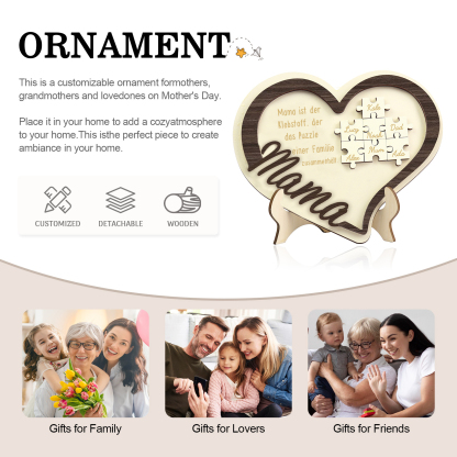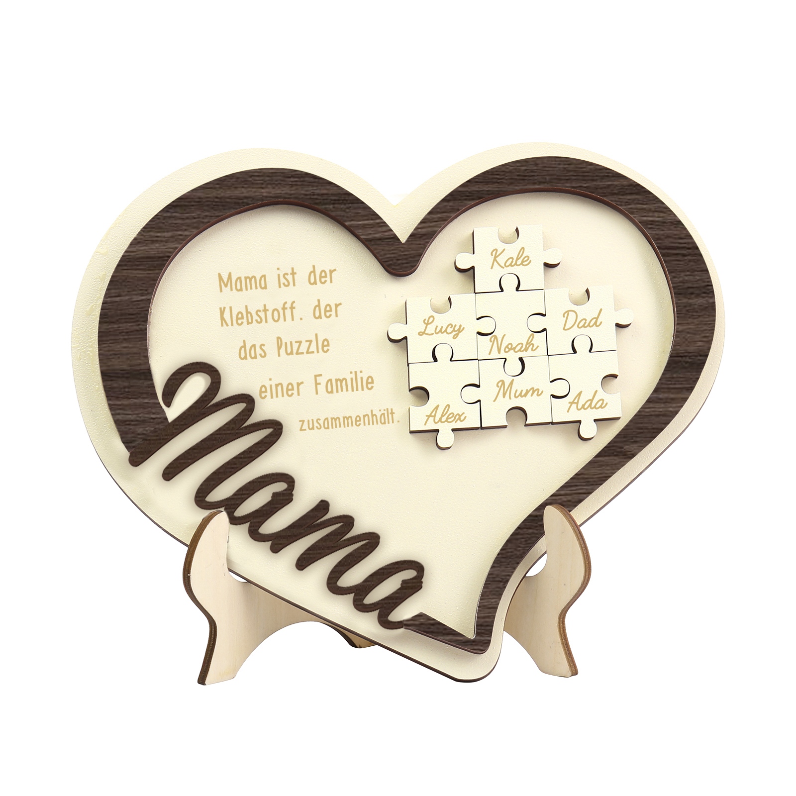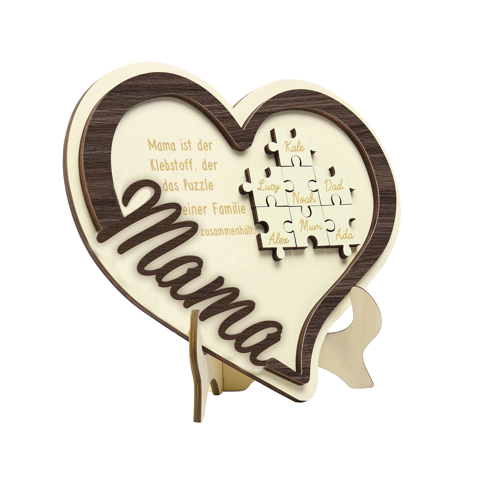 Holz Deko-Personalisierbare 7 Namen Ornament -Mama ist der Klebstoff. der das Puzzle einer Familie zusammenhält- Herz Holzdekoration für Mutter
