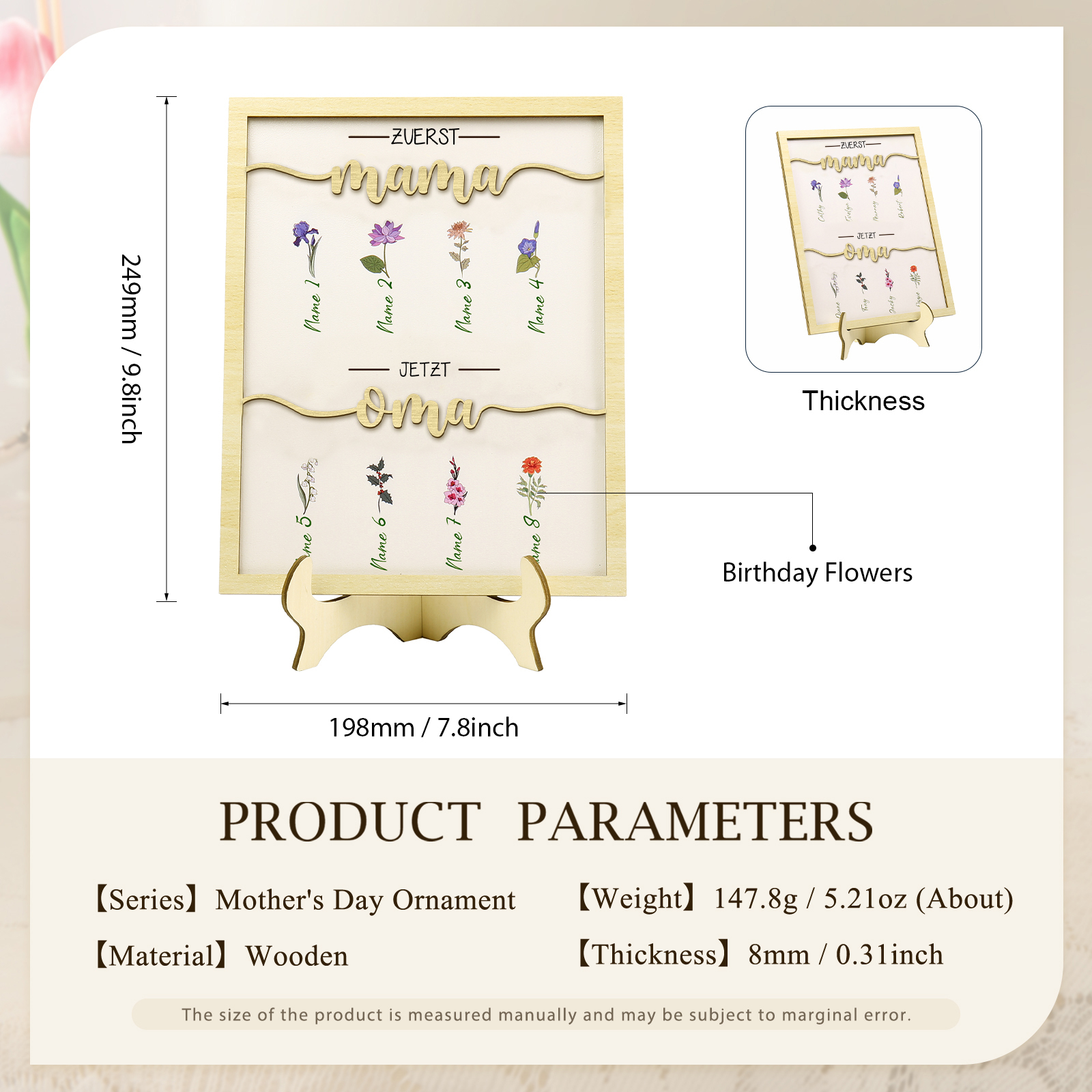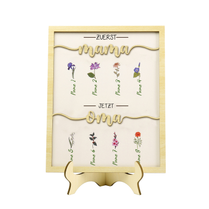 Holz Deko-Personalisierbare 8 Namen & Geburtsblume Ornament Zuerst Mama Jetzt Oma Holzdekoration für Mutter/Großmutter
