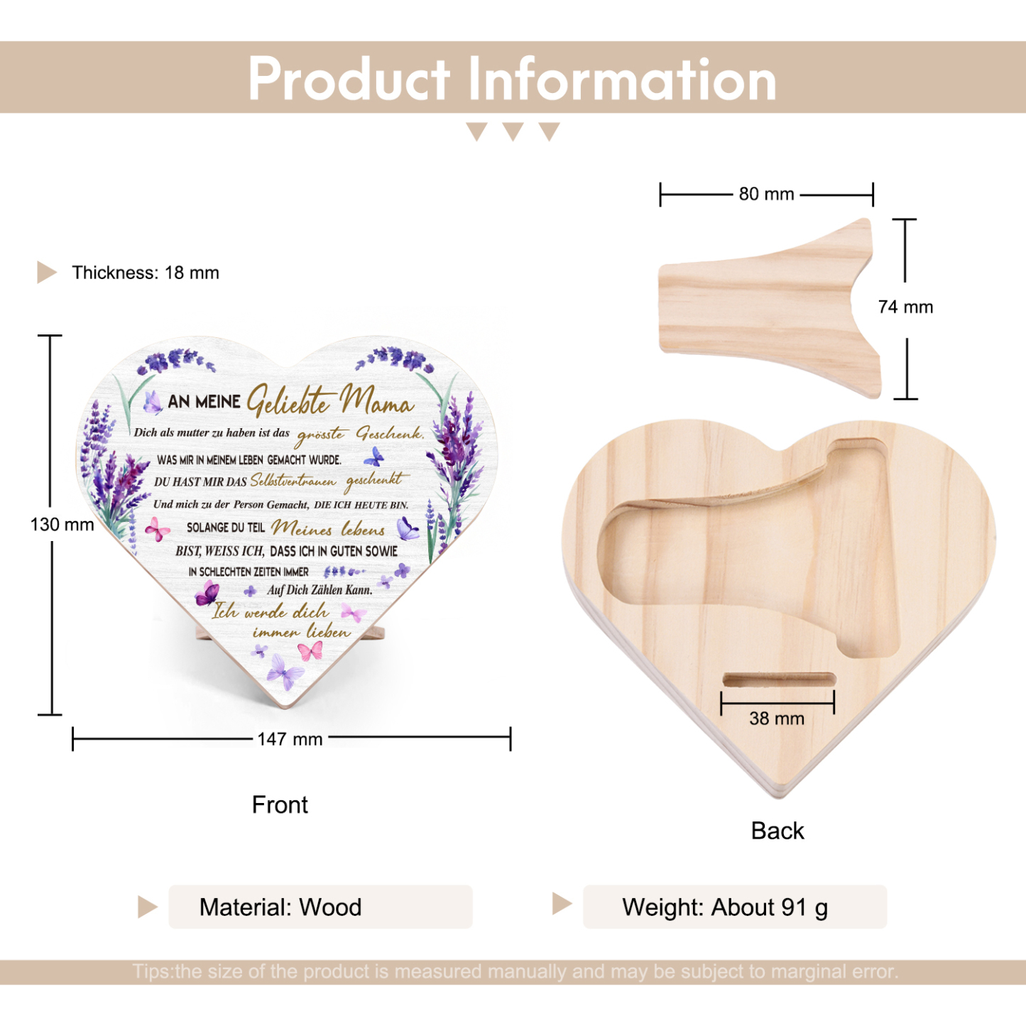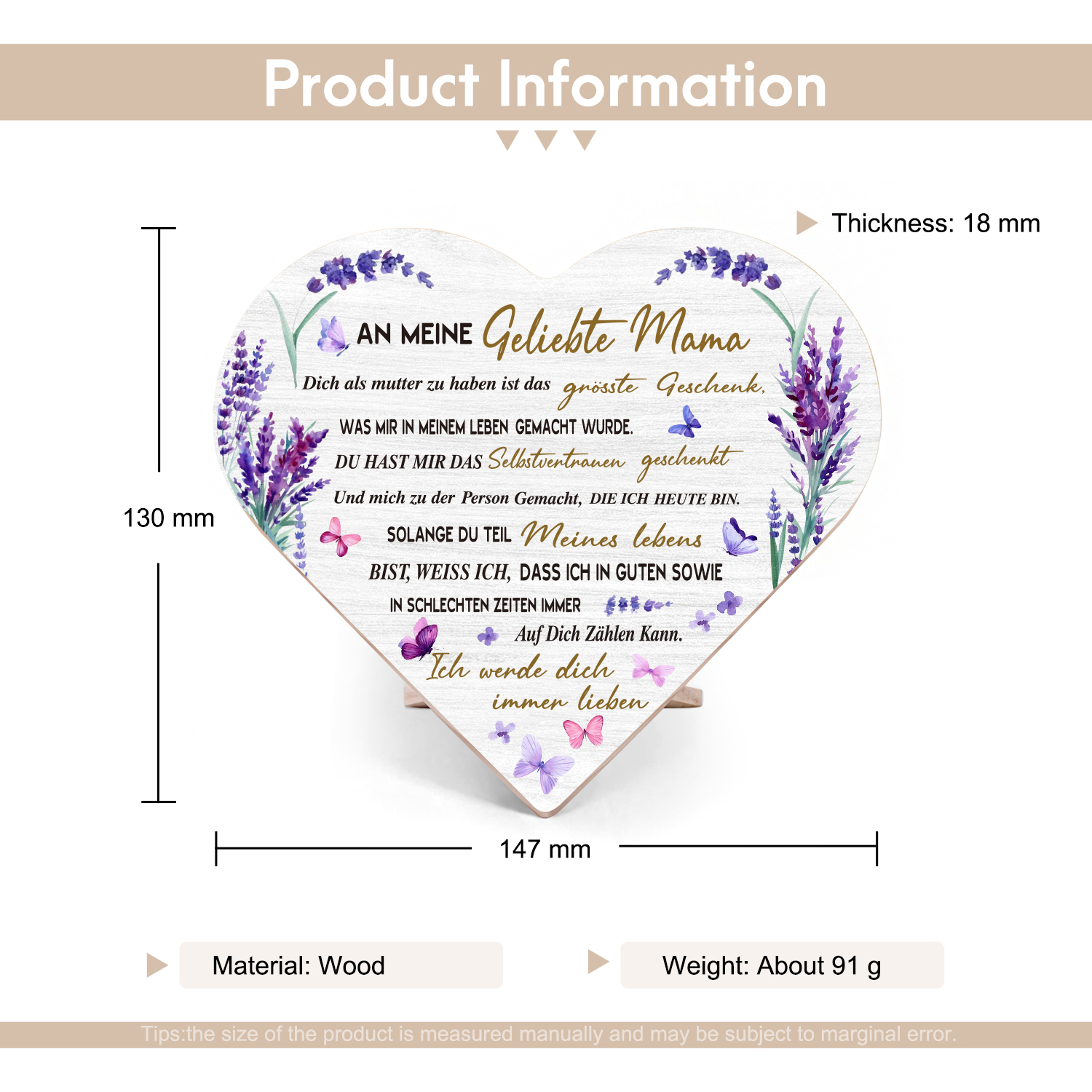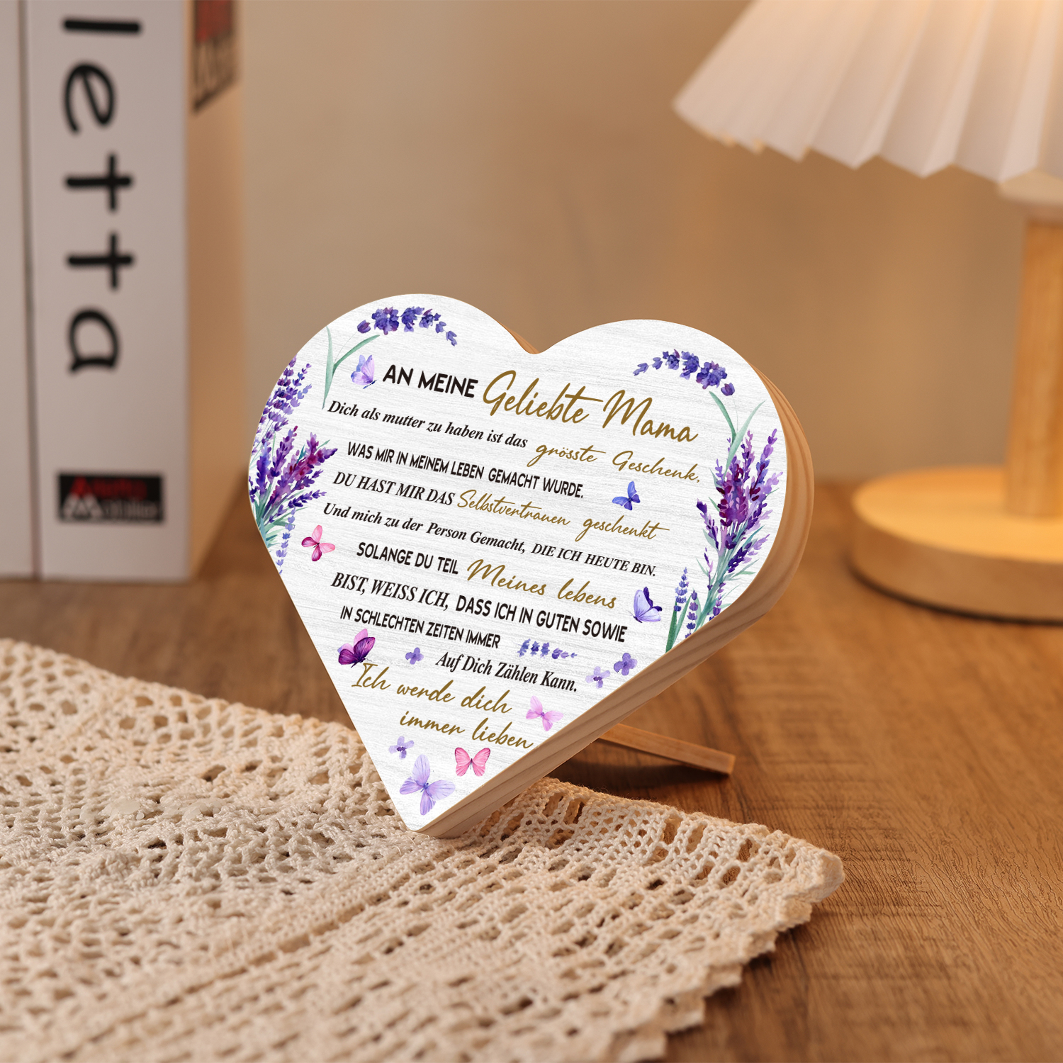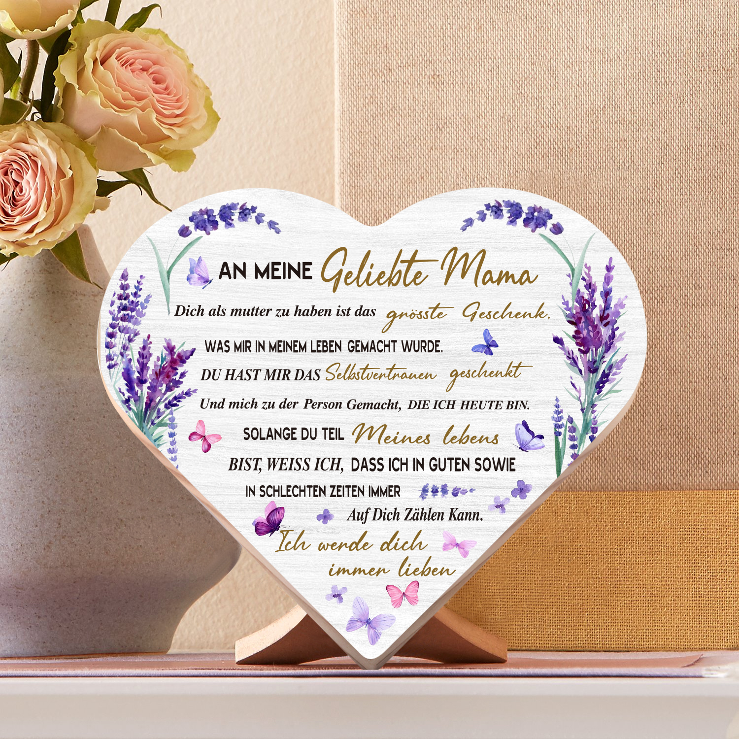 Holz Herzornament Geschenk zum Muttertag-An meine geliebte Mama-Schreibtischdekoration