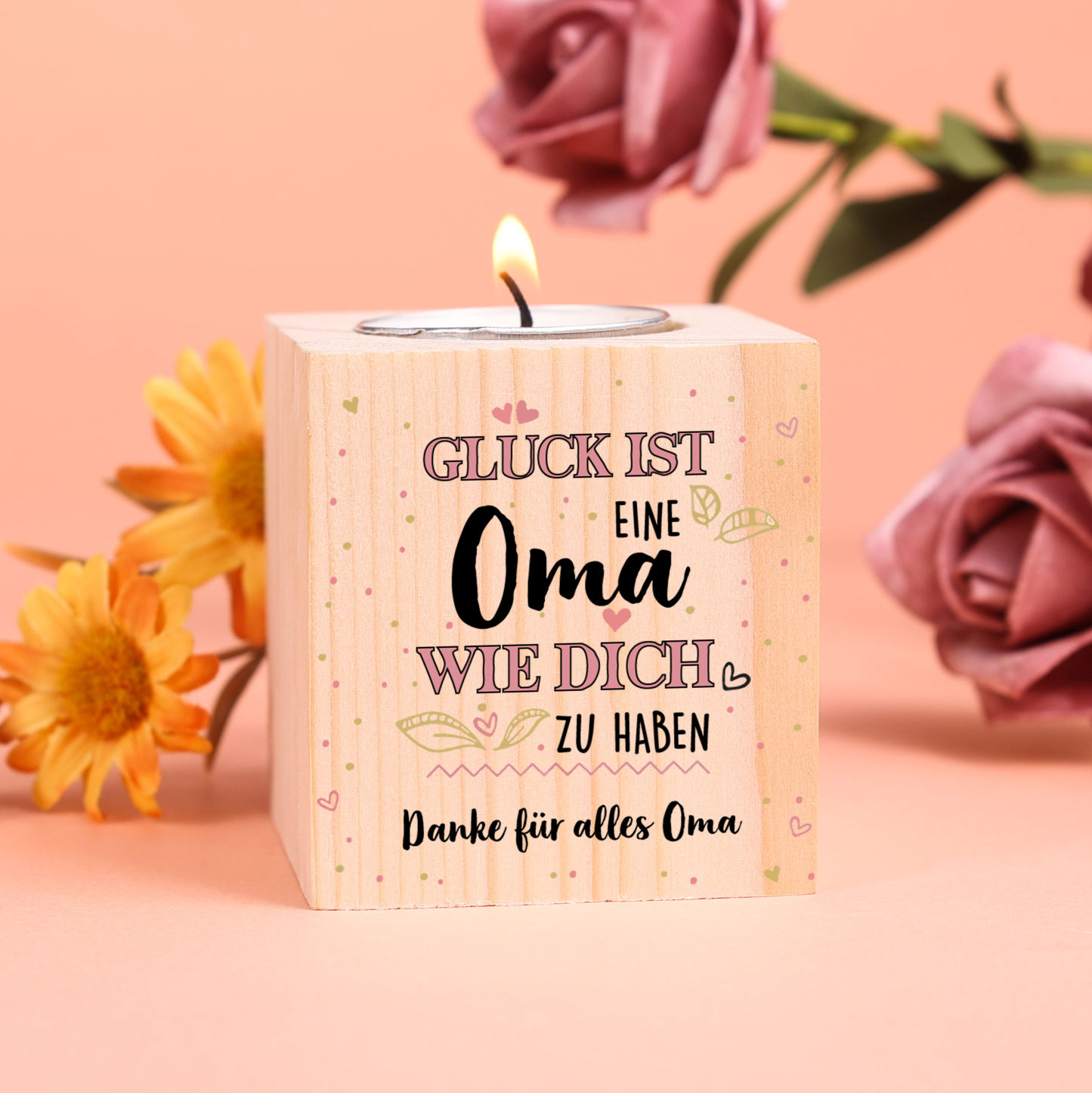 Holz Kompliment Kerzenhalter 1 bedruckte Seite-Glück ist eine Oma wie dichl zu haben-Geschenk für Großmutter
