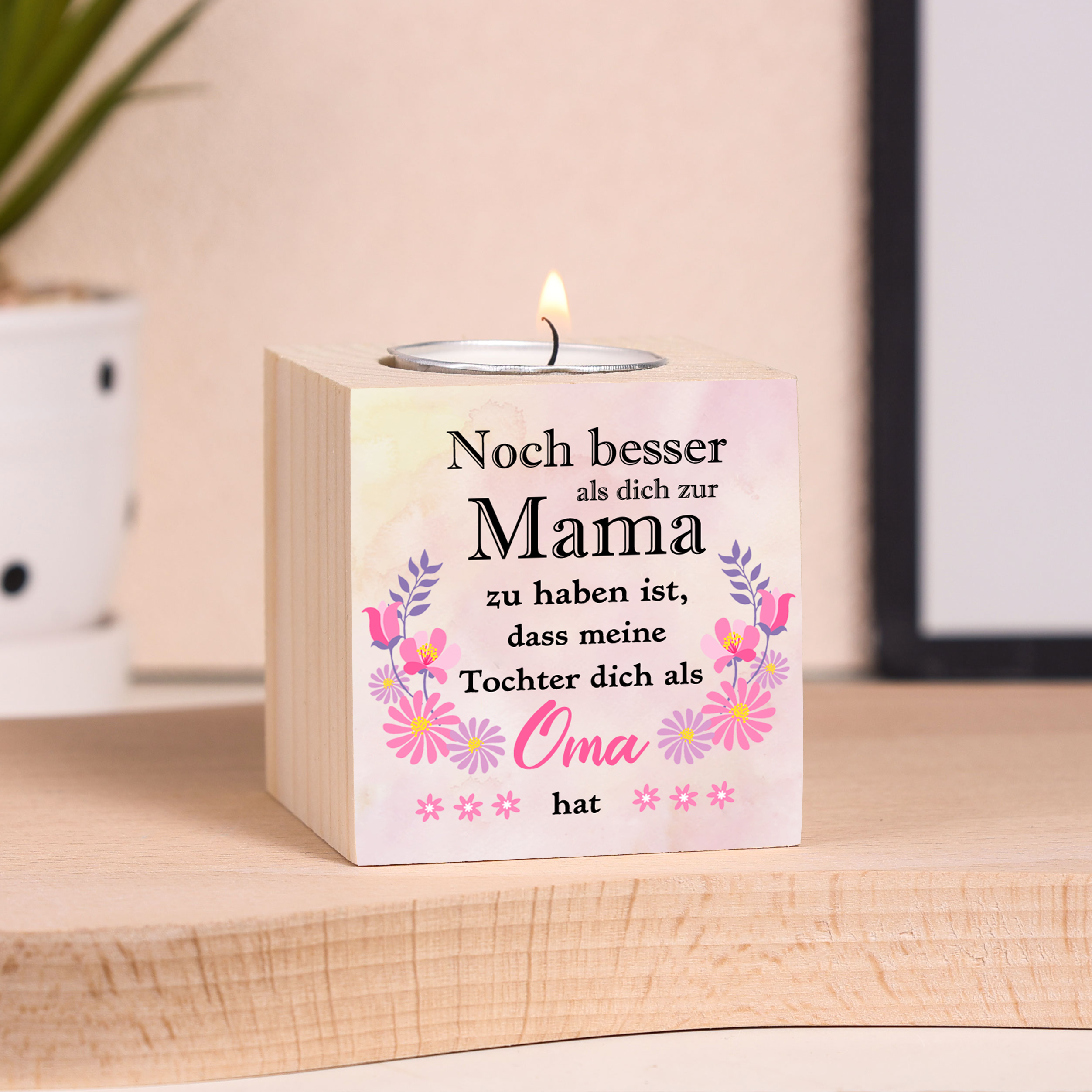 Holz Kompliment Kerzenhalter 1 bedruckte Seite-Noch besser als dich zur Mama zu haben ist, dass meine Tochter dich als Oma haben-Geschenk für Mutter