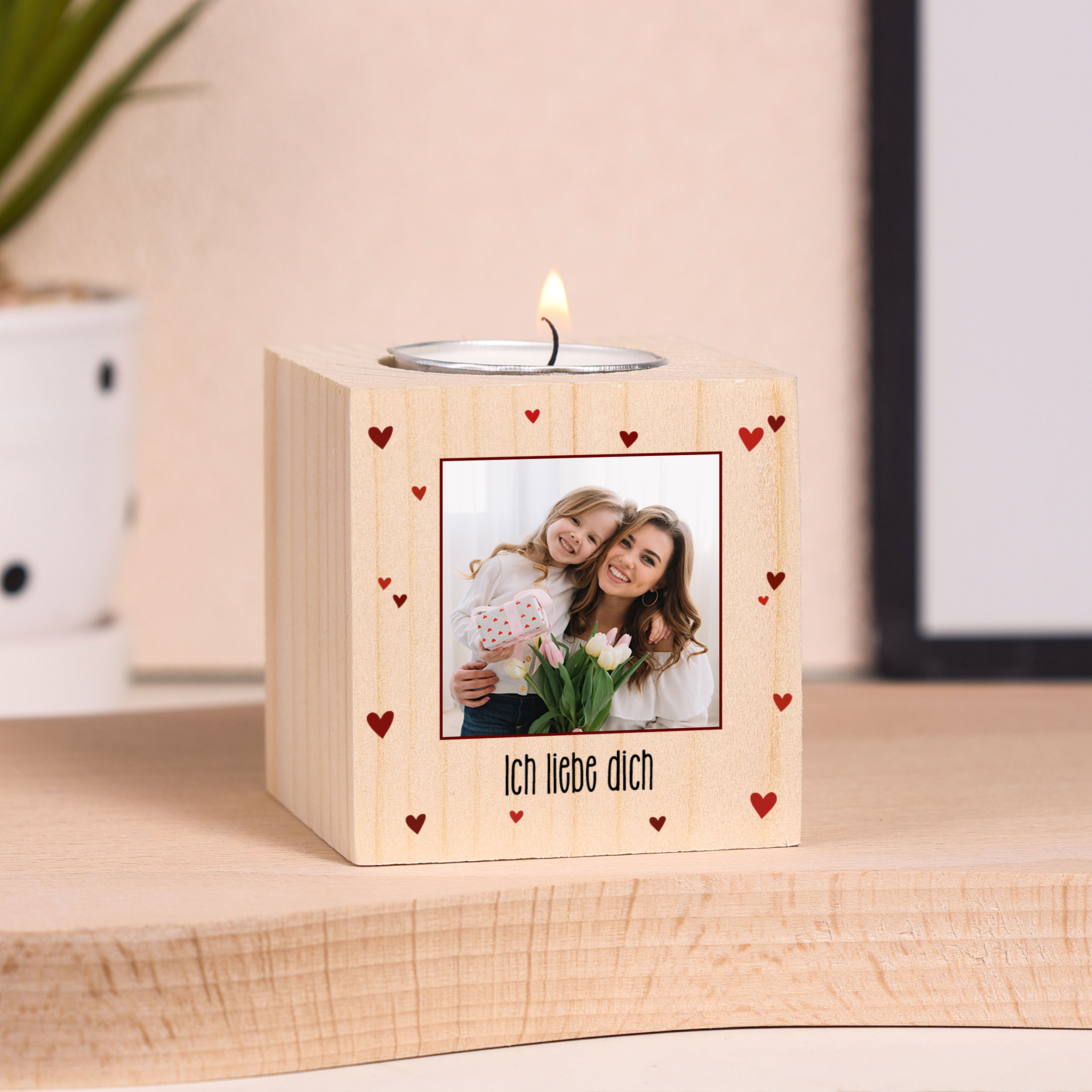 Holz Kompliment Kerzenhalter Personalisierter Foto & Text 1 bedruckte Seite für Familie
