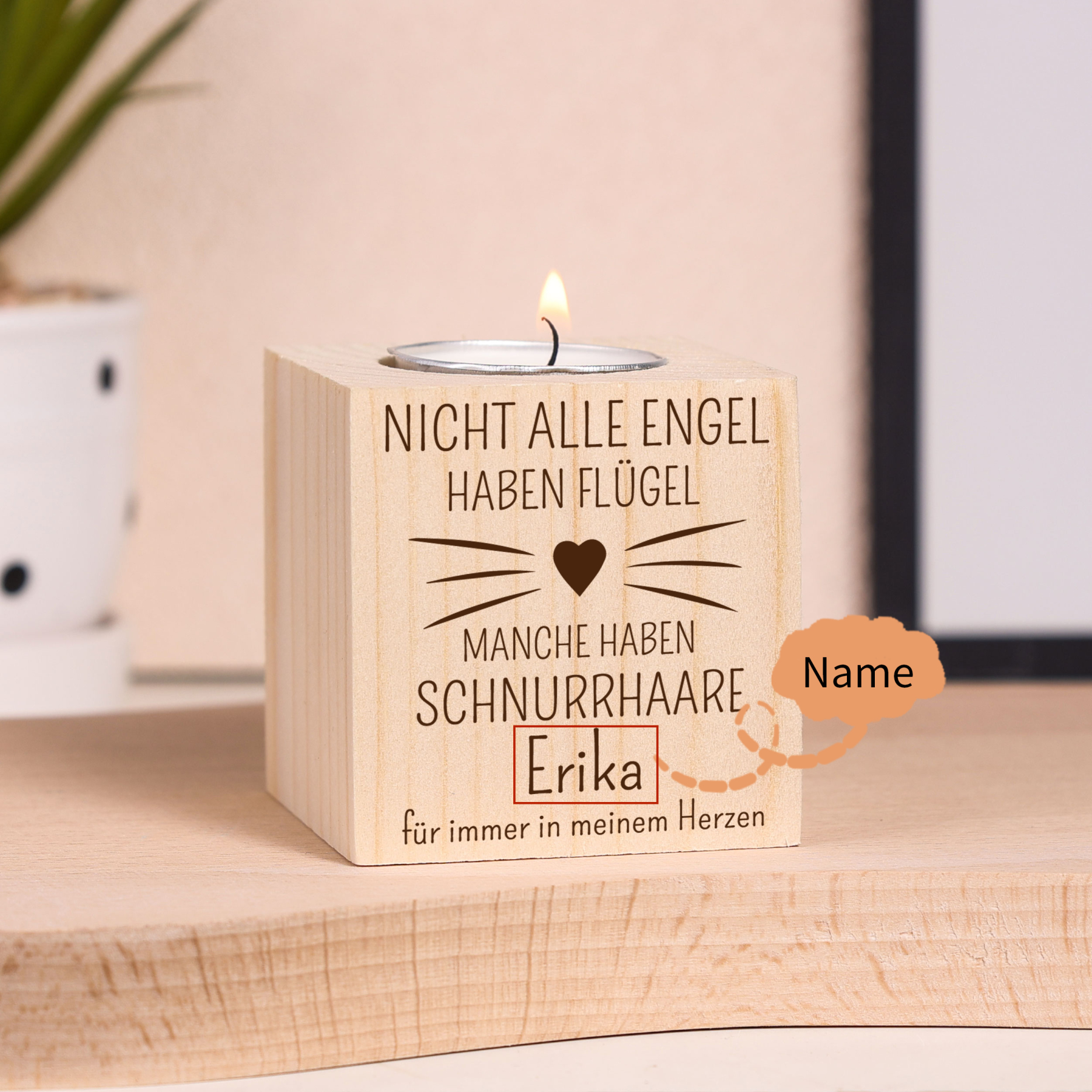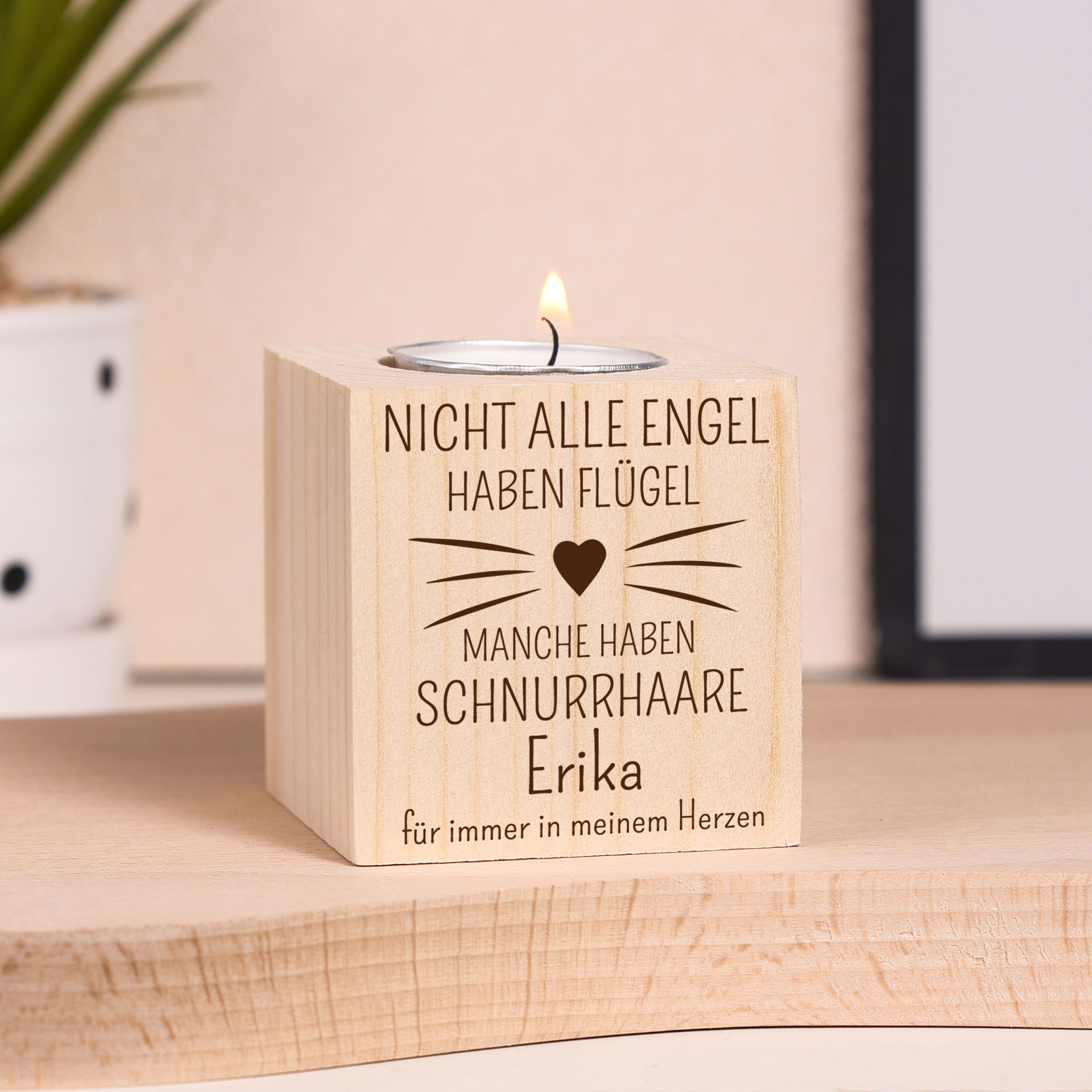 Holz Kompliment Personalisierter Name Engel haben Schnurrhaare Trauer Kerzenhalter für Katze