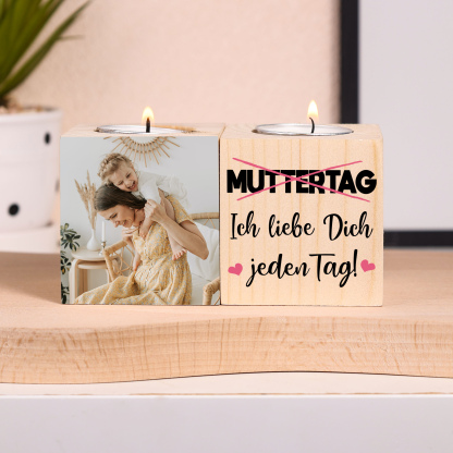 Holz Kompliment Personalisiertes Foto 2 bedruckte Seiten Kerzenhalter-Ich liebe dich jeden Tag-für Mutter