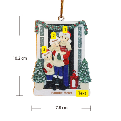 Holz Personalisierte 3 Namen & Text Weihnachtsornament Weihnachtsbaum Bauernhof Familie Anhänger mit 3 Familienmitgliedern