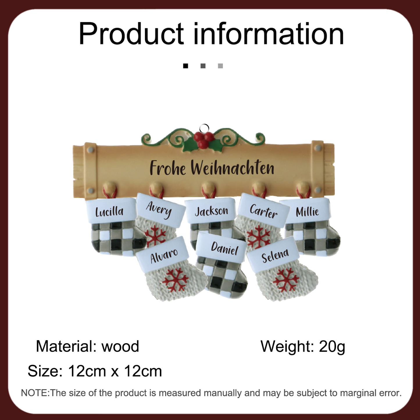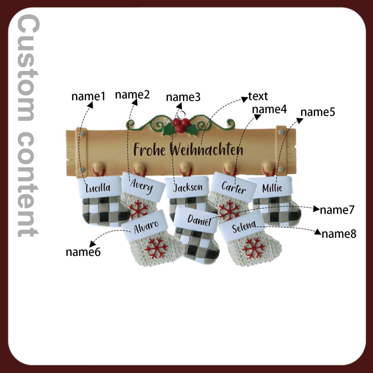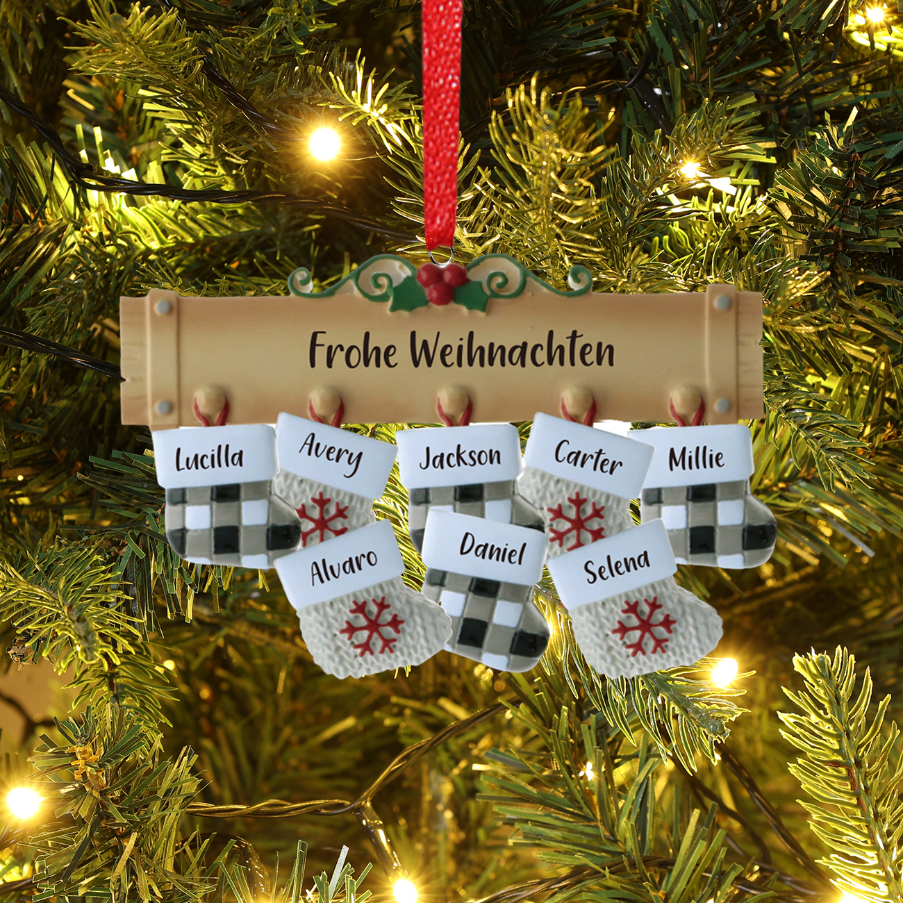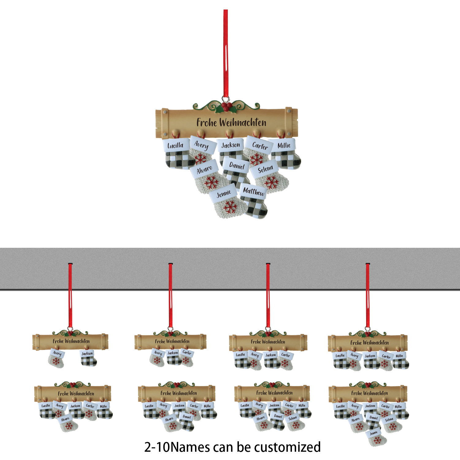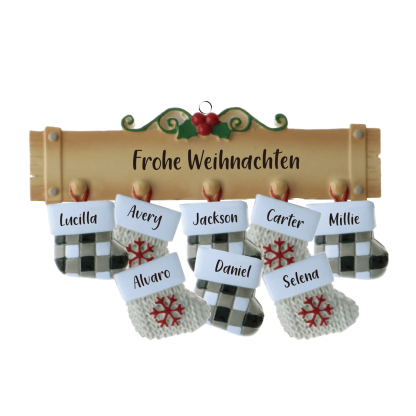 Holz Personalisierte 8 Namen & Text Weihnachtssocken Weihnachtsornament Weihnachtsbaum Anhänger mit 8 Familienmitgliedern