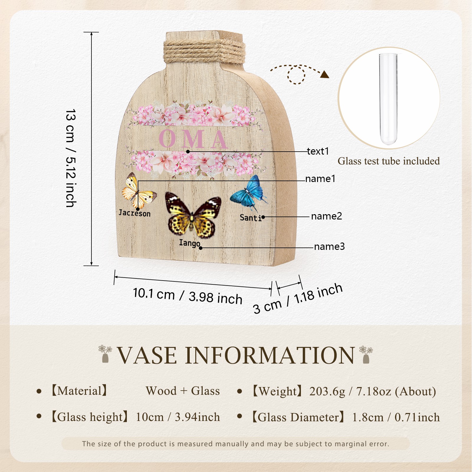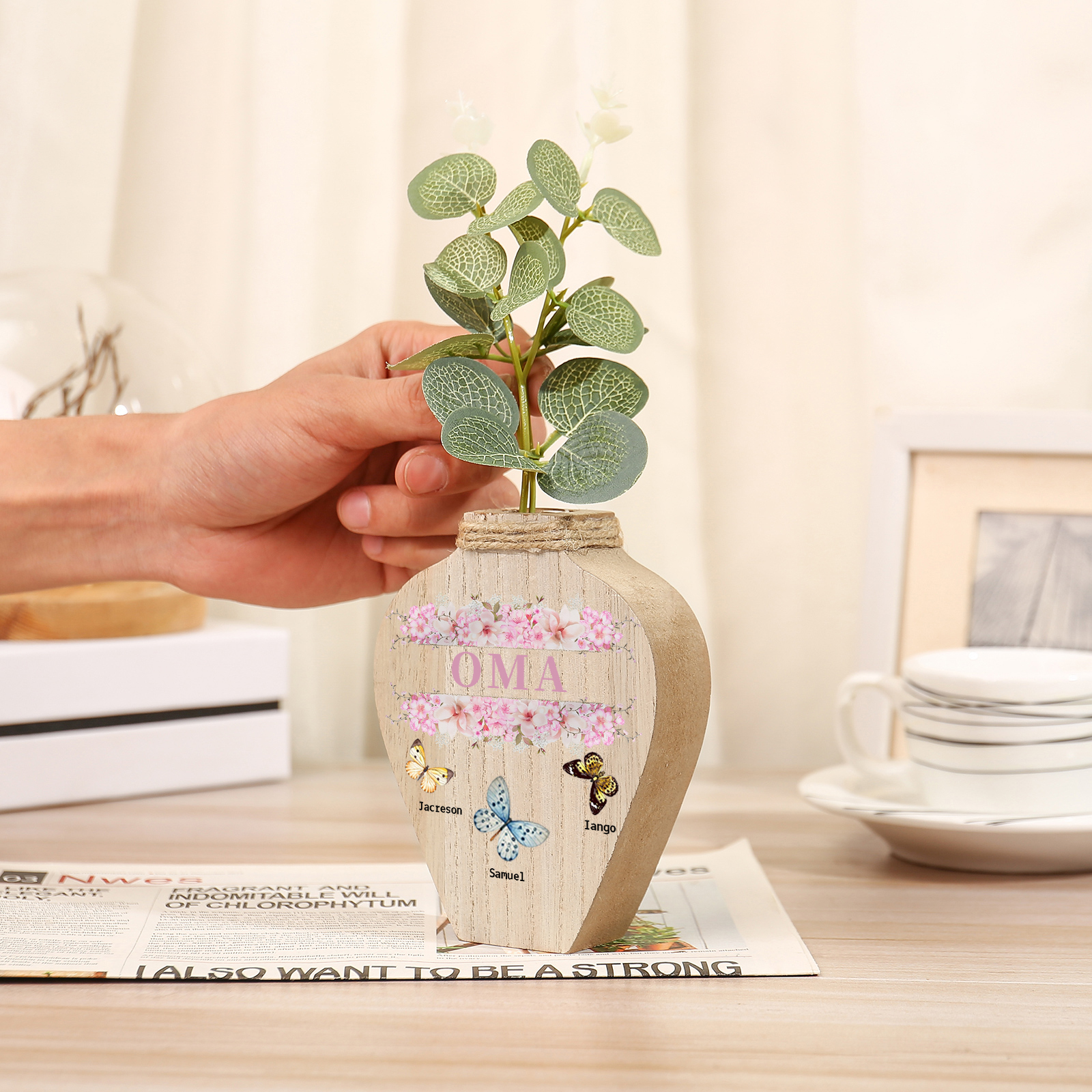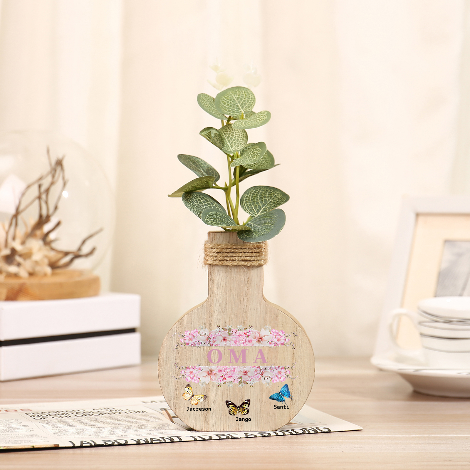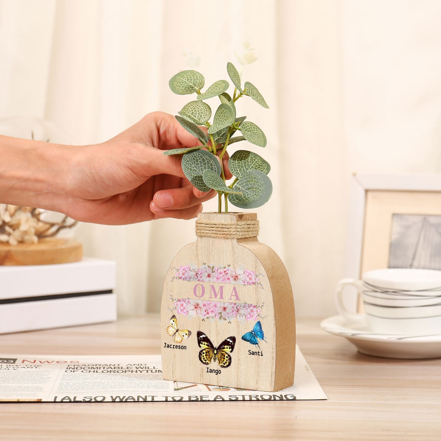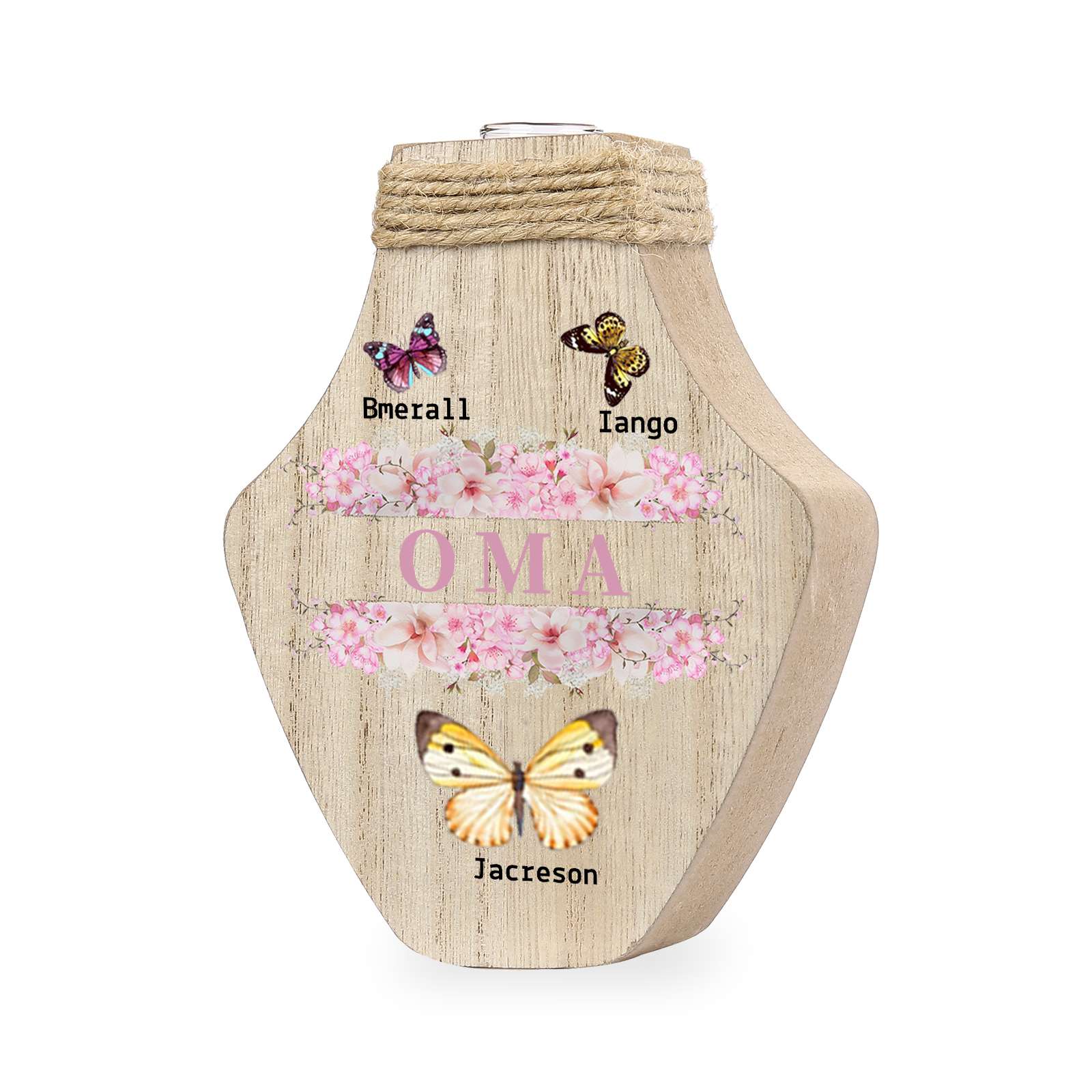 Holz Personalisierter 3 Namen & Text Schmetterlinge Vase