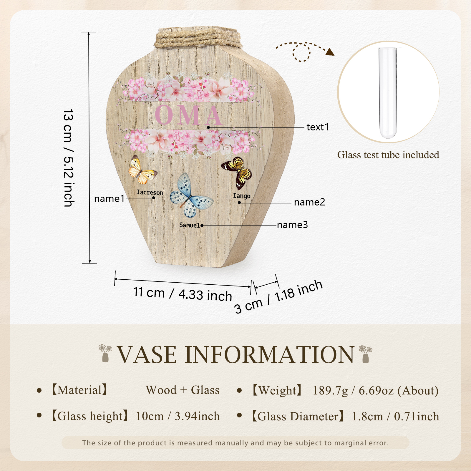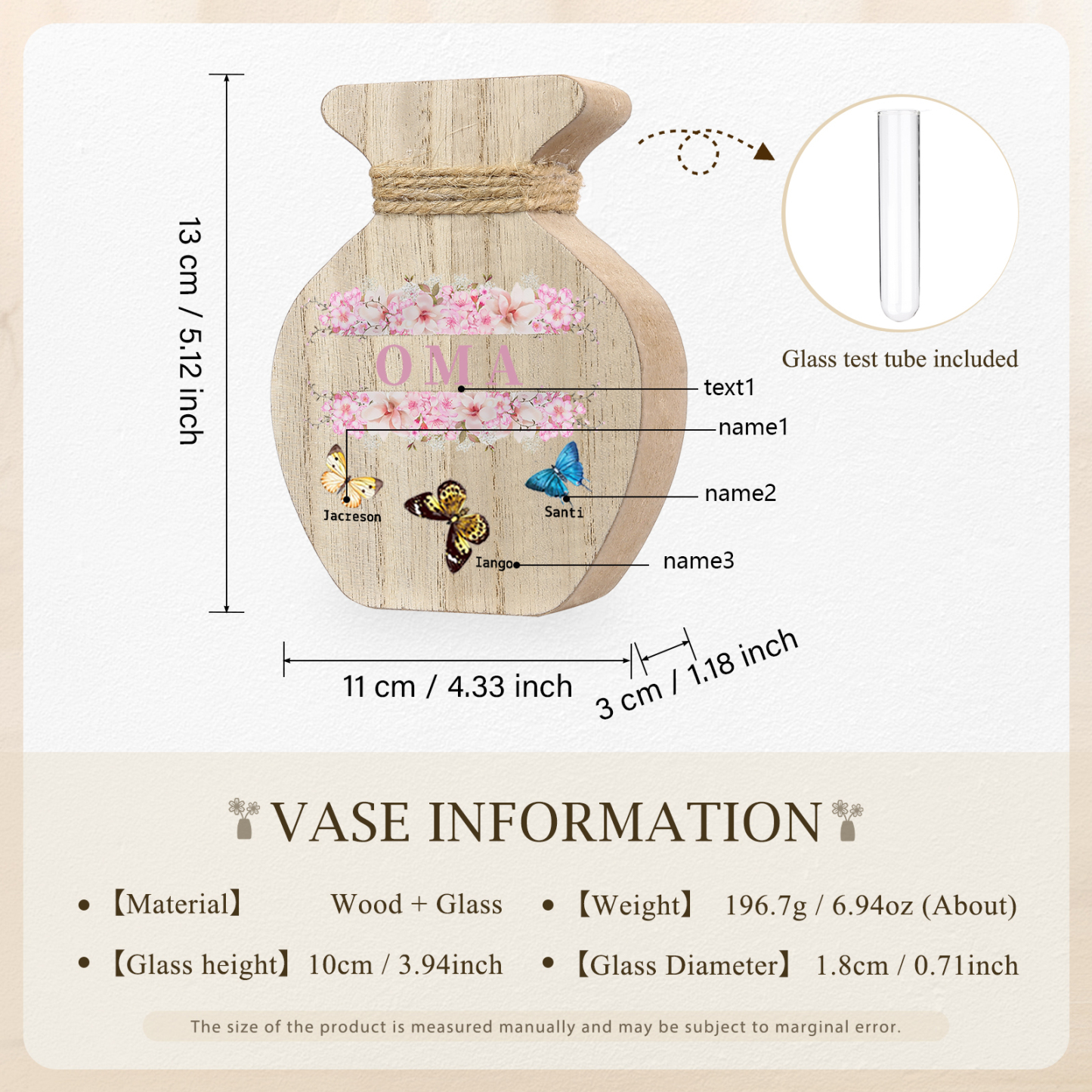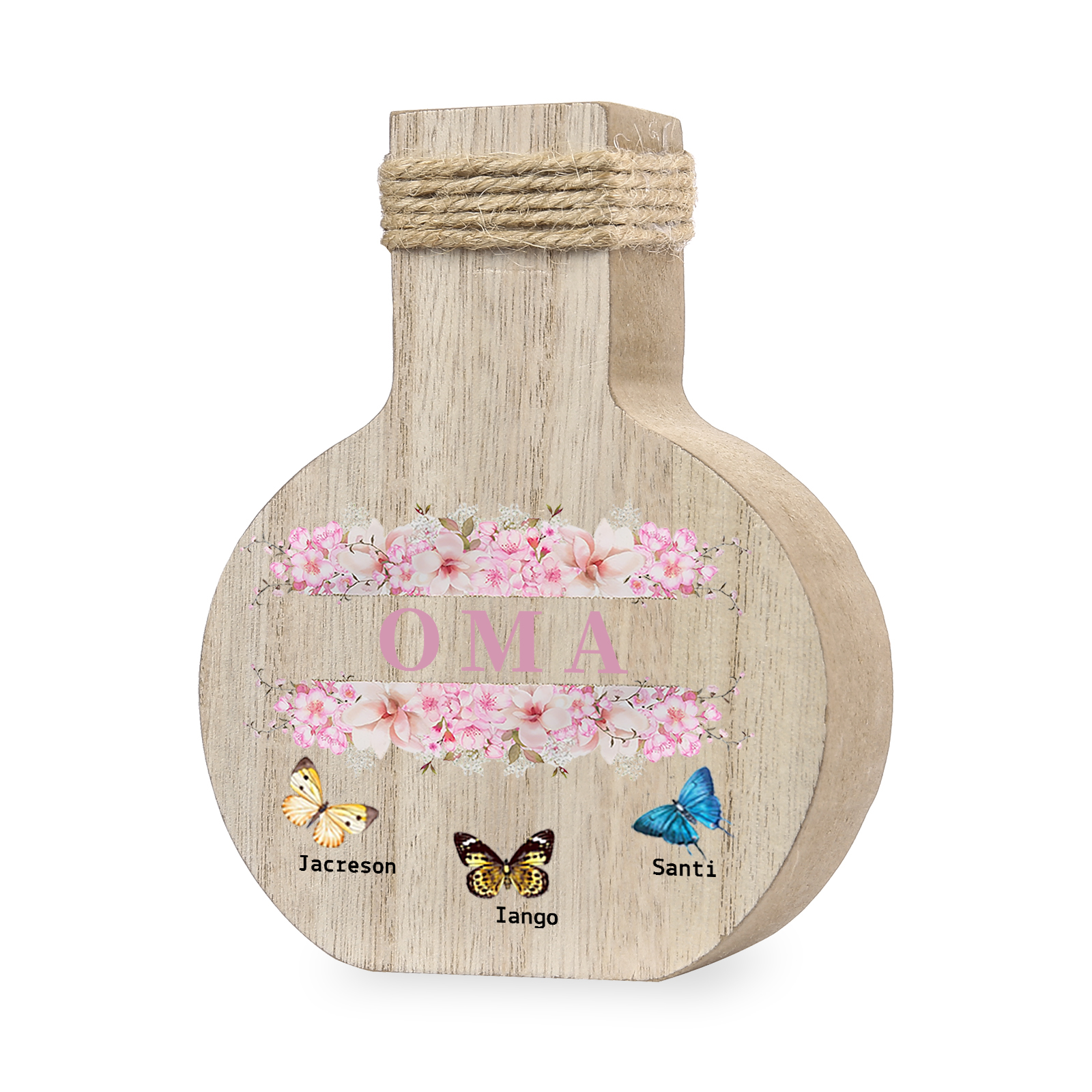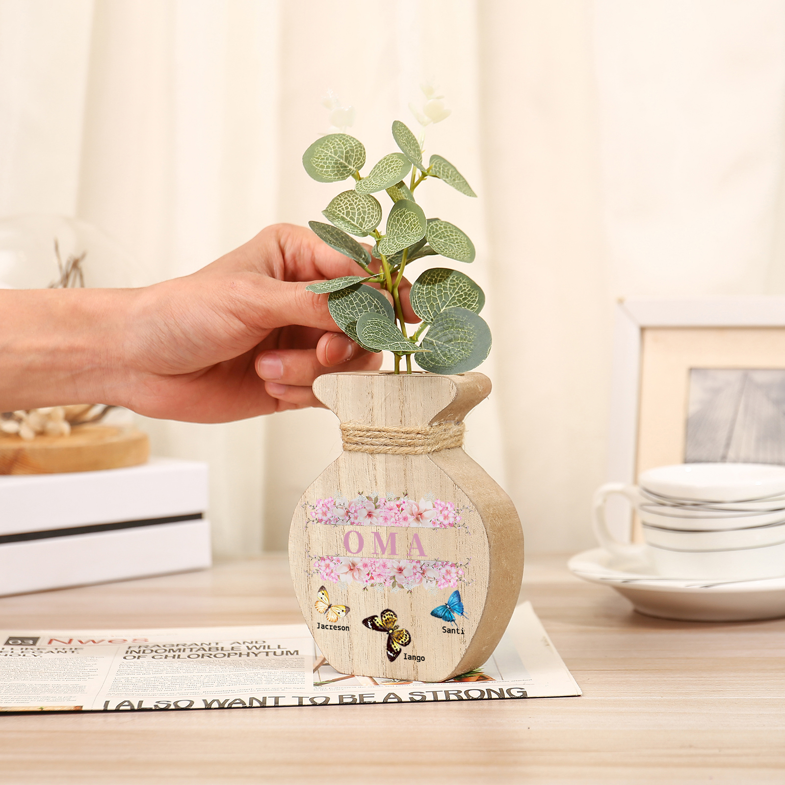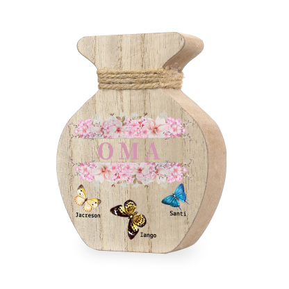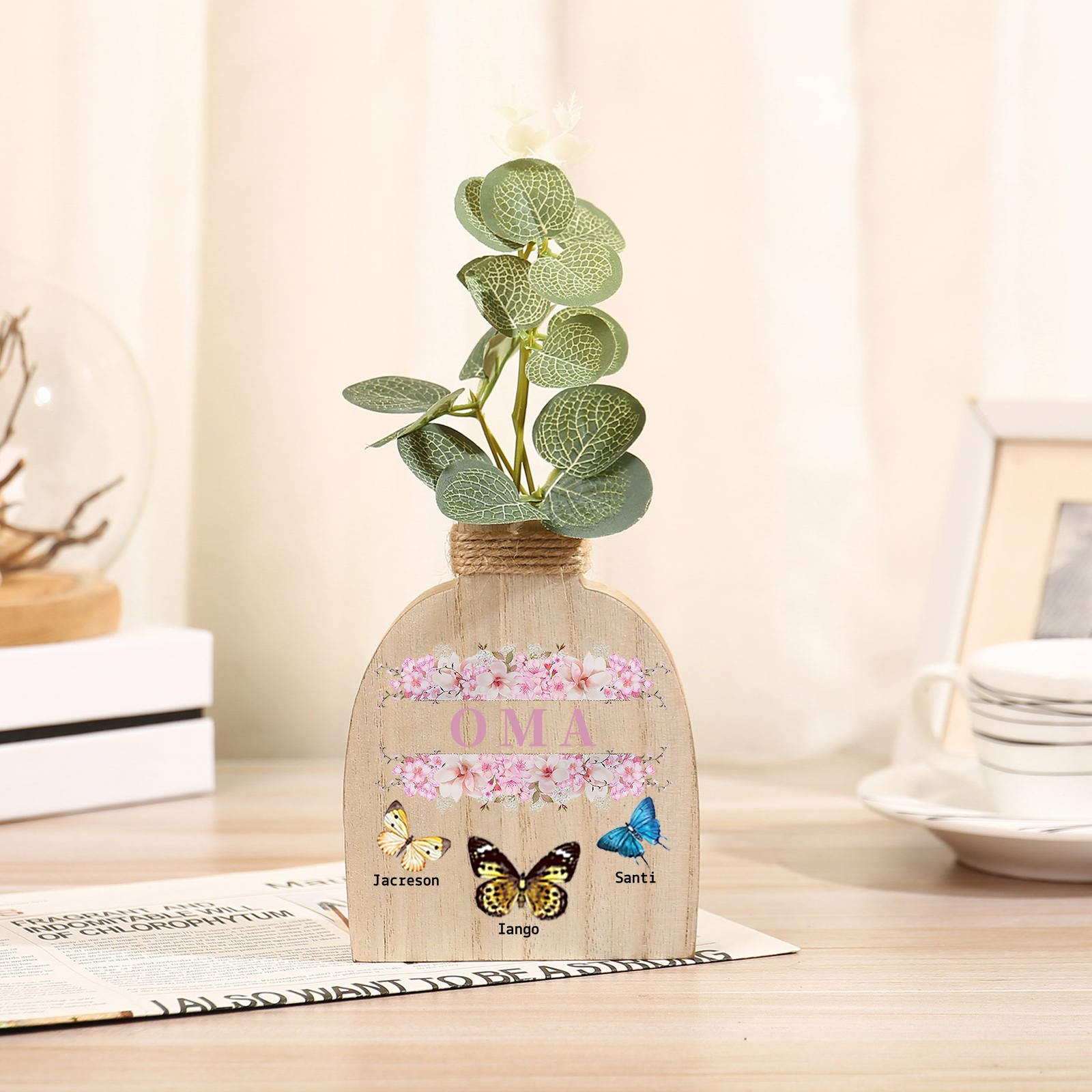 Holz Personalisierter 3 Namen & Text Schmetterlinge Vase