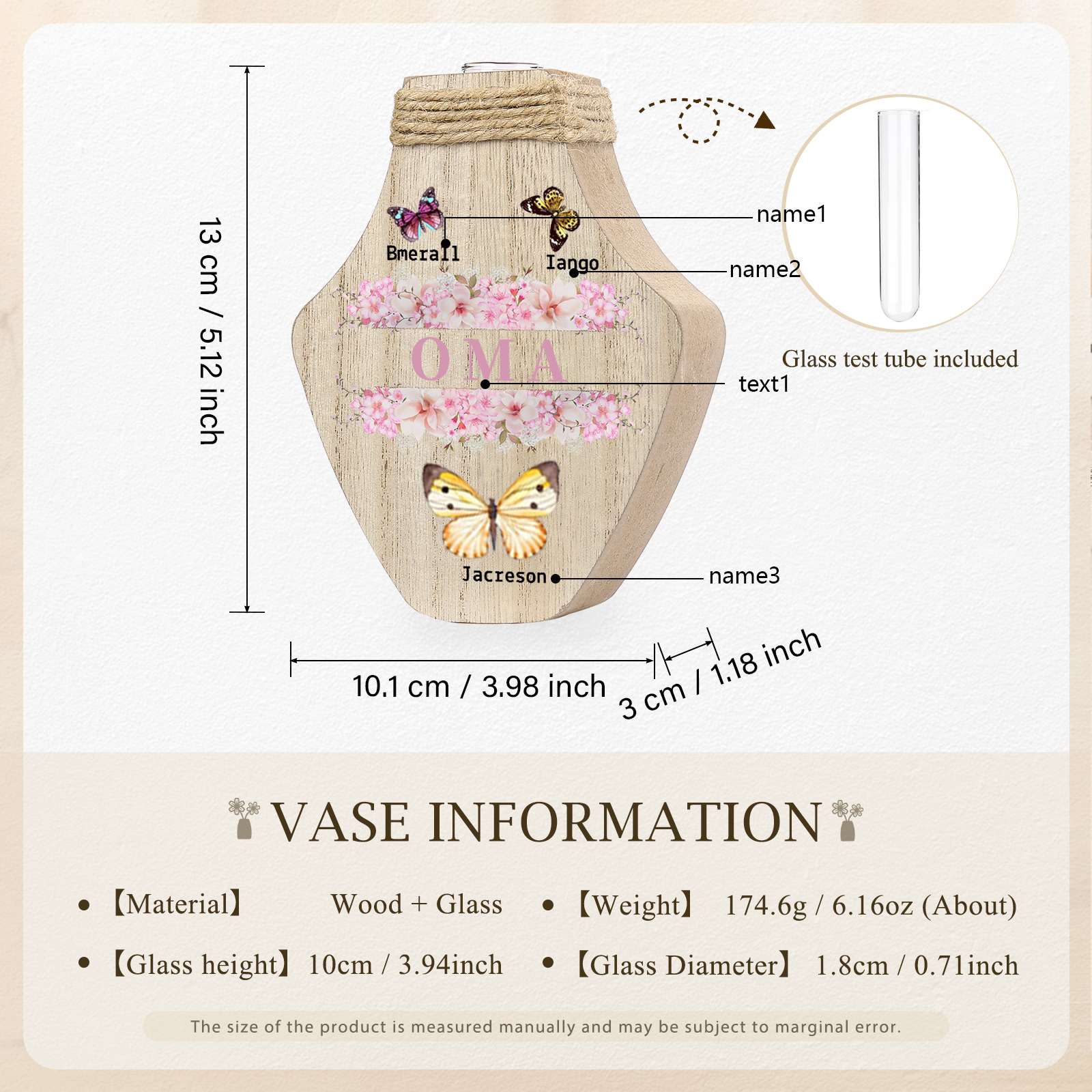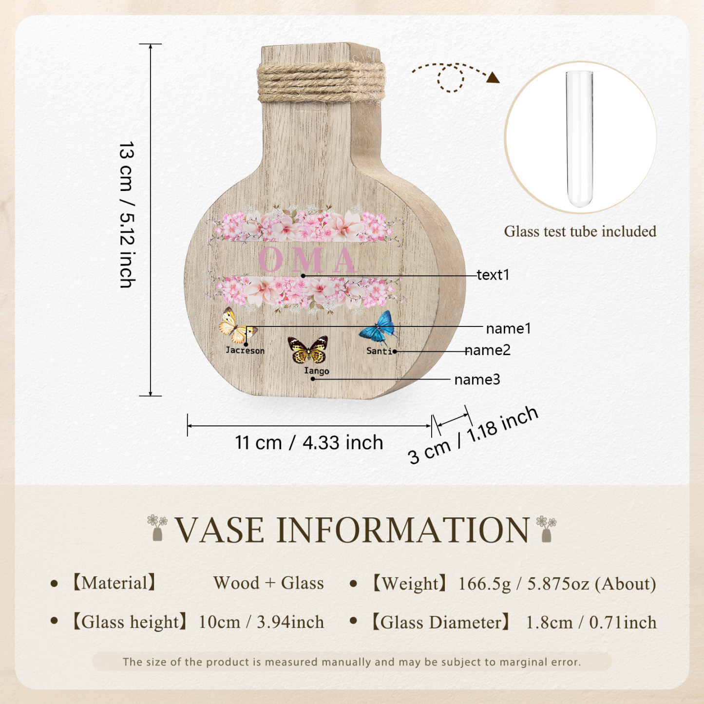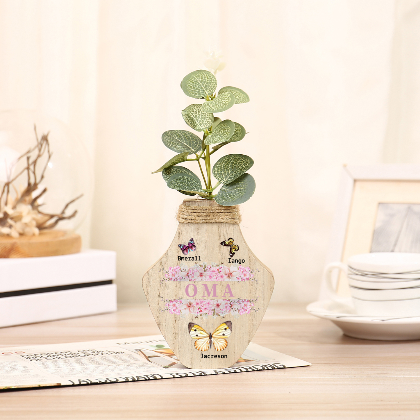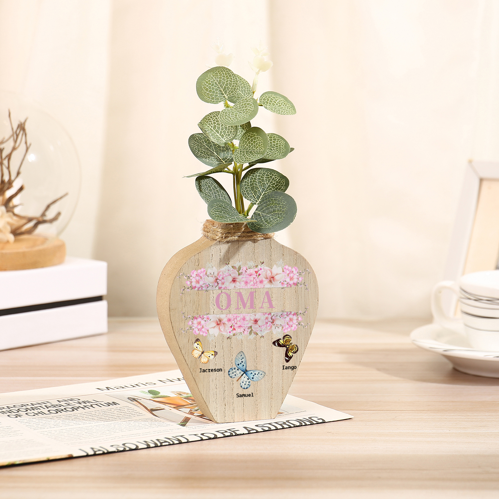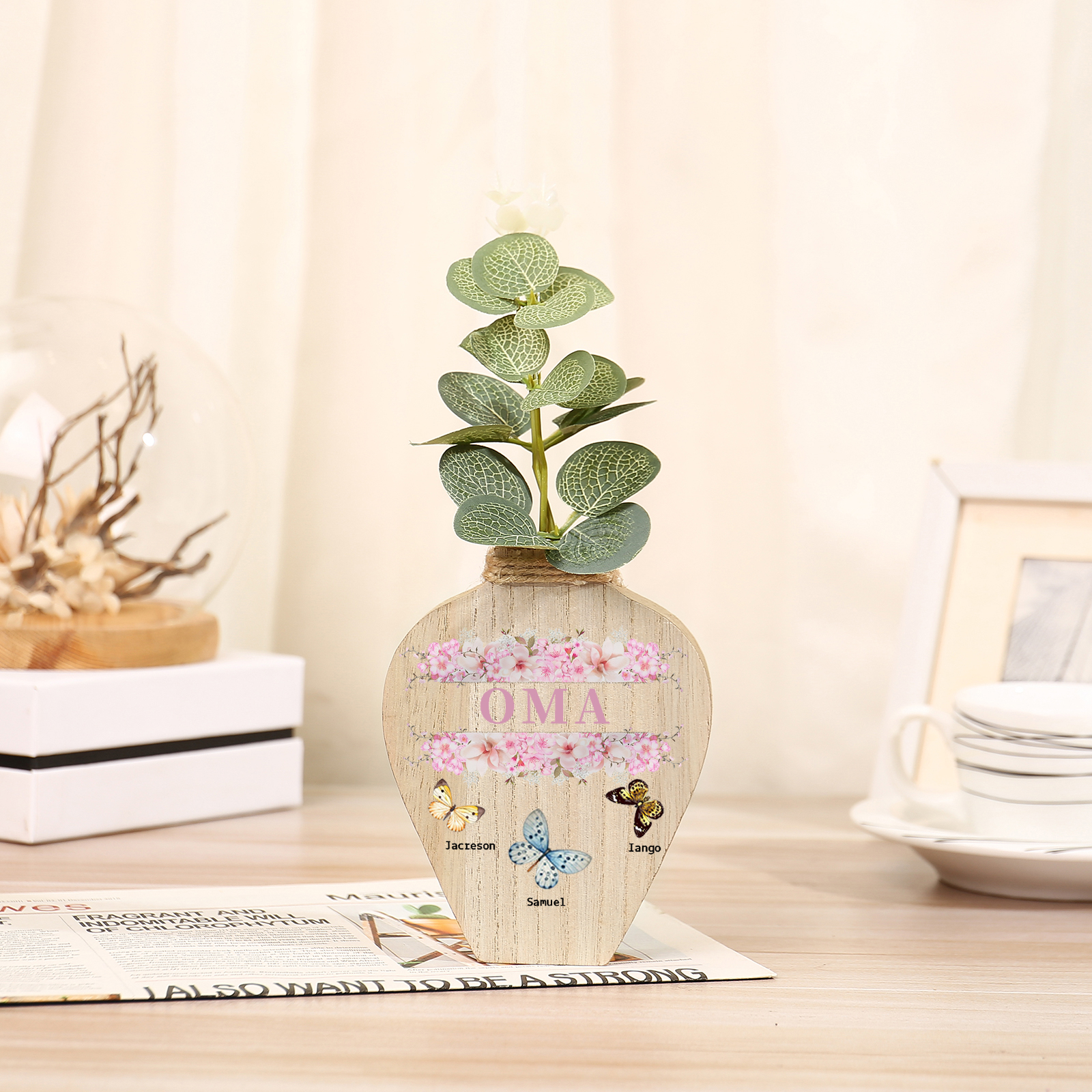 Holz Personalisierter 3 Namen & Text Schmetterlinge Vase