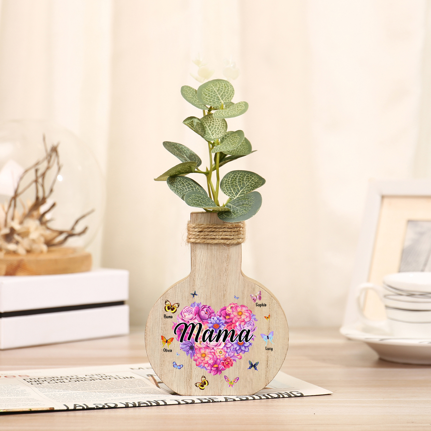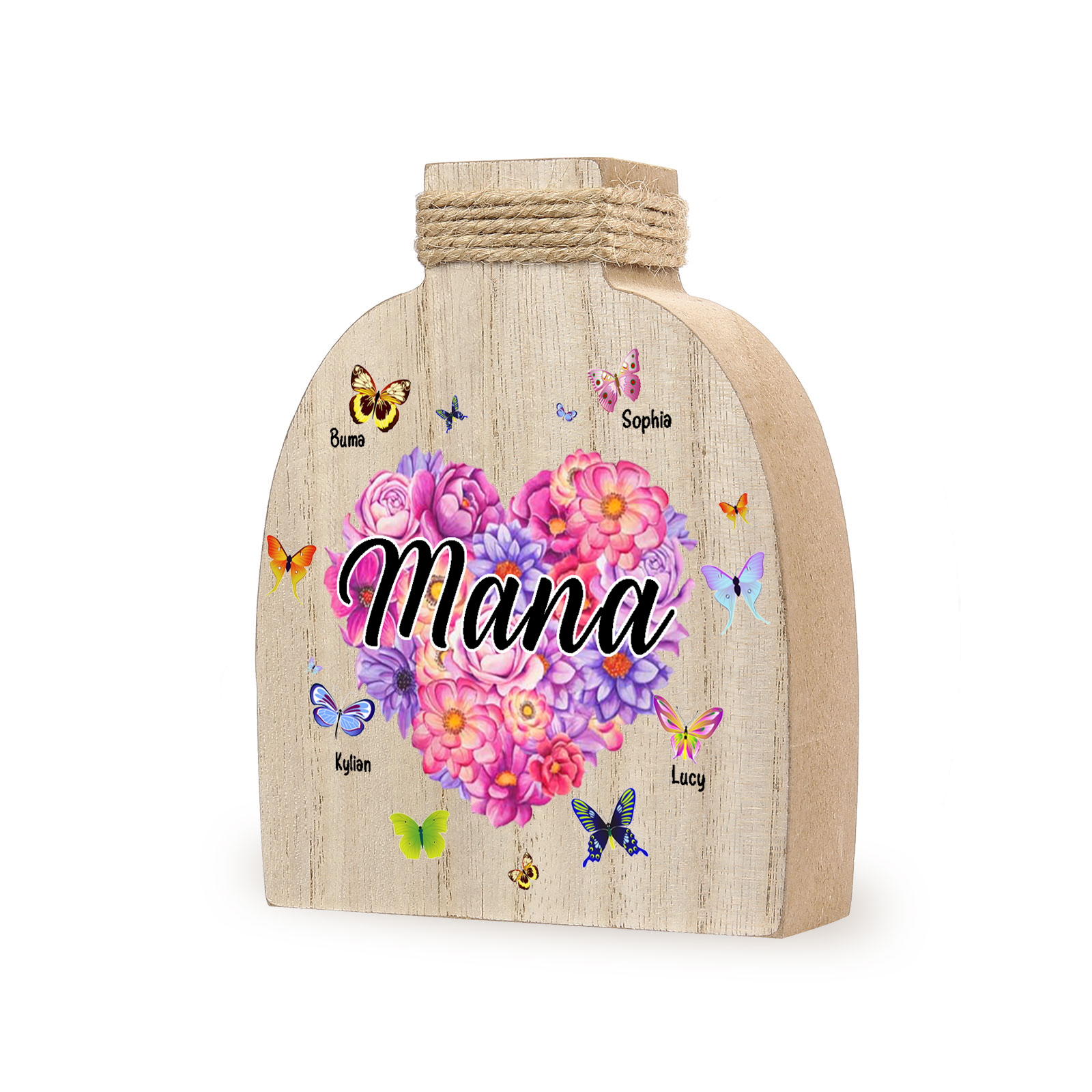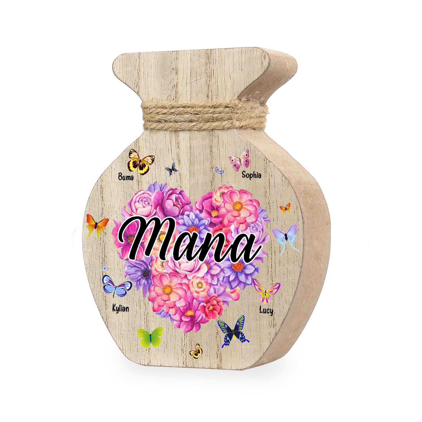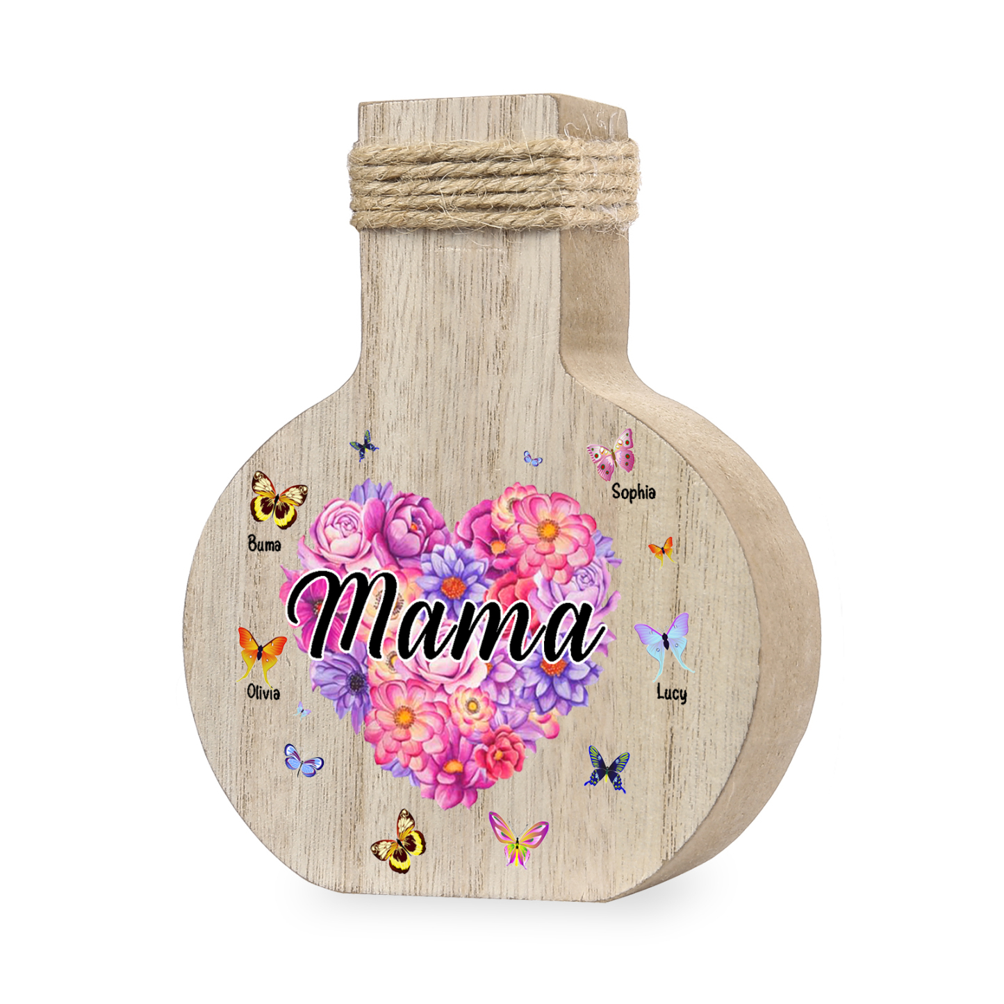 Holz Personalisierter 4 Namen & Text Blumen Herz Vase