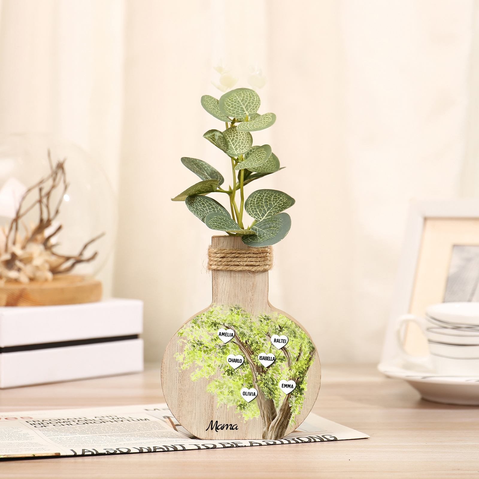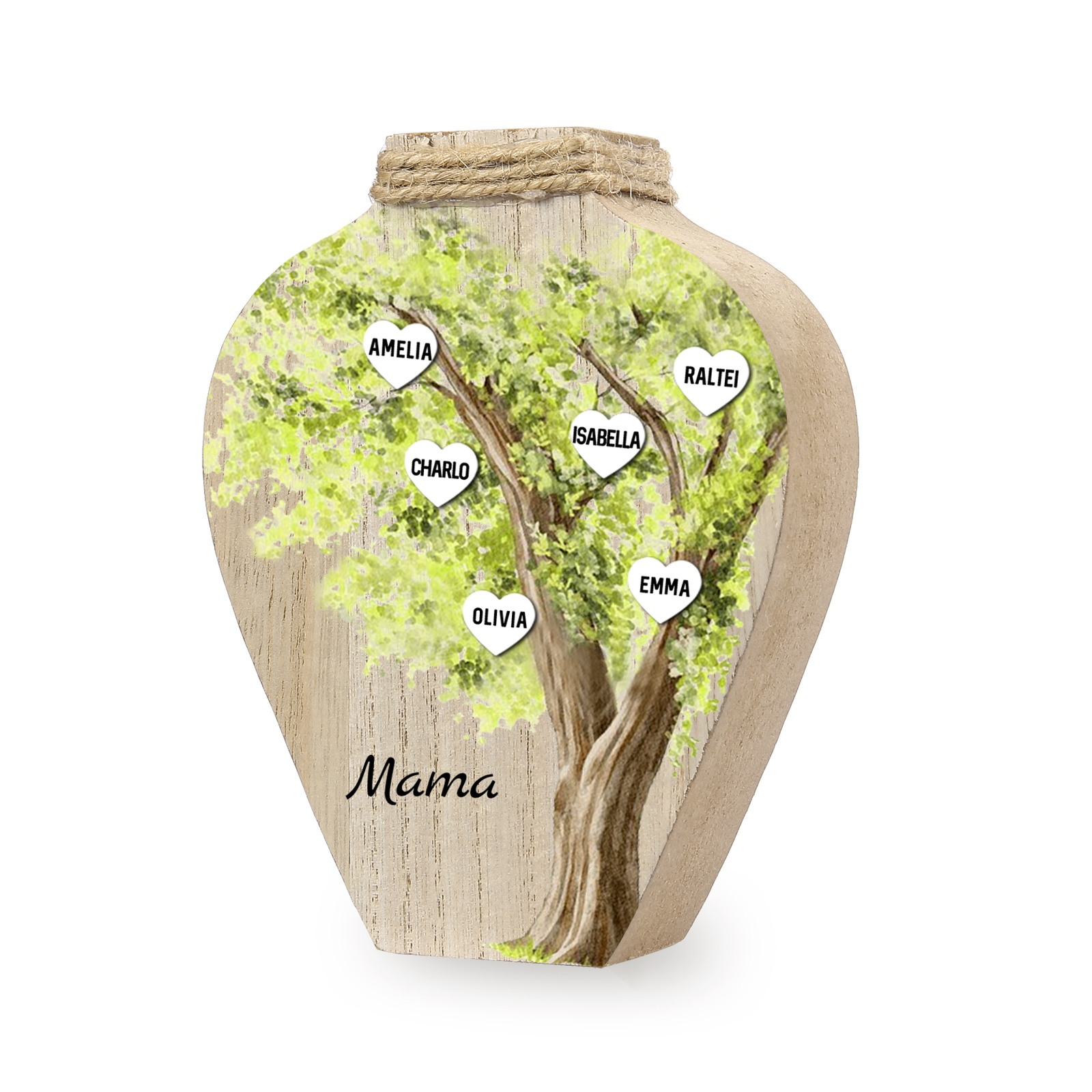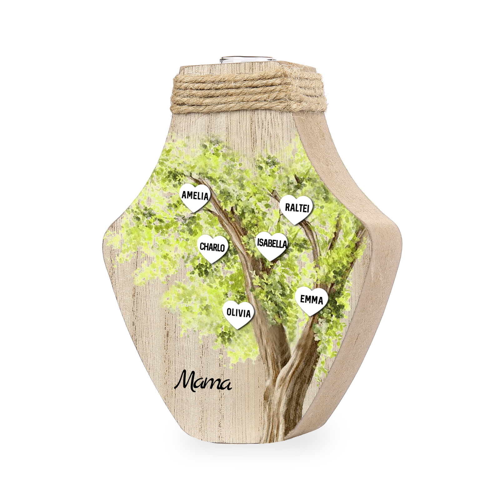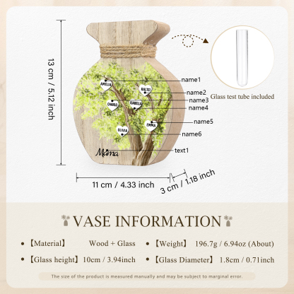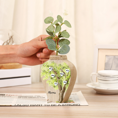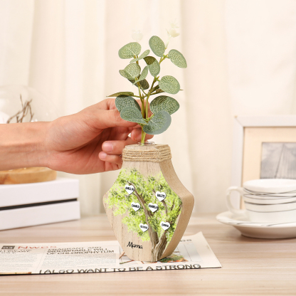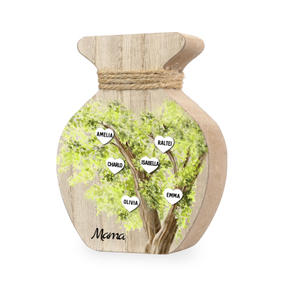 Holz Personalisierter 6 Namen & Text Grün Familienbaum Famile Vase