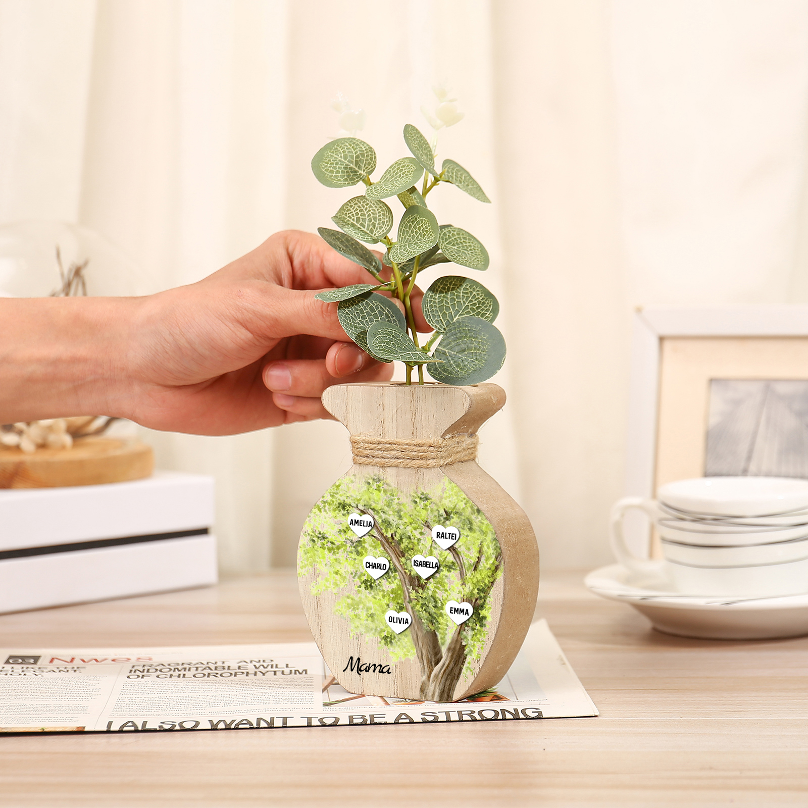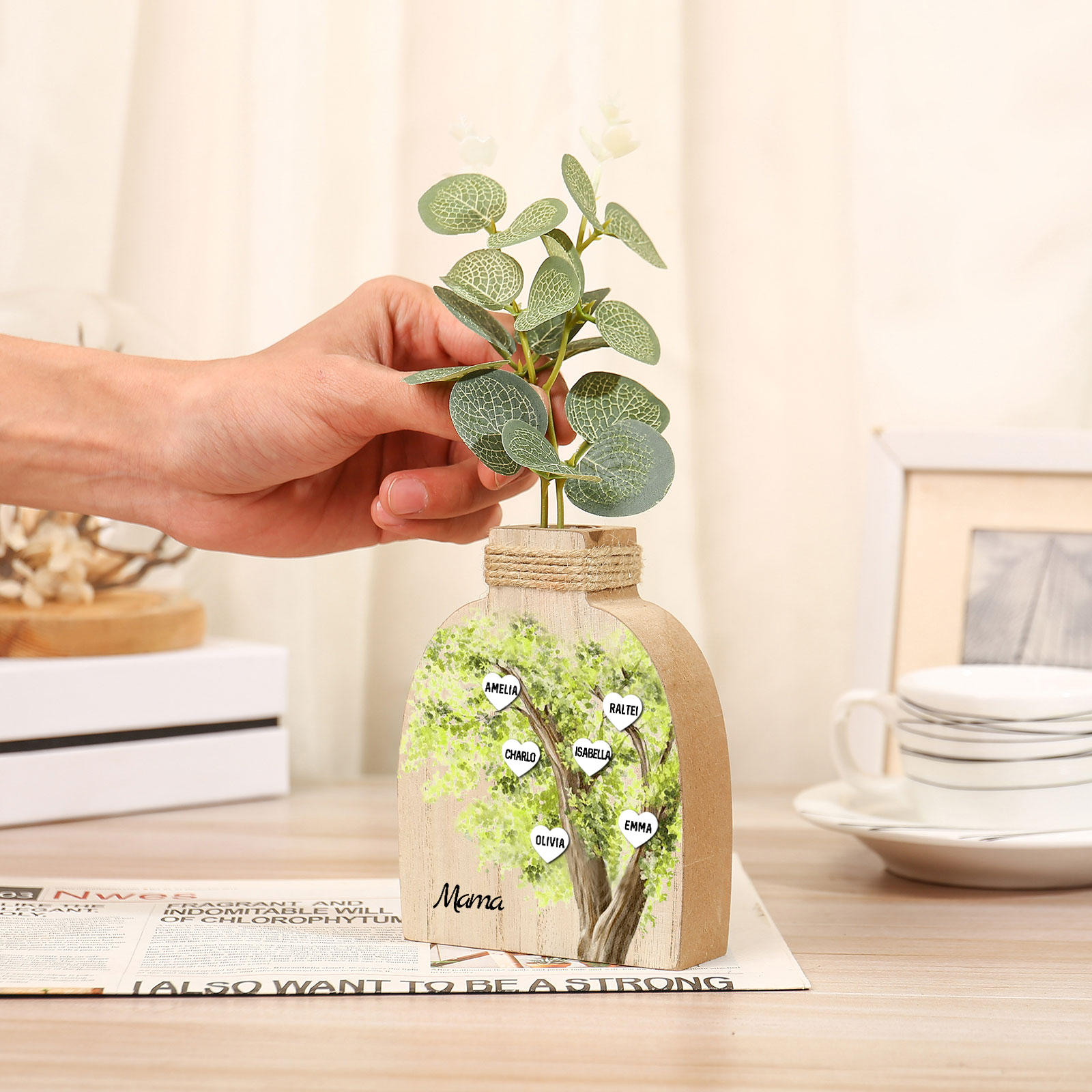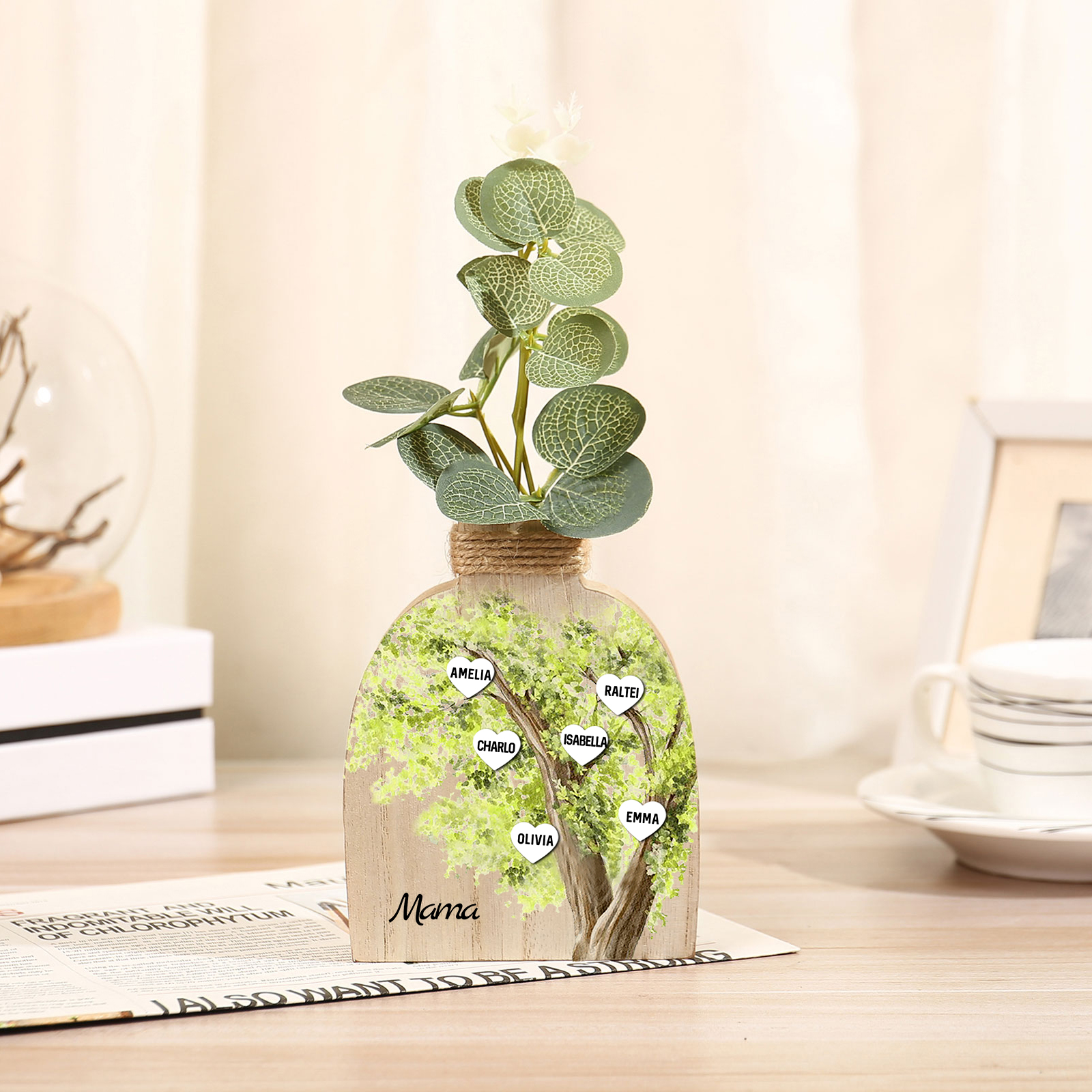 Holz Personalisierter 6 Namen & Text Grün Familienbaum Famile Vase
