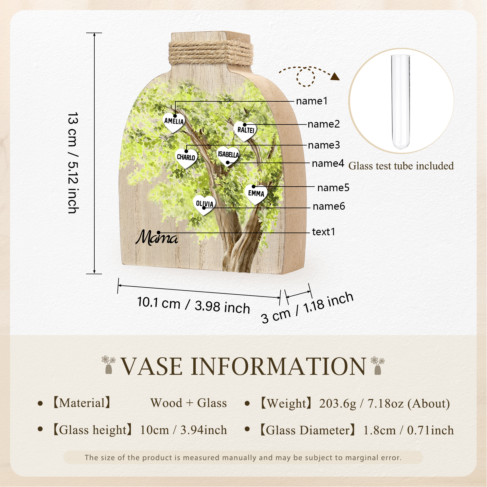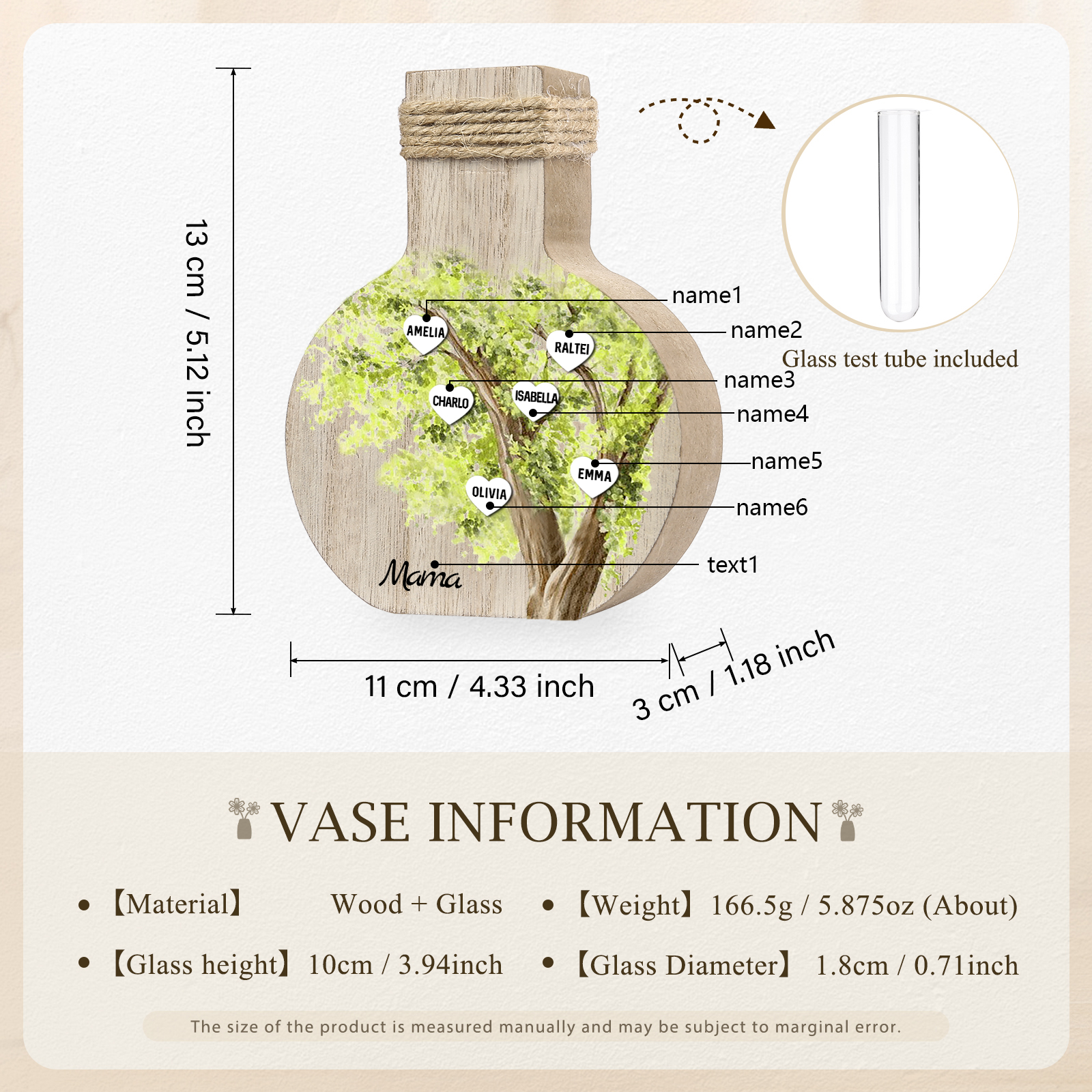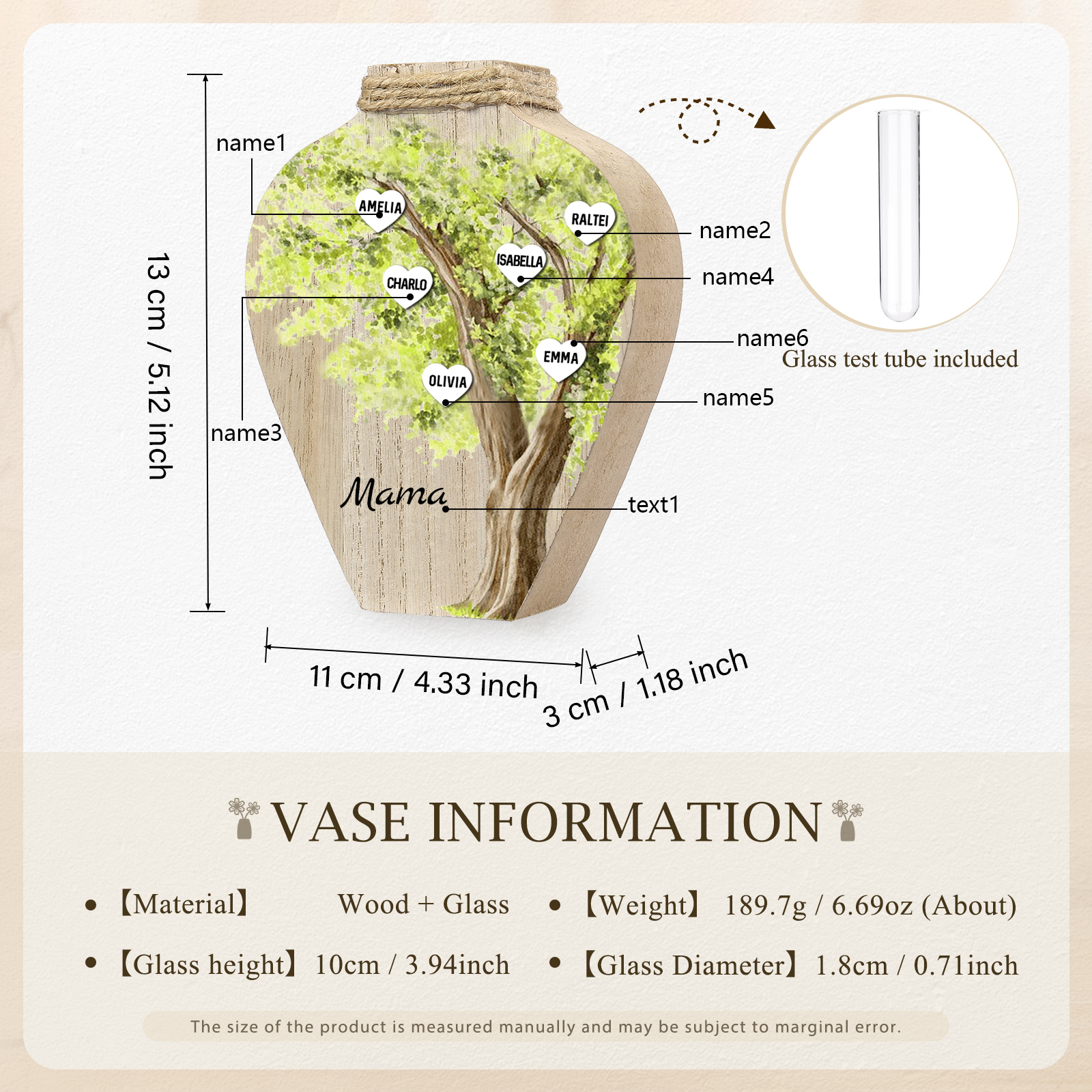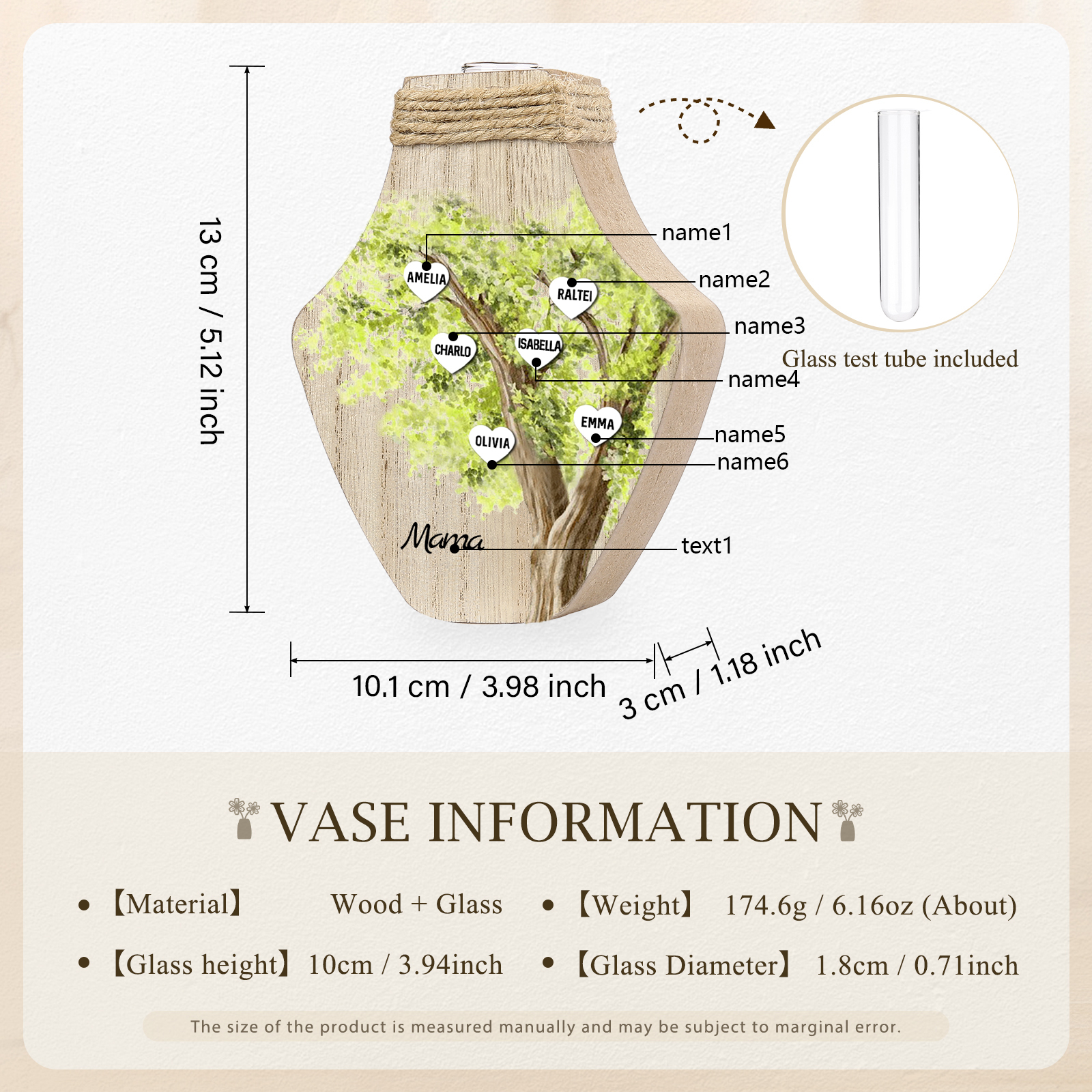 Holz Personalisierter 6 Namen & Text Grün Familienbaum Famile Vase