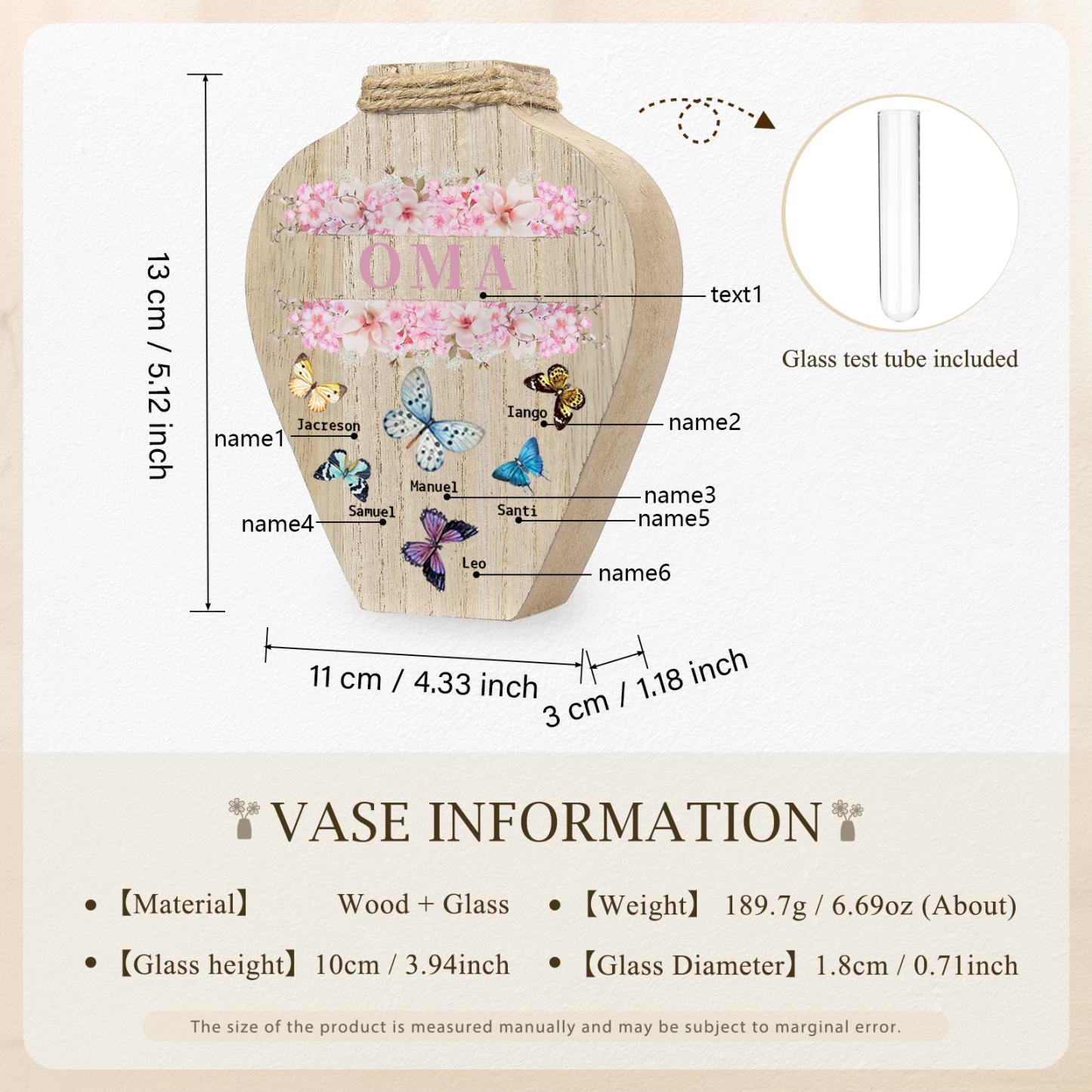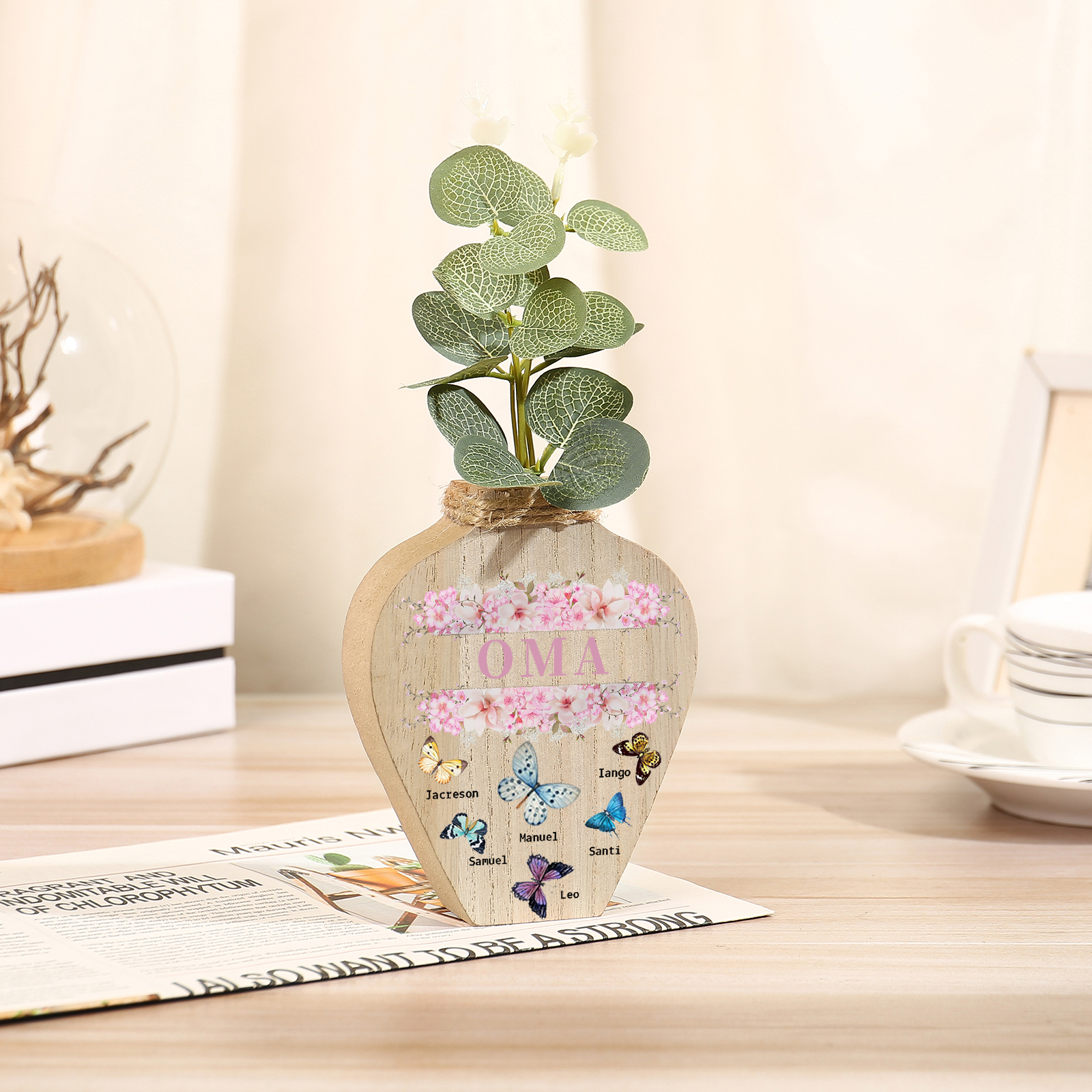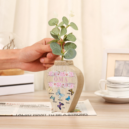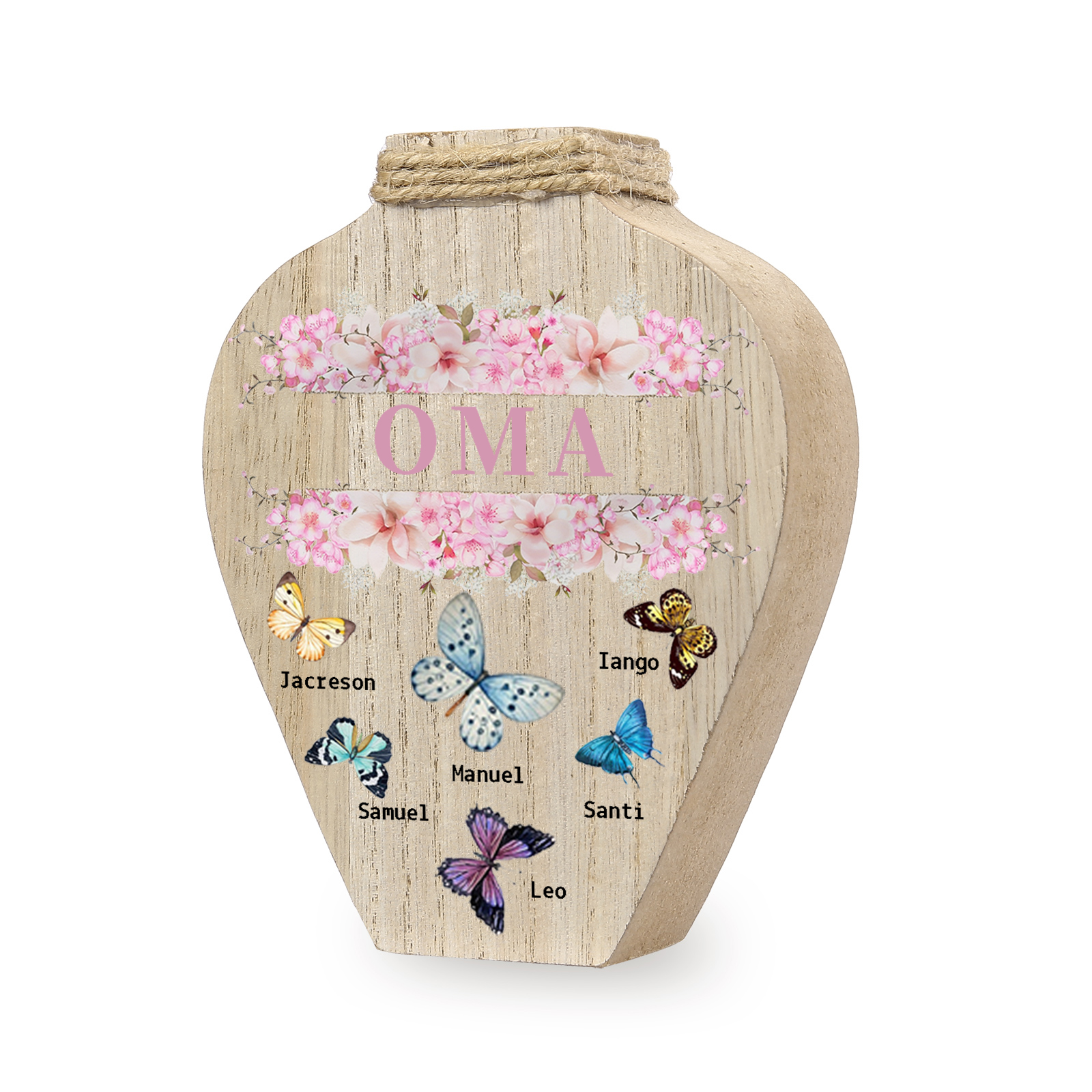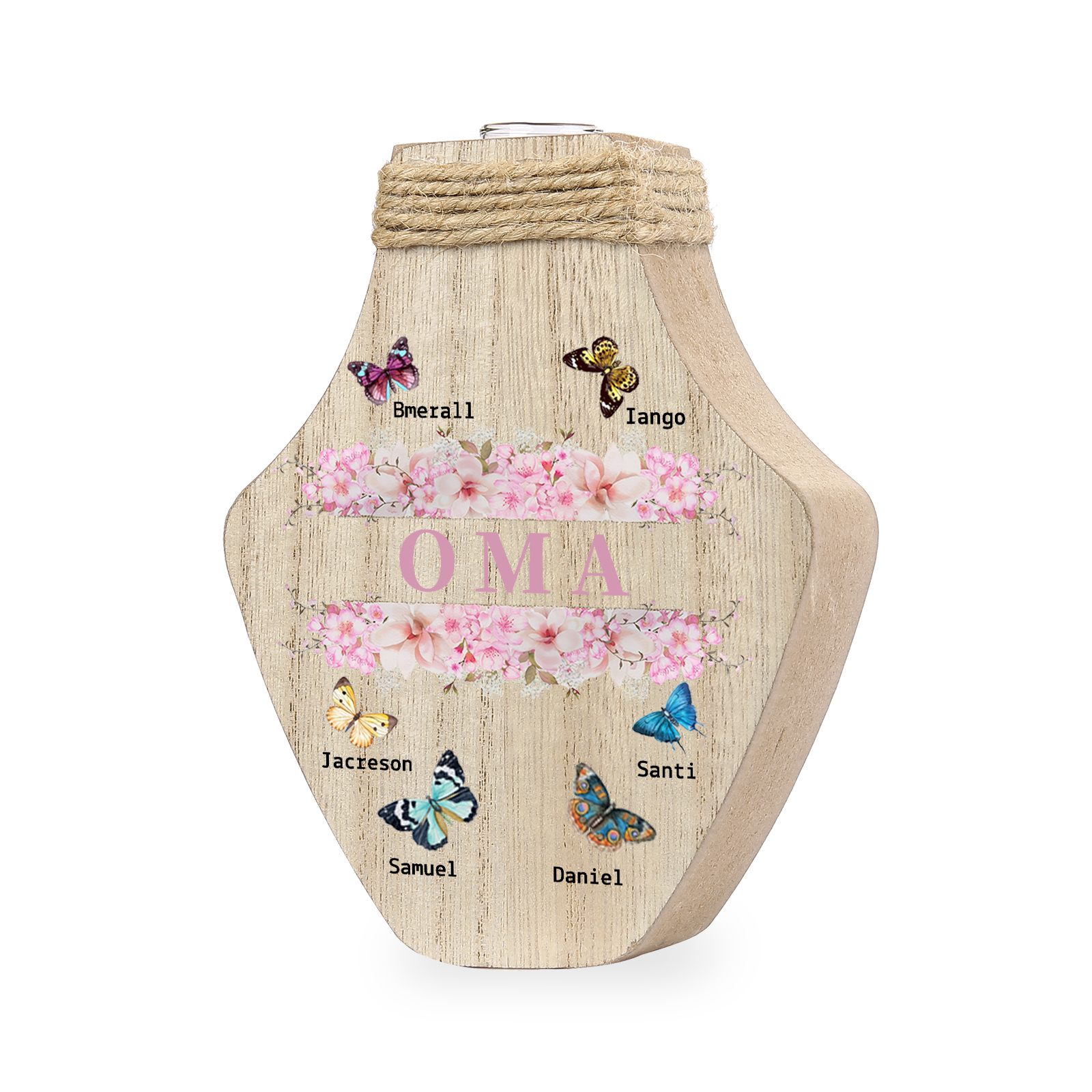 Holz Personalisierter 6 Namen & Text Schmetterlinge Vase