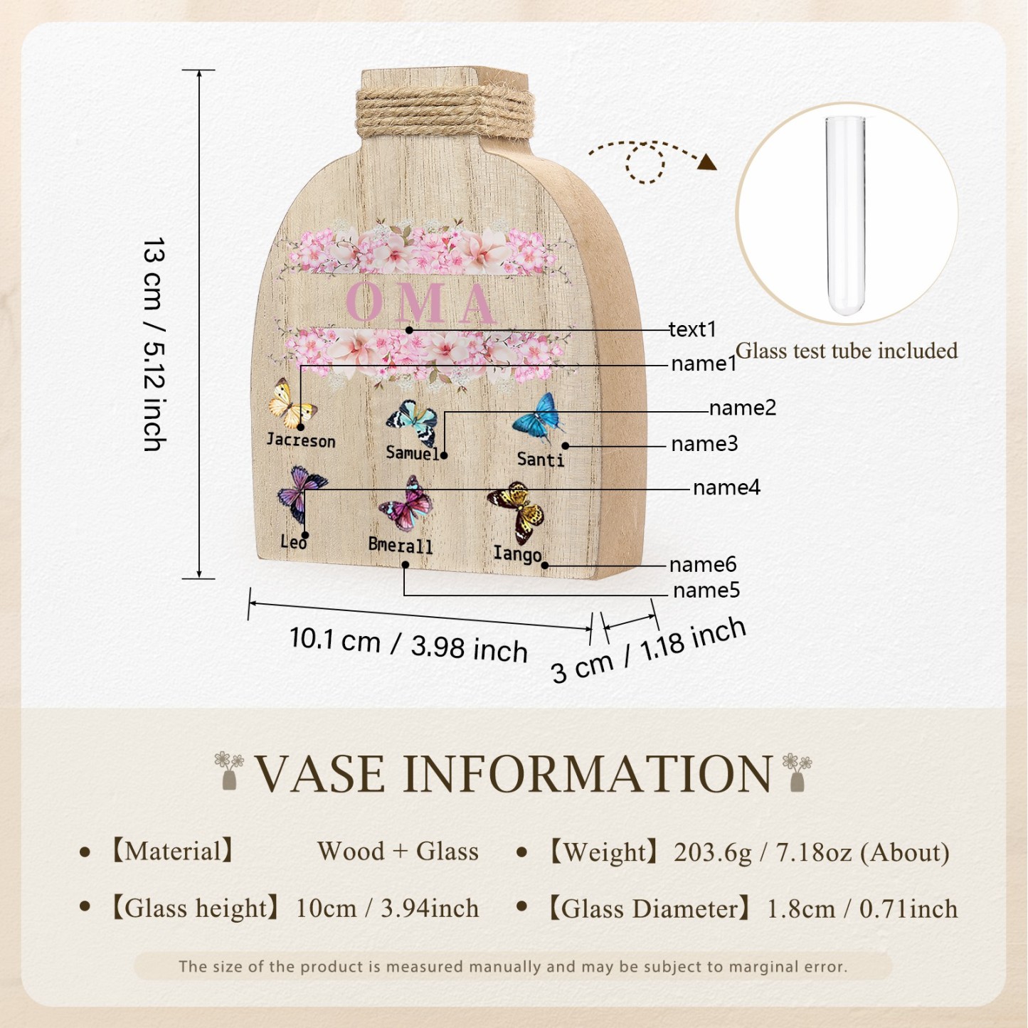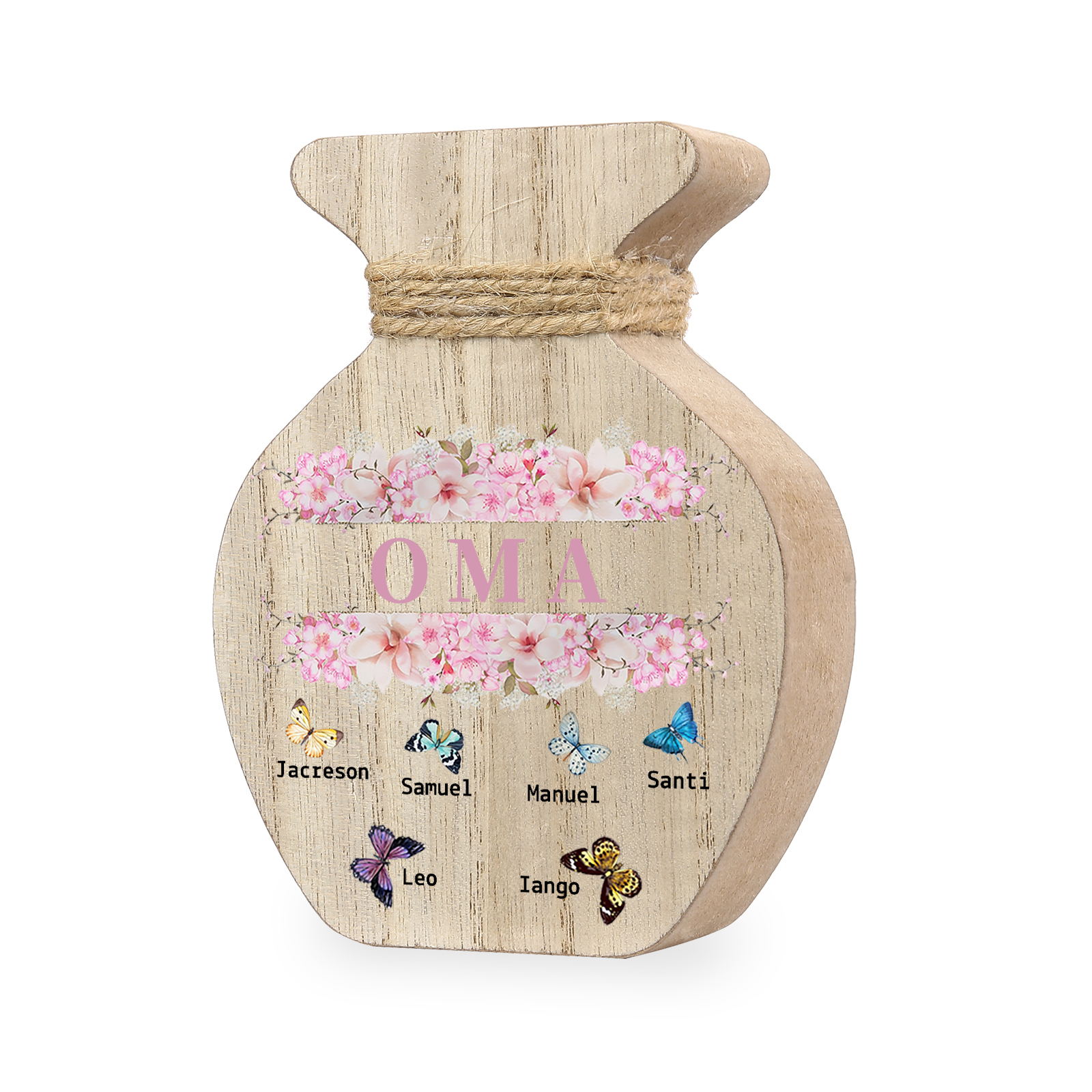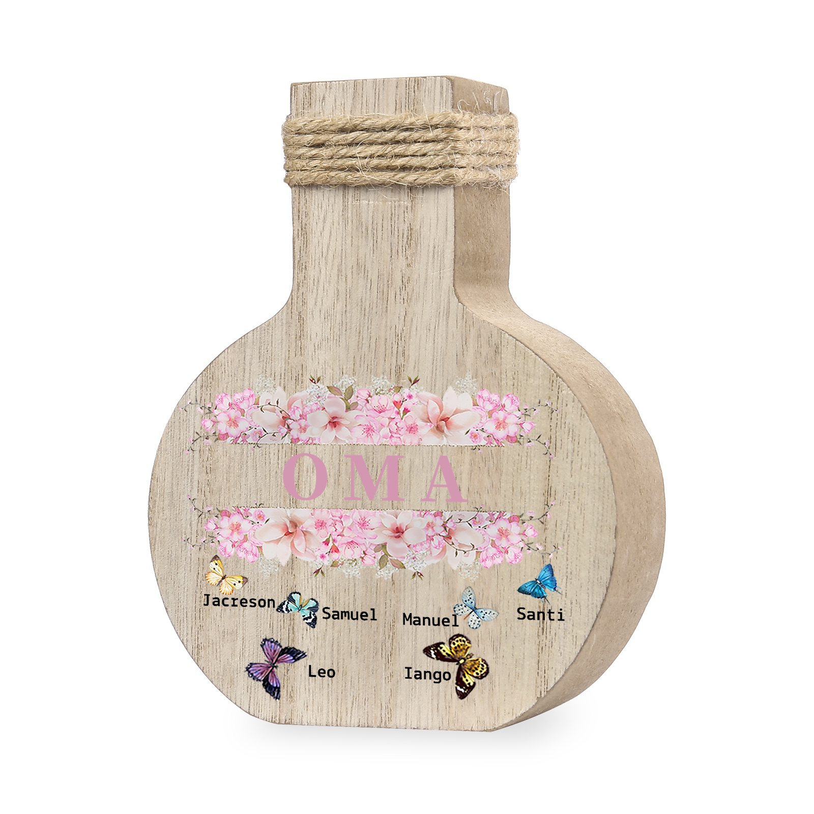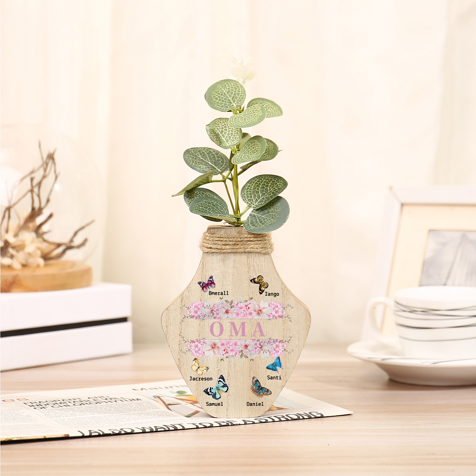 Holz Personalisierter 6 Namen & Text Schmetterlinge Vase