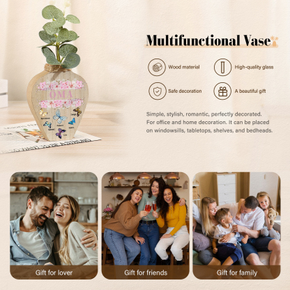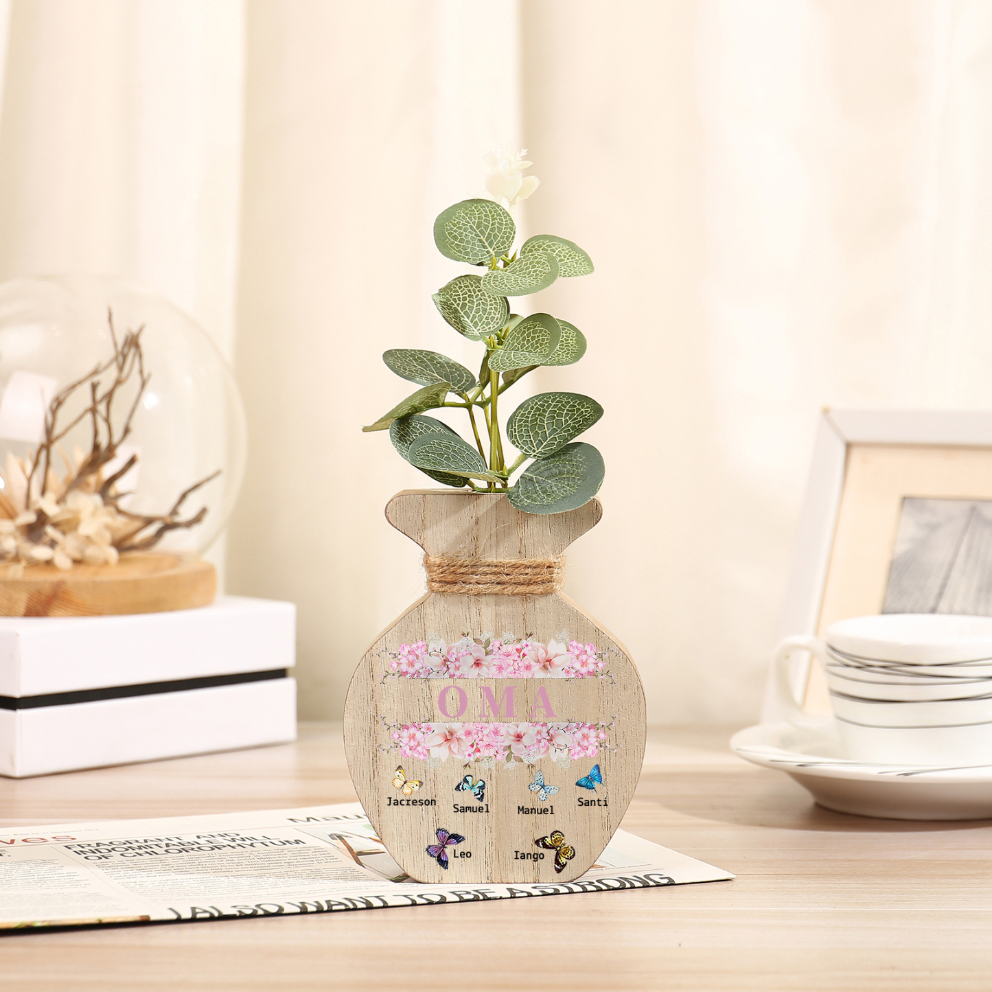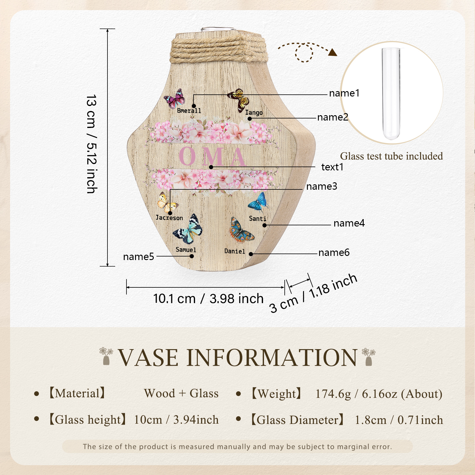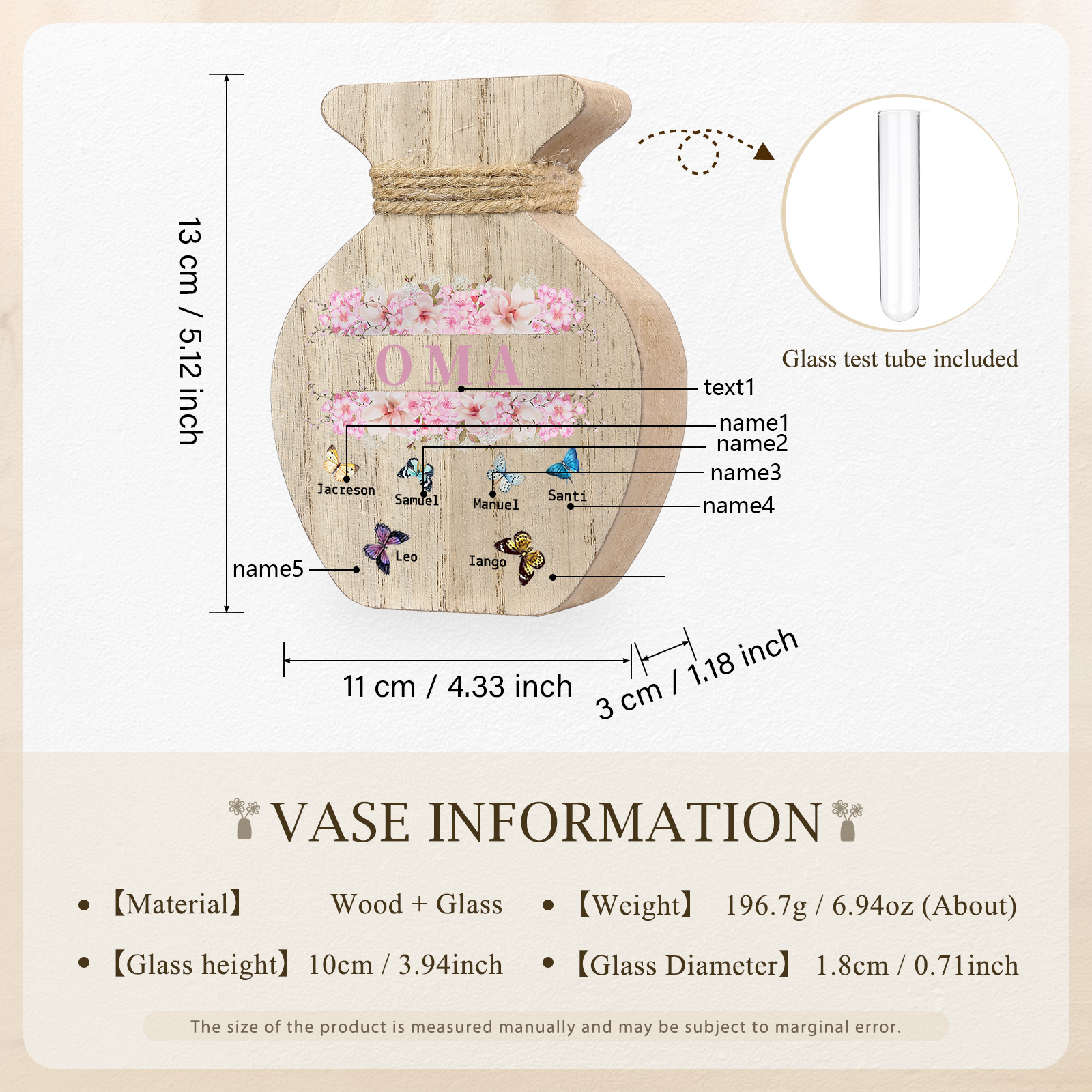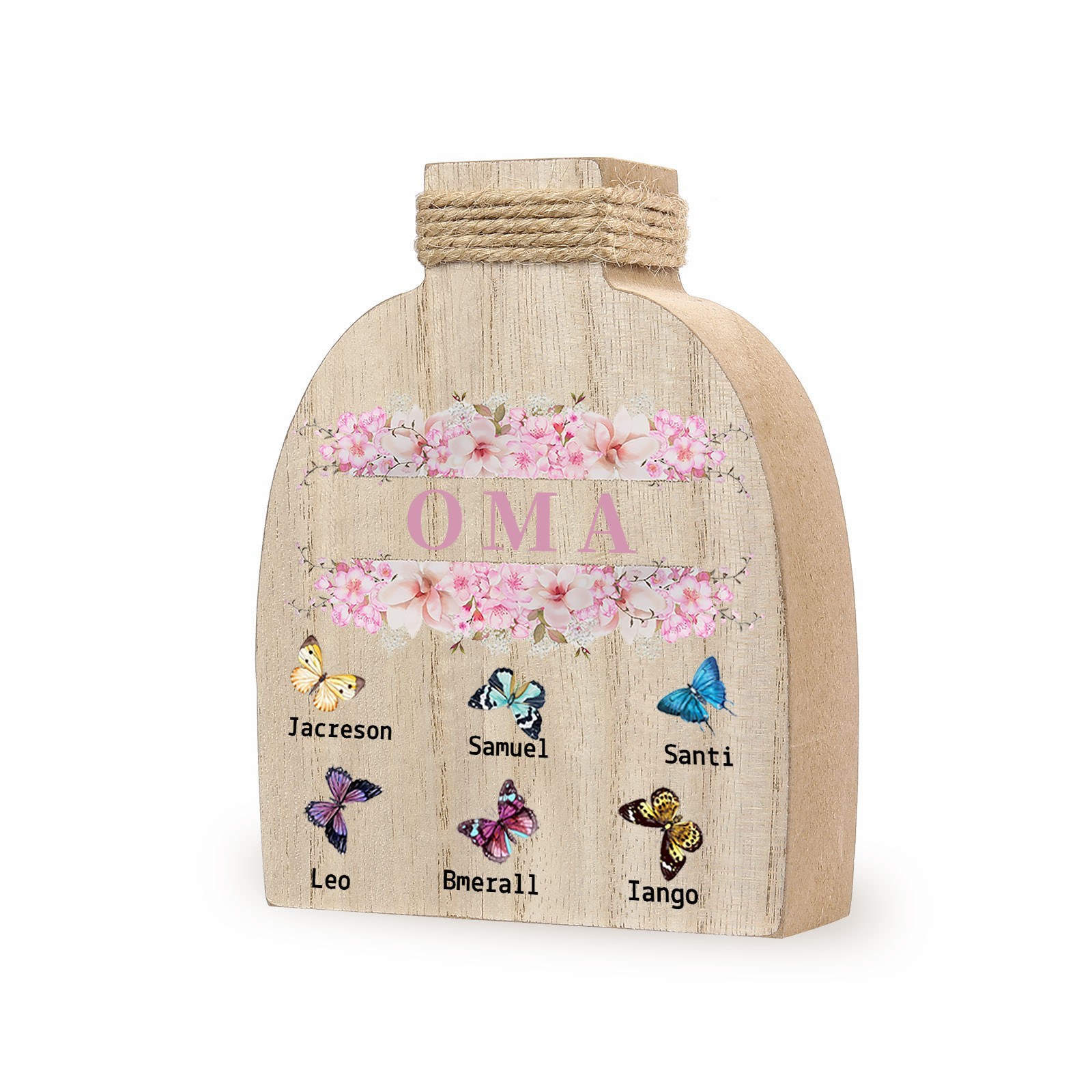 Holz Personalisierter 6 Namen & Text Schmetterlinge Vase