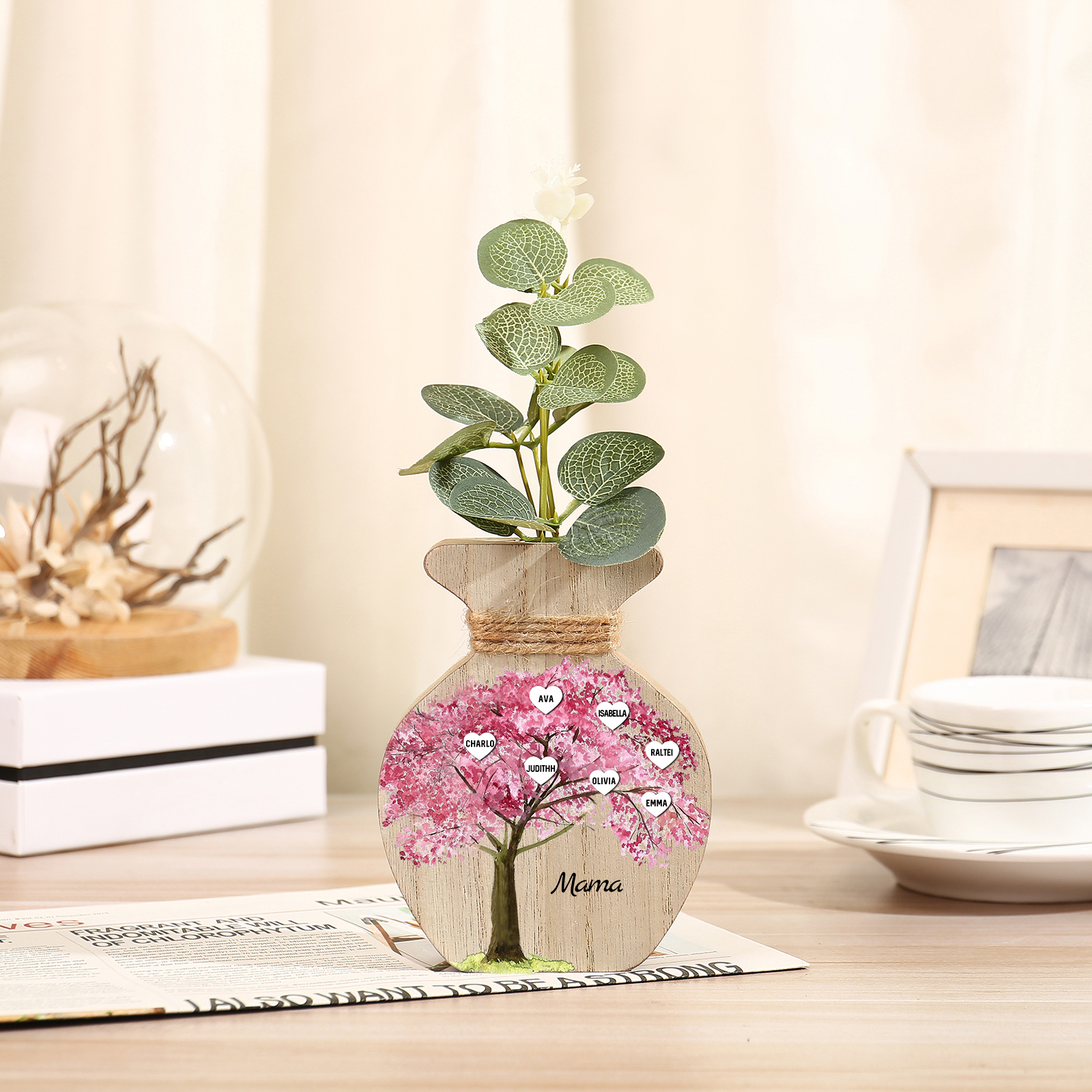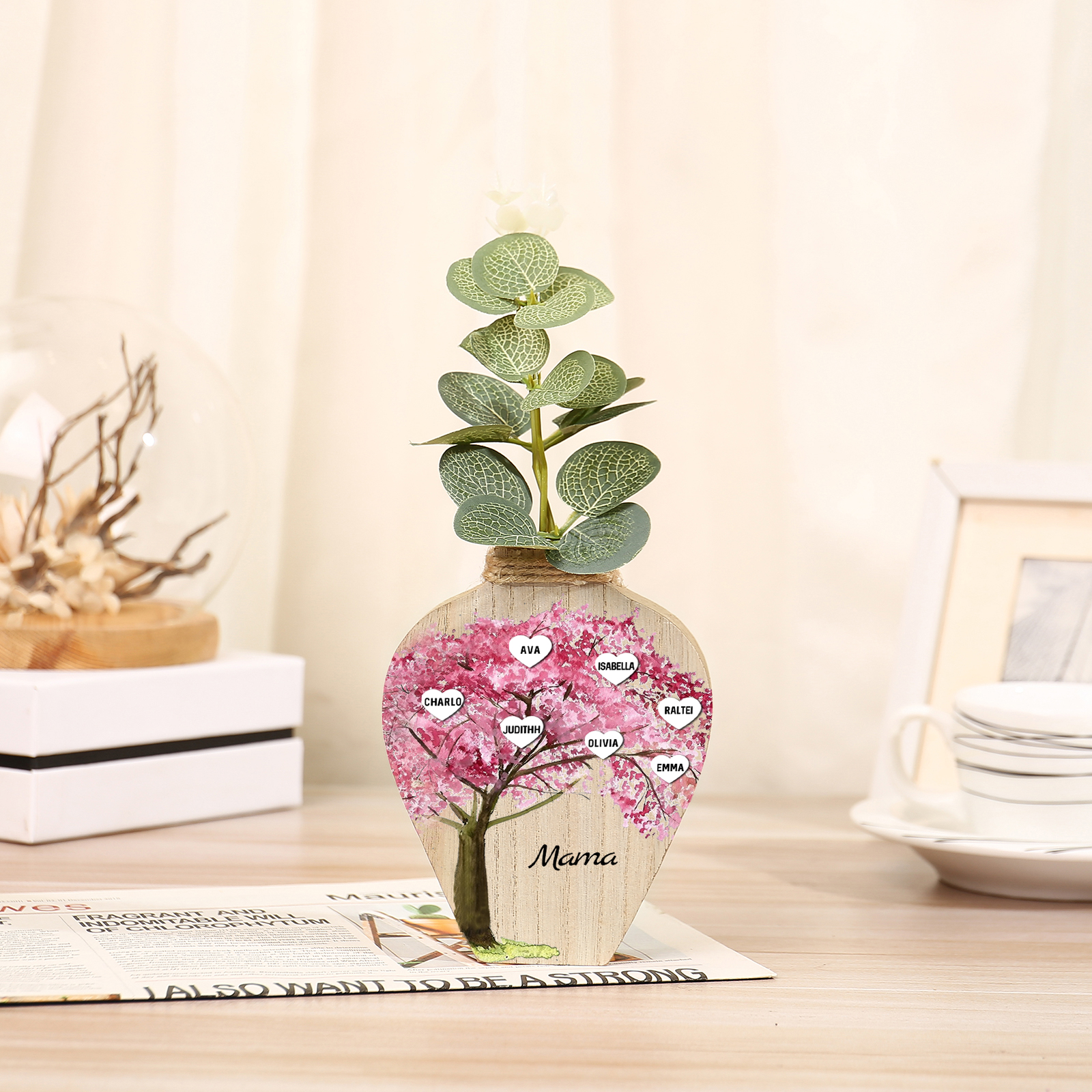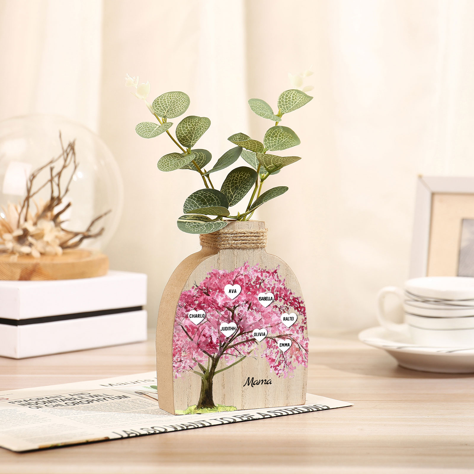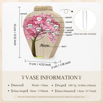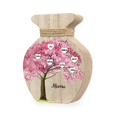 Holz Personalisierter 7 Namen & Text Rosa Familienbaum Famile Vase