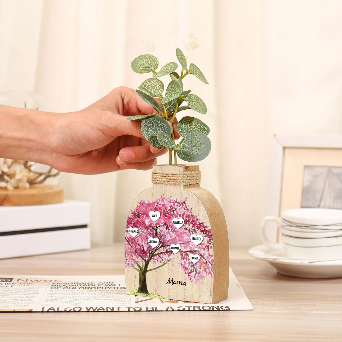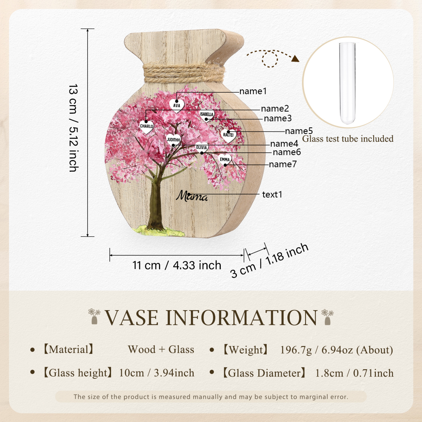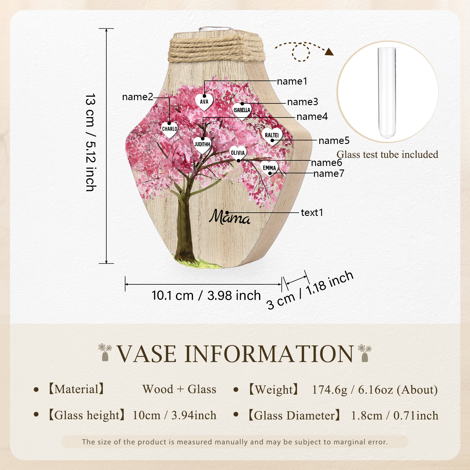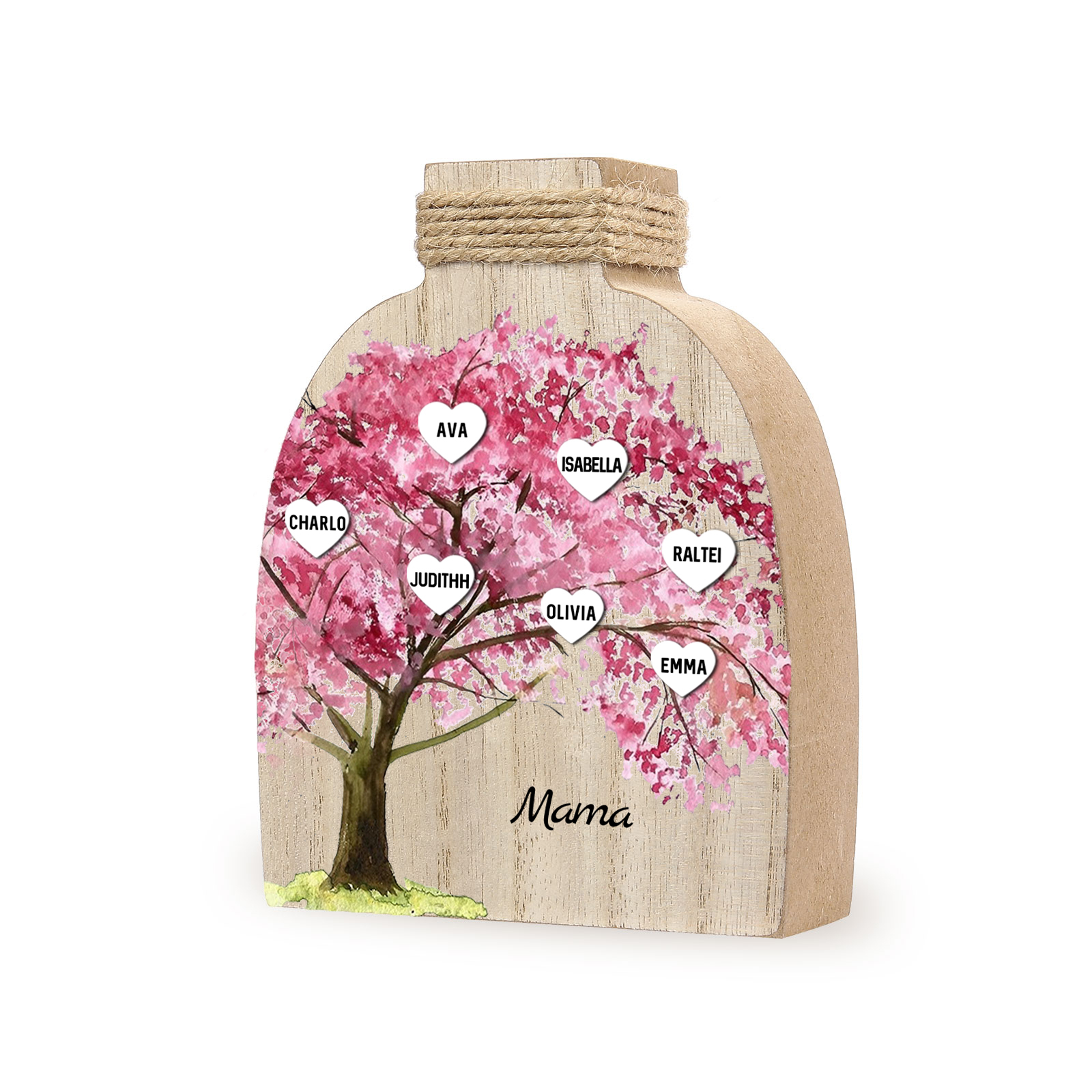 Holz Personalisierter 7 Namen & Text Rosa Familienbaum Famile Vase