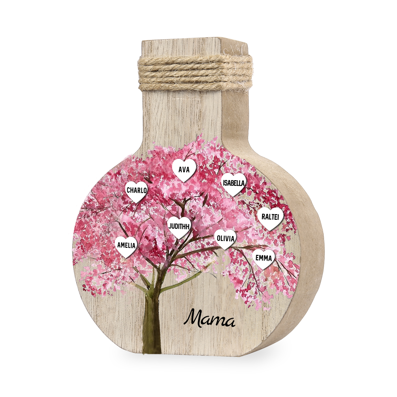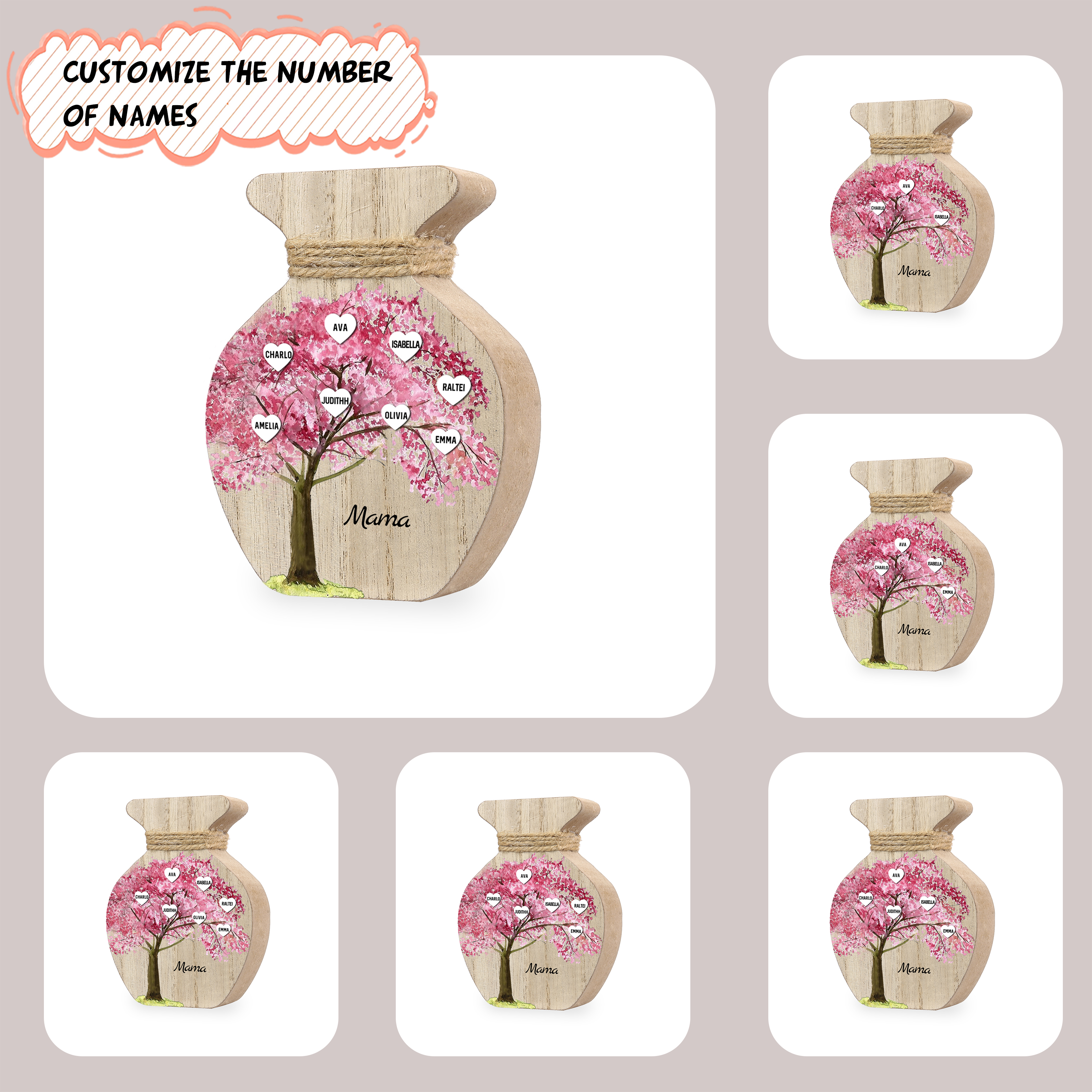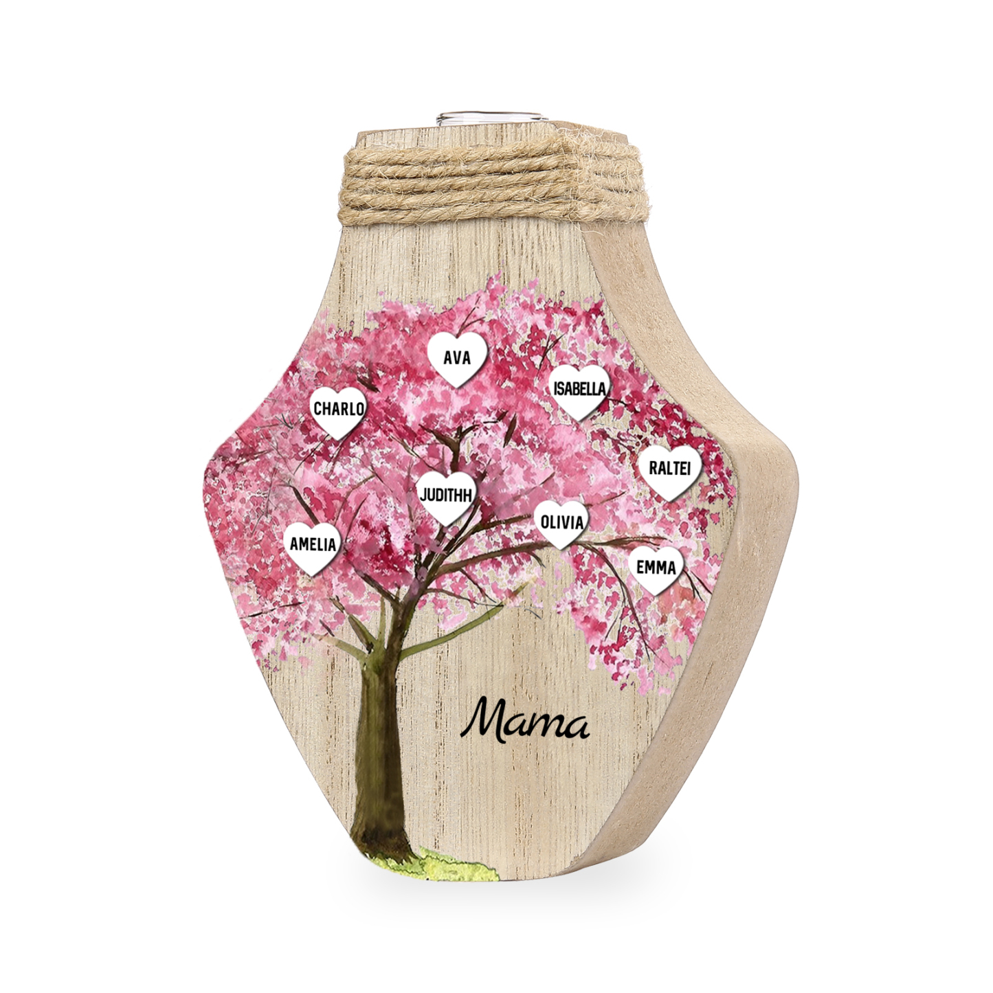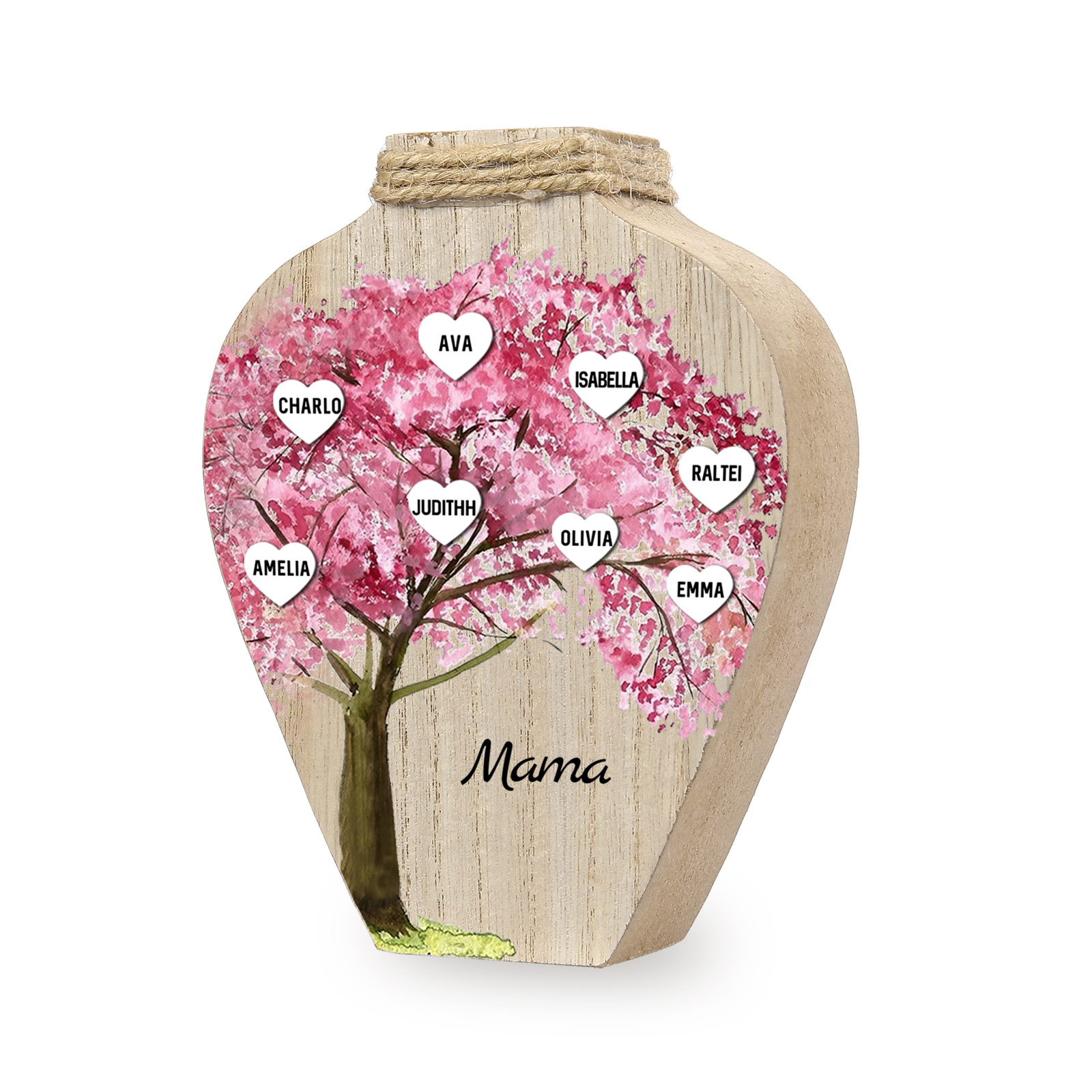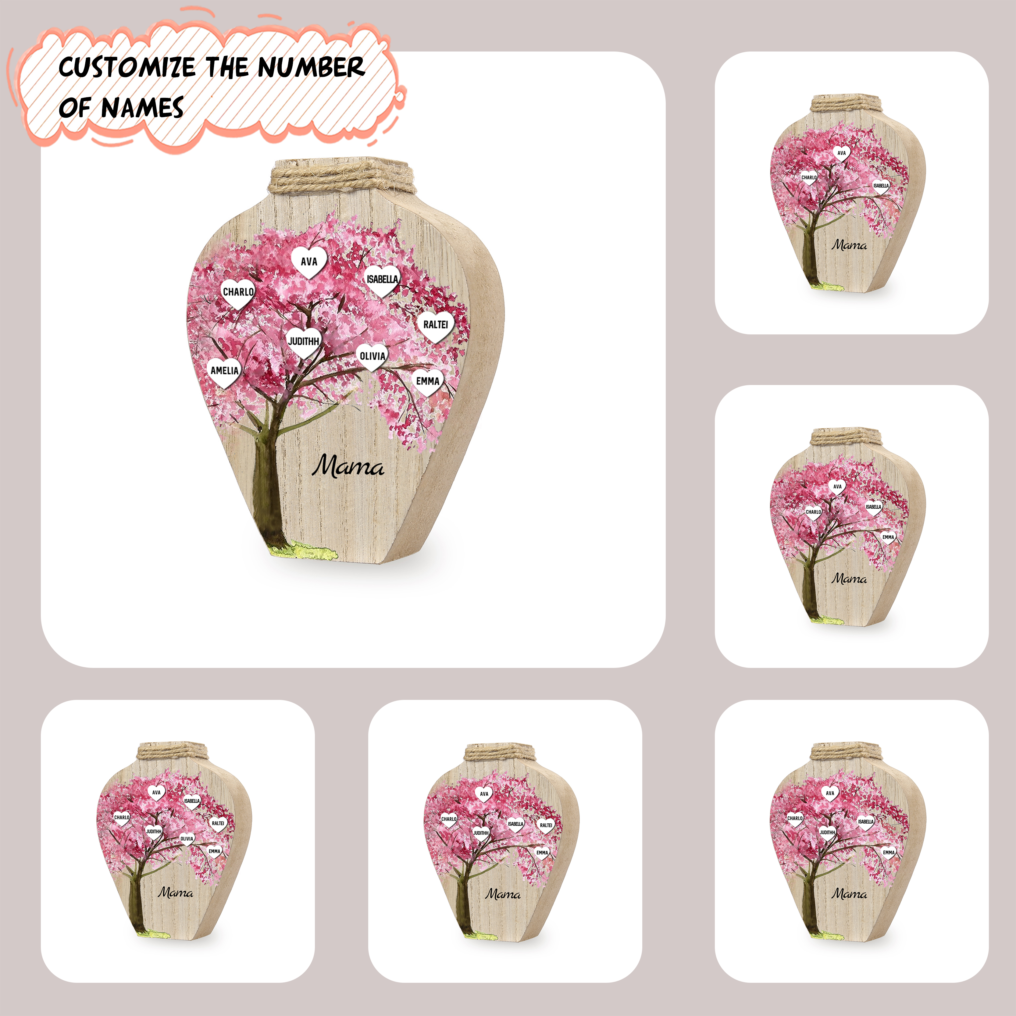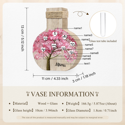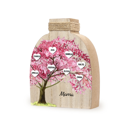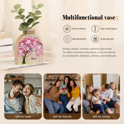 Holz Personalisierter 8 Namen & Text Rosa Familienbaum Famile Vase