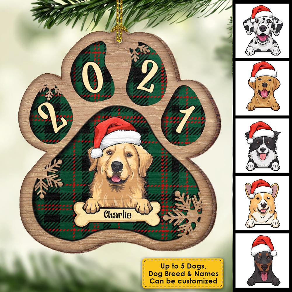 Holz Weihnachtsornament-Personalisierte Name Haustierpfote 5 Hundestile Ornament Weihnachtsgeschenk