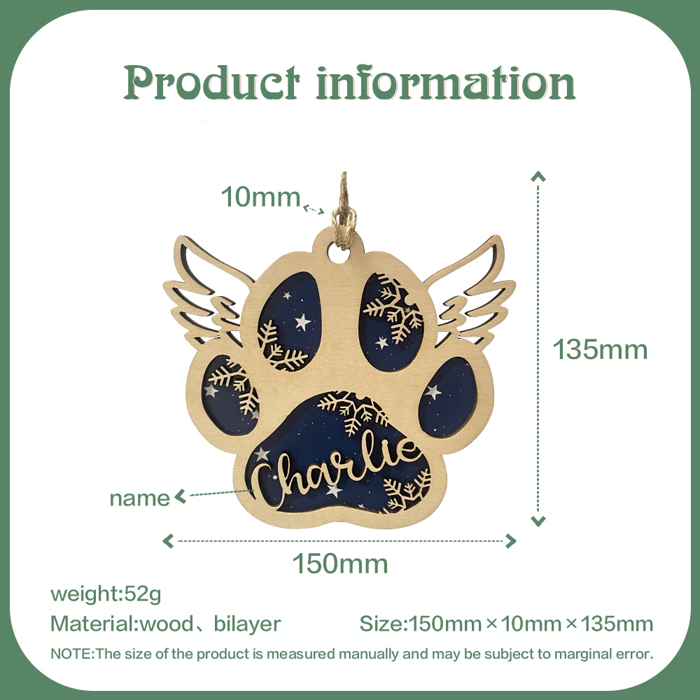Holz Weihnachtsornament-Personalisierte Name Schneeflocke Haustierpfote Anhänger Ornament Weihnachtsgeschenk