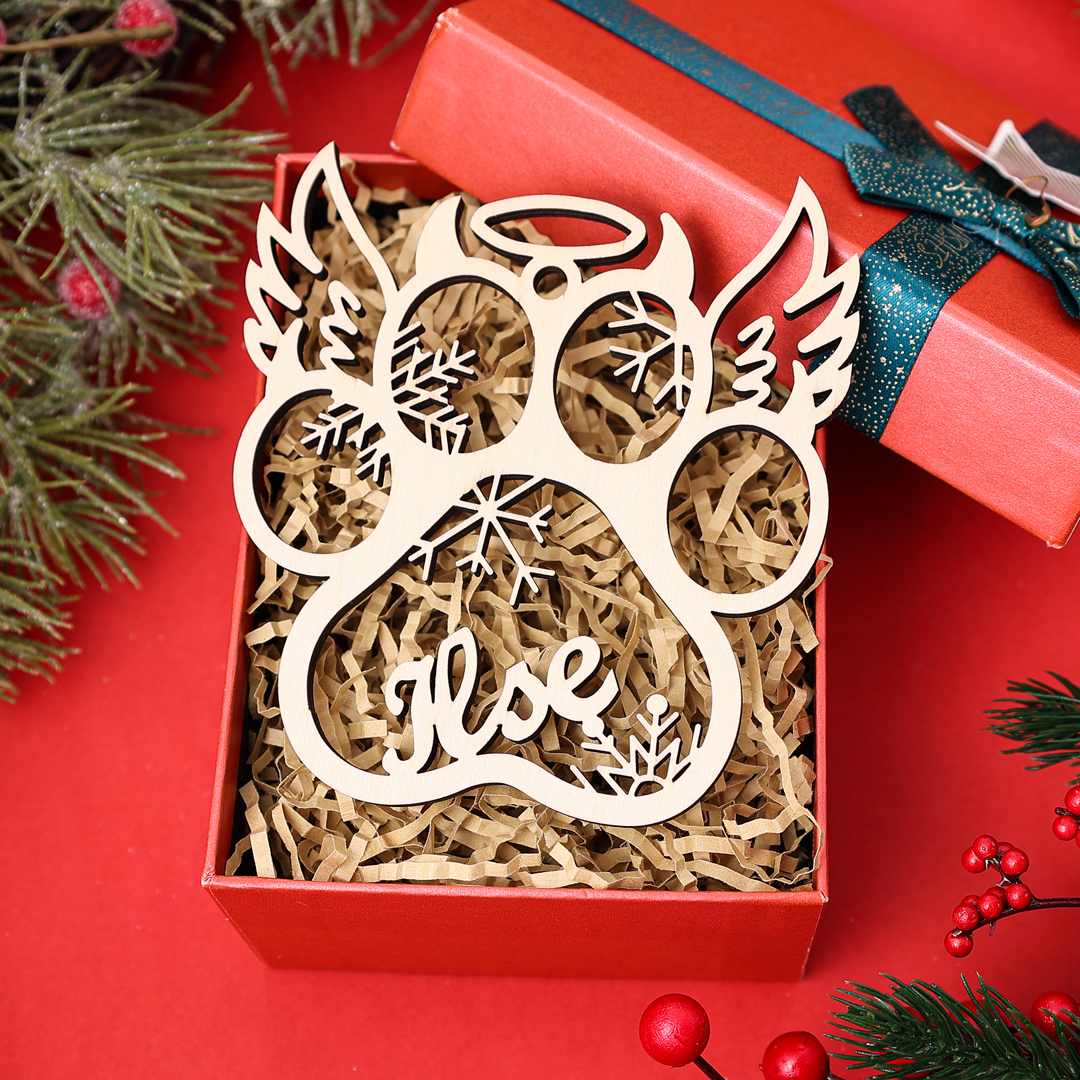 Holz Weihnachtsornament-Personalisierte Name Schneeflockel 4 Stile von Haustierpfote Anhänger Ornament Weihnachtsgeschenk