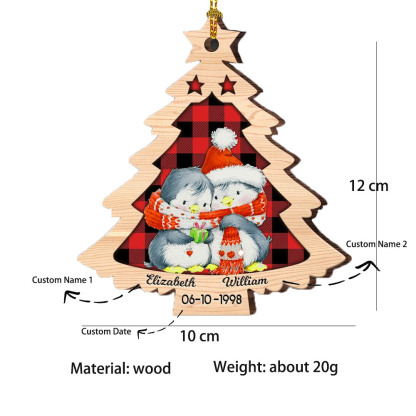 Holz Weihnachtsornament Personalisiertes 2 Namen Datum Pinguin Weihnachtsbaum Anhänger