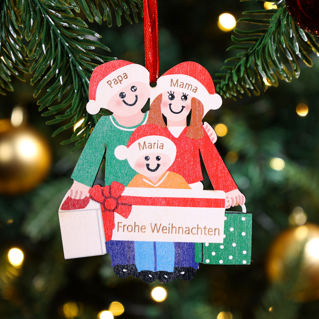 Holz Weihnachtsornament-Personalisiertes 3 Namen Text Ornament Ahhänger mit 3 Familienmitgliedern