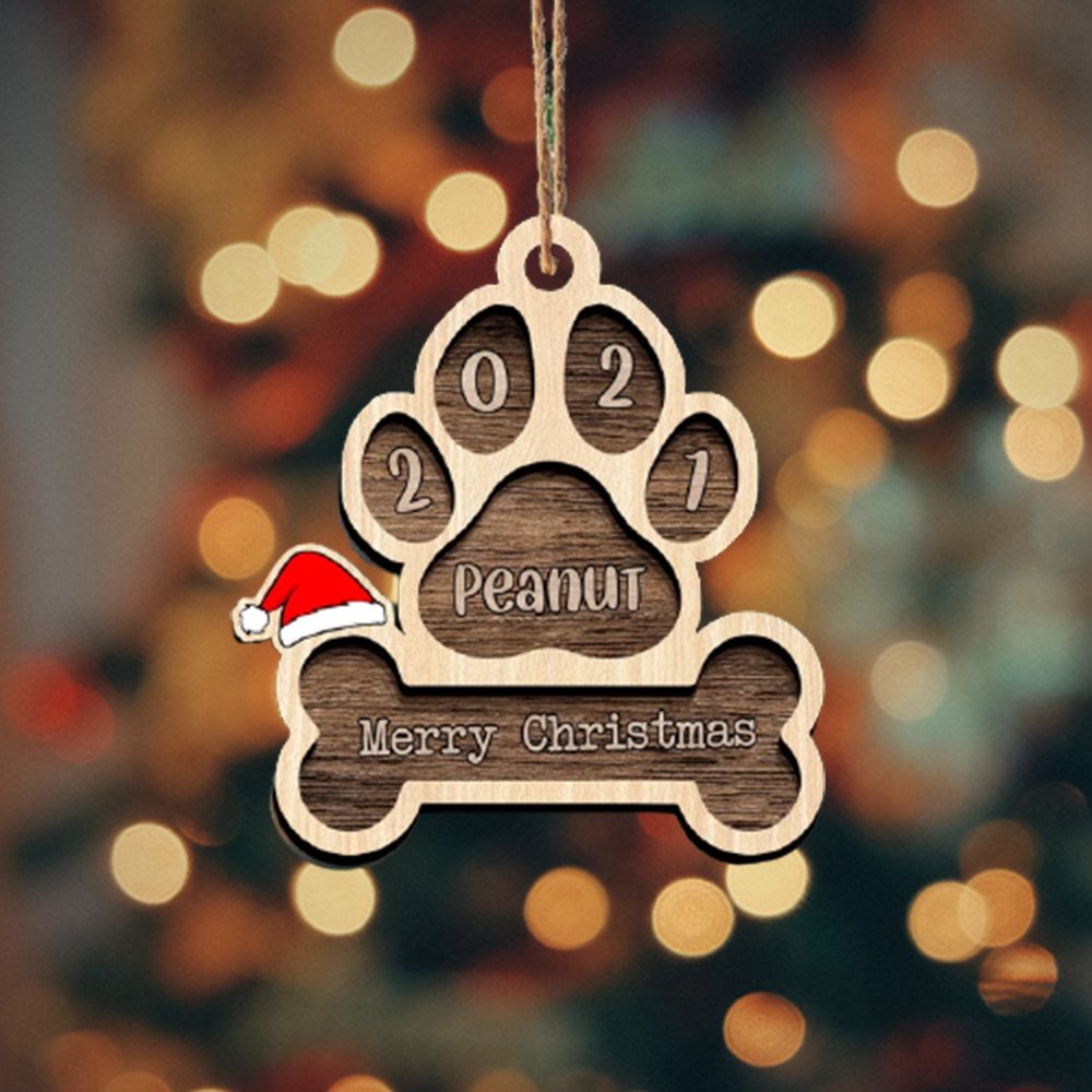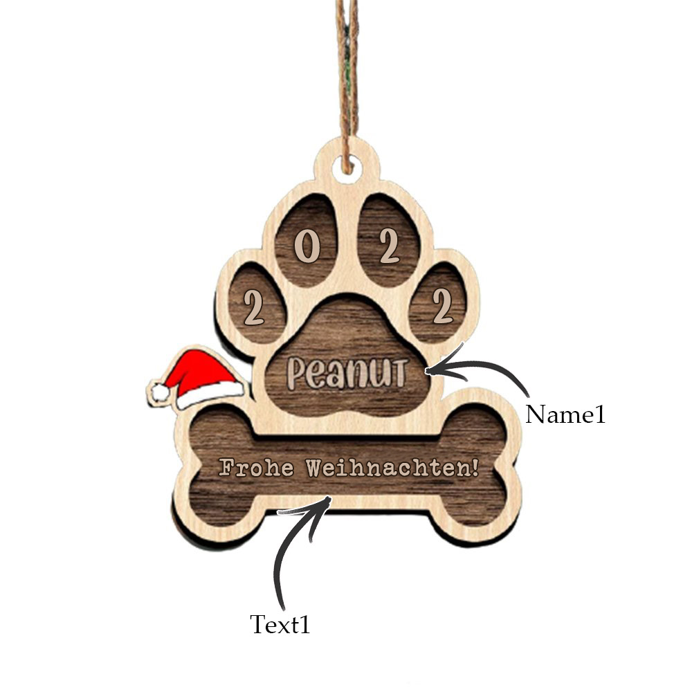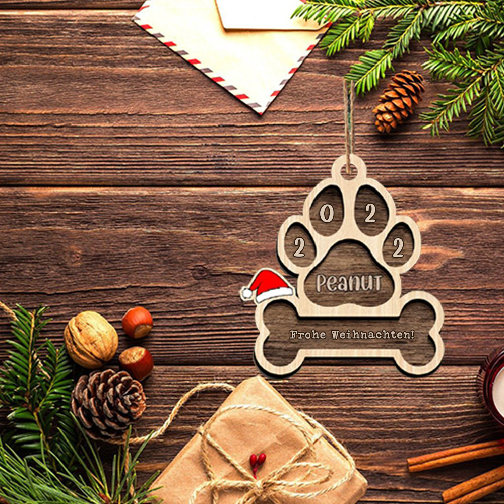 Holz Weihnachtsornament-Personalisiertes Name Jahr & Text Hundeknochen Ornament Anhänger Weihnachtsgeschenk
