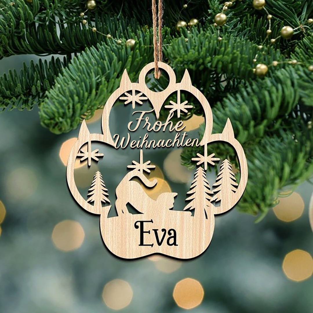 Holz Weihnachtsornament-Personalisiertes Name Katzenpfote Ornament Anhänger Weihnachtsgeschenk