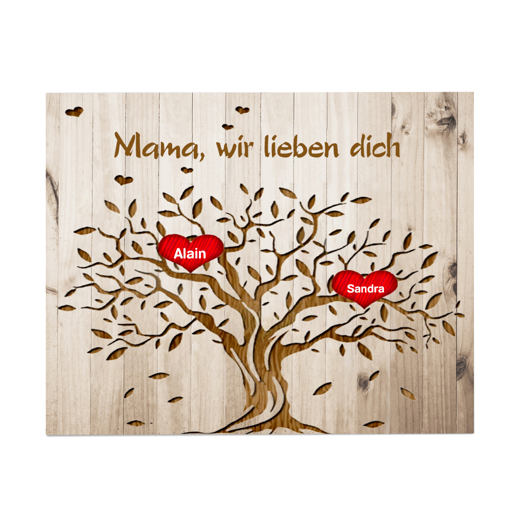 Holzrahmen - Personalisierter Text & 2 Namen Familienstammbaum Holzdekoration