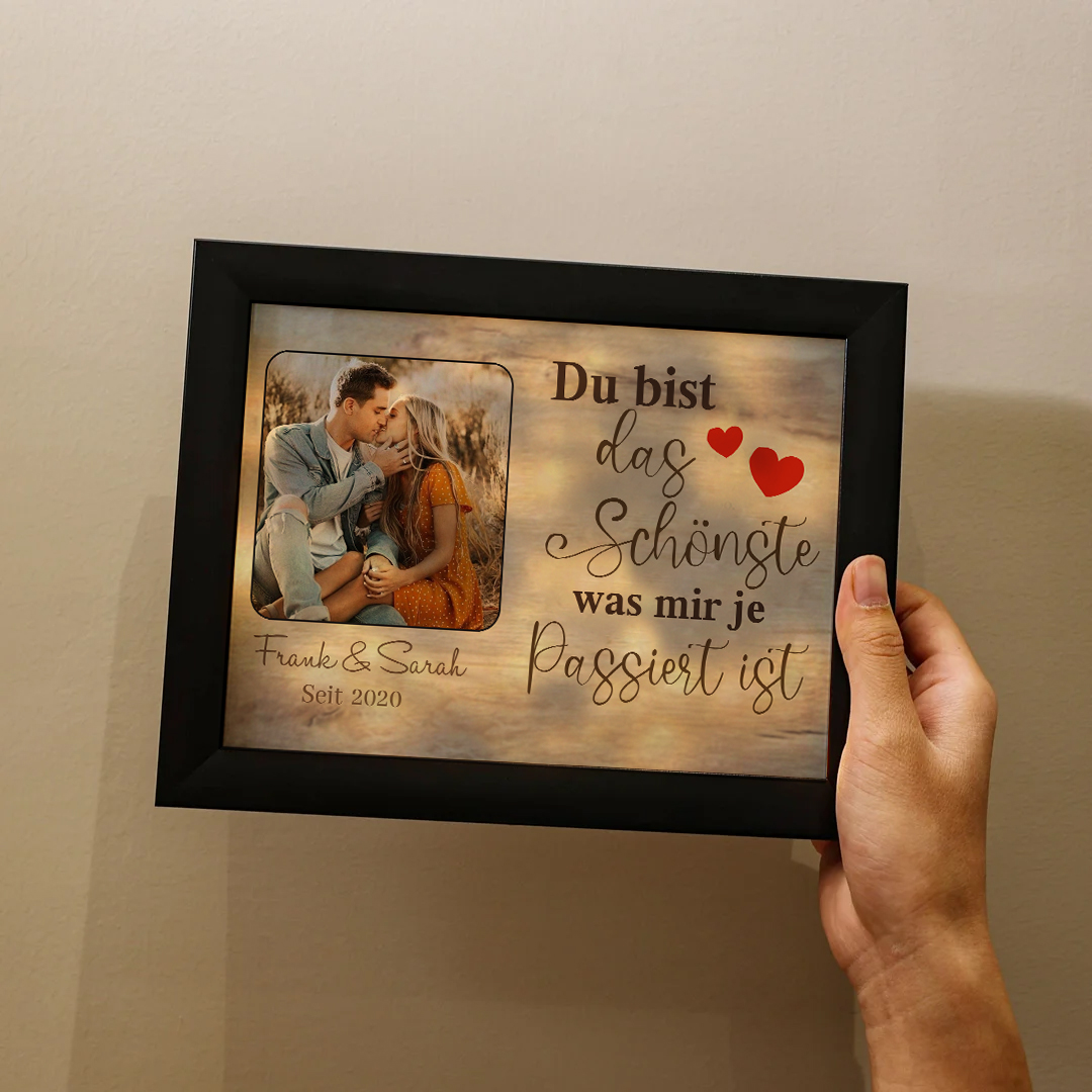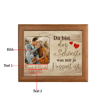 Holzrahmen/Plastikrahmen-Personalisiertes Foto & 2 Texte-Du bist das Schönste was mir je Passiert ist-Bilderrahmen für Paare