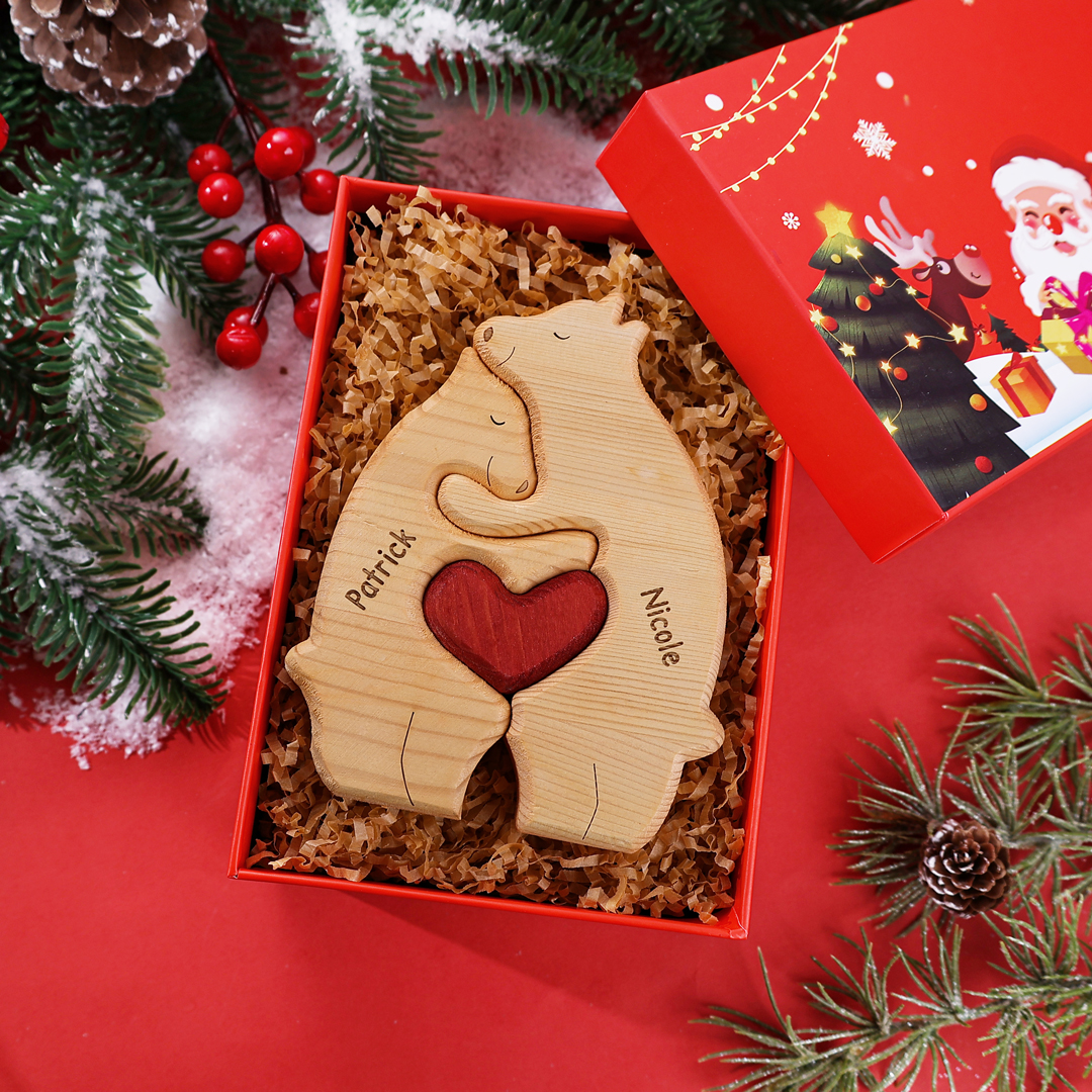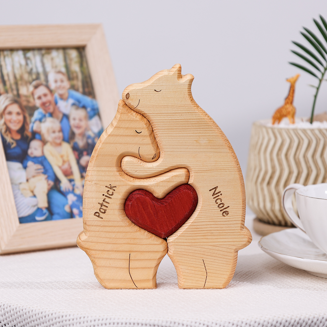 Holzskulptur-Personalisierte 2 Namen Bär Familien Holz Deko für Familie