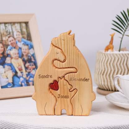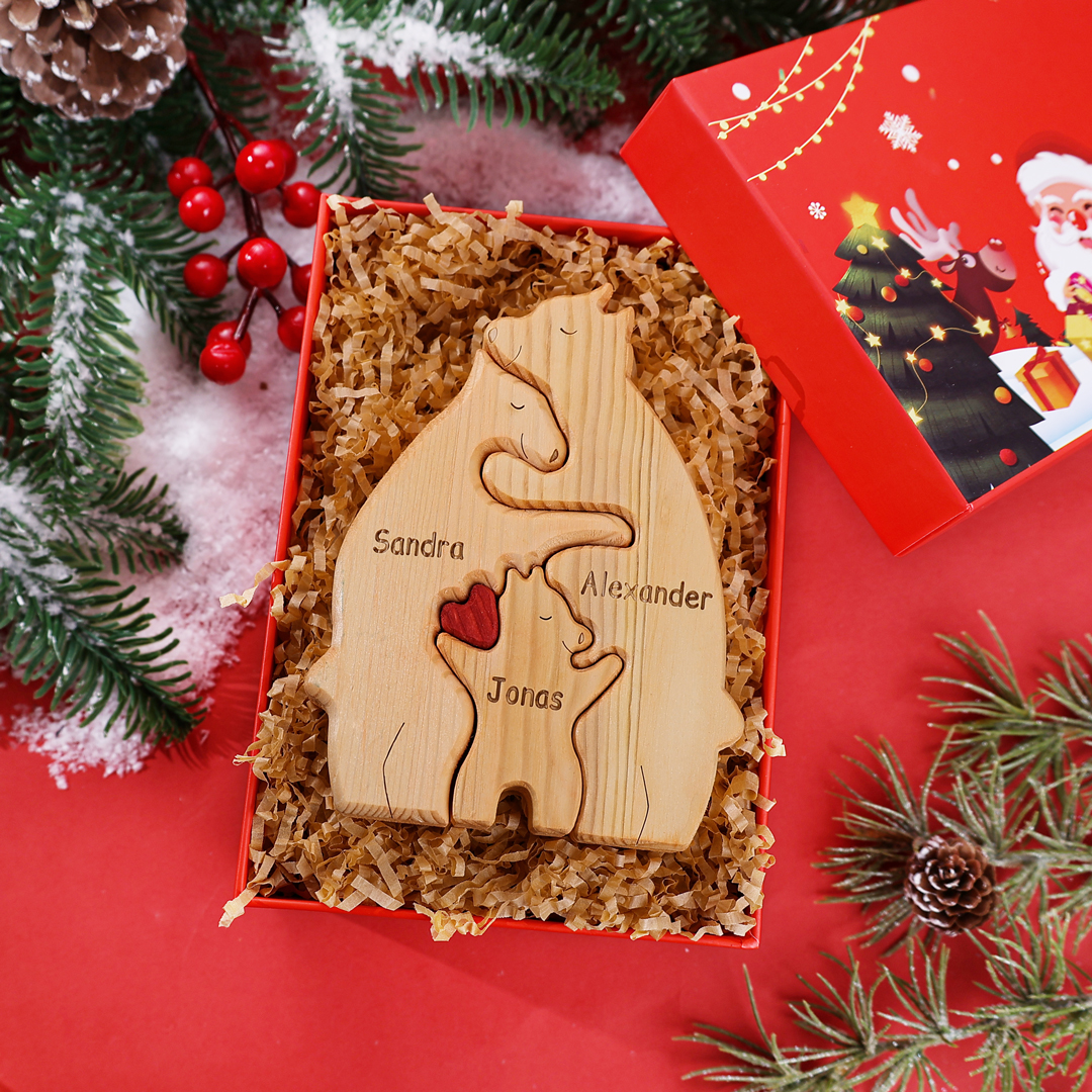 Holzskulptur-Personalisierte 3 Namen Bär Familien Holz Deko für Familie