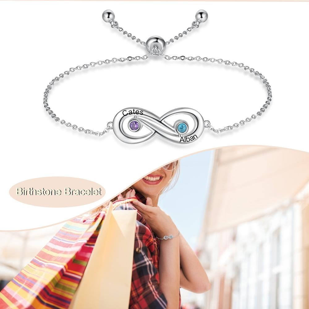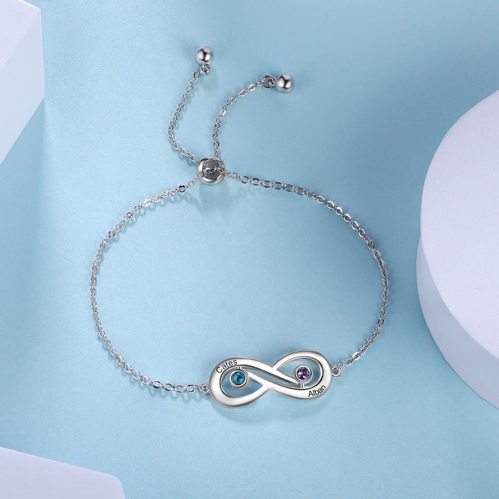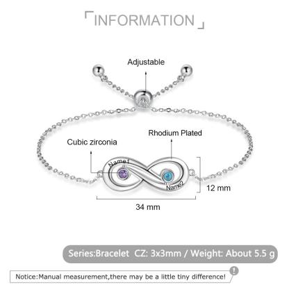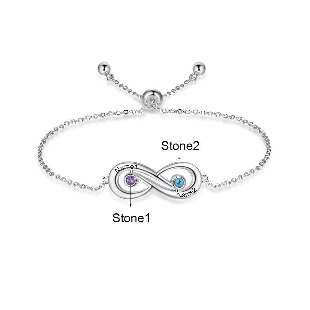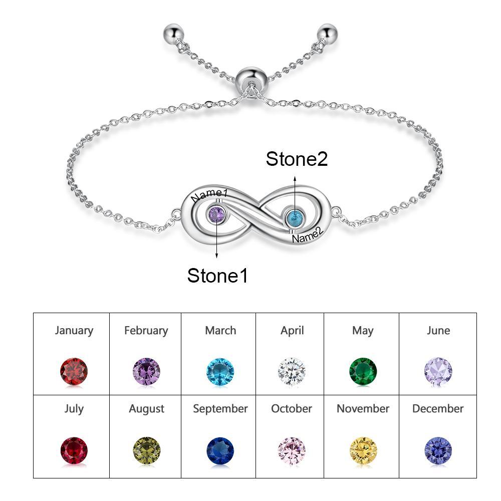 Infinity Verstellbarer Armband 2 Namensgravur 2 Geburtssteine