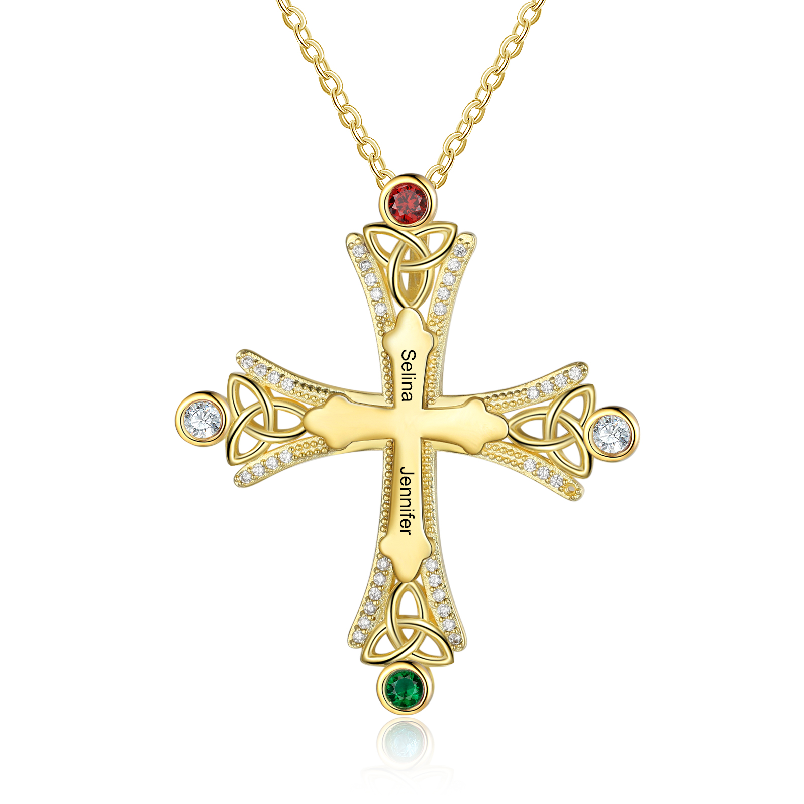 Kommunion Kreuzanhänger Halskette Personalisierbare 2 Namen und 2 Geburtssteine Kette
