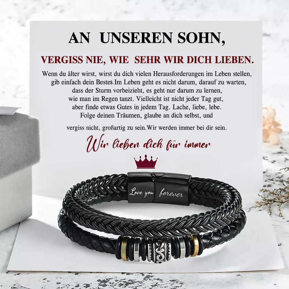 Leder Armband -An unseren Sohn Geschenk- mit Nachrichtenkarte