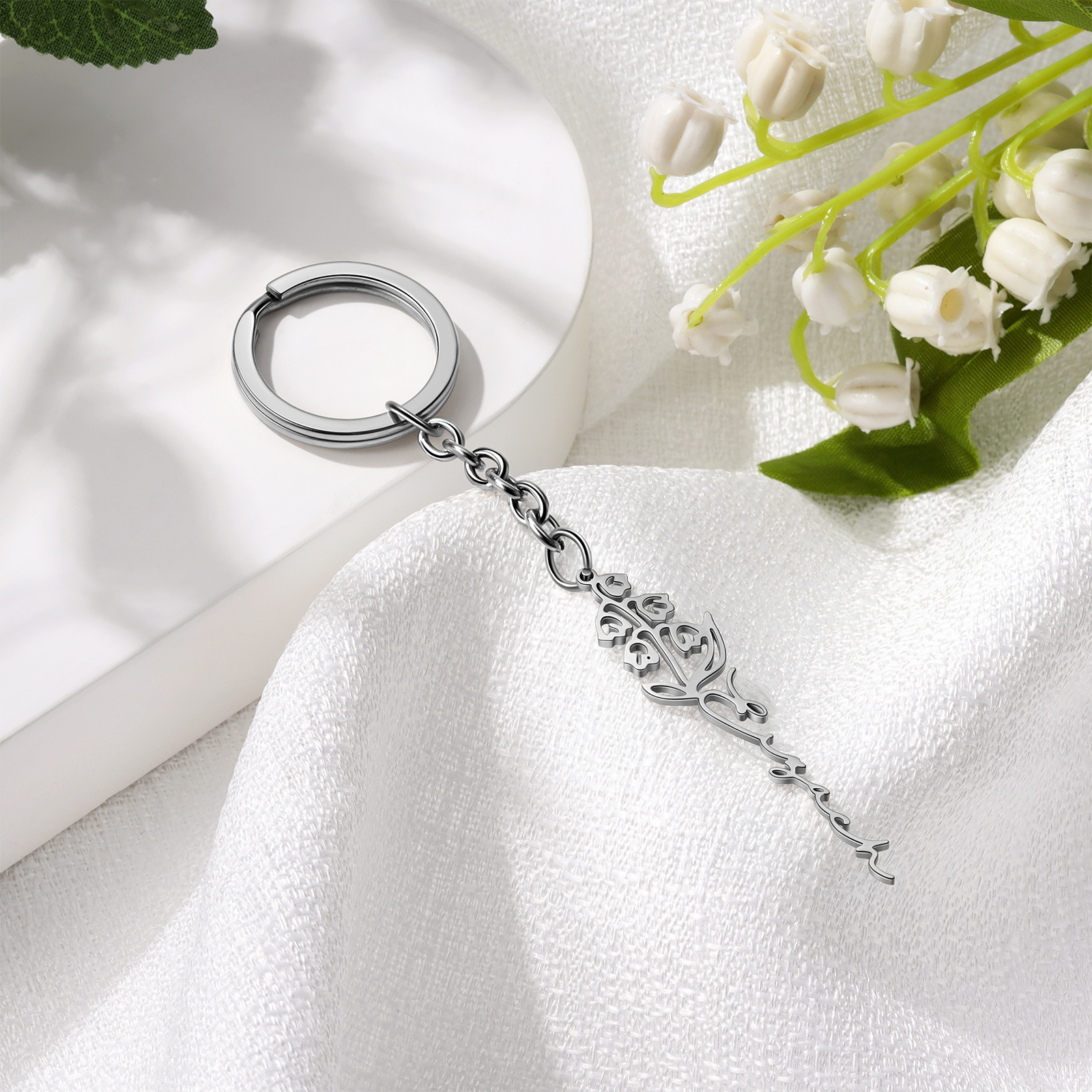 Mai Maiglöckchen Personalisierte Name Schlüsselanhänger - Geburtsblume Serie