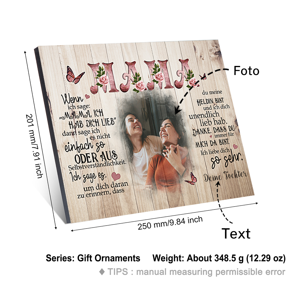 Mama Holzbild - Personalisierter Text & Foto-Mama, ich liebe dich so sehr-Holzdekoration