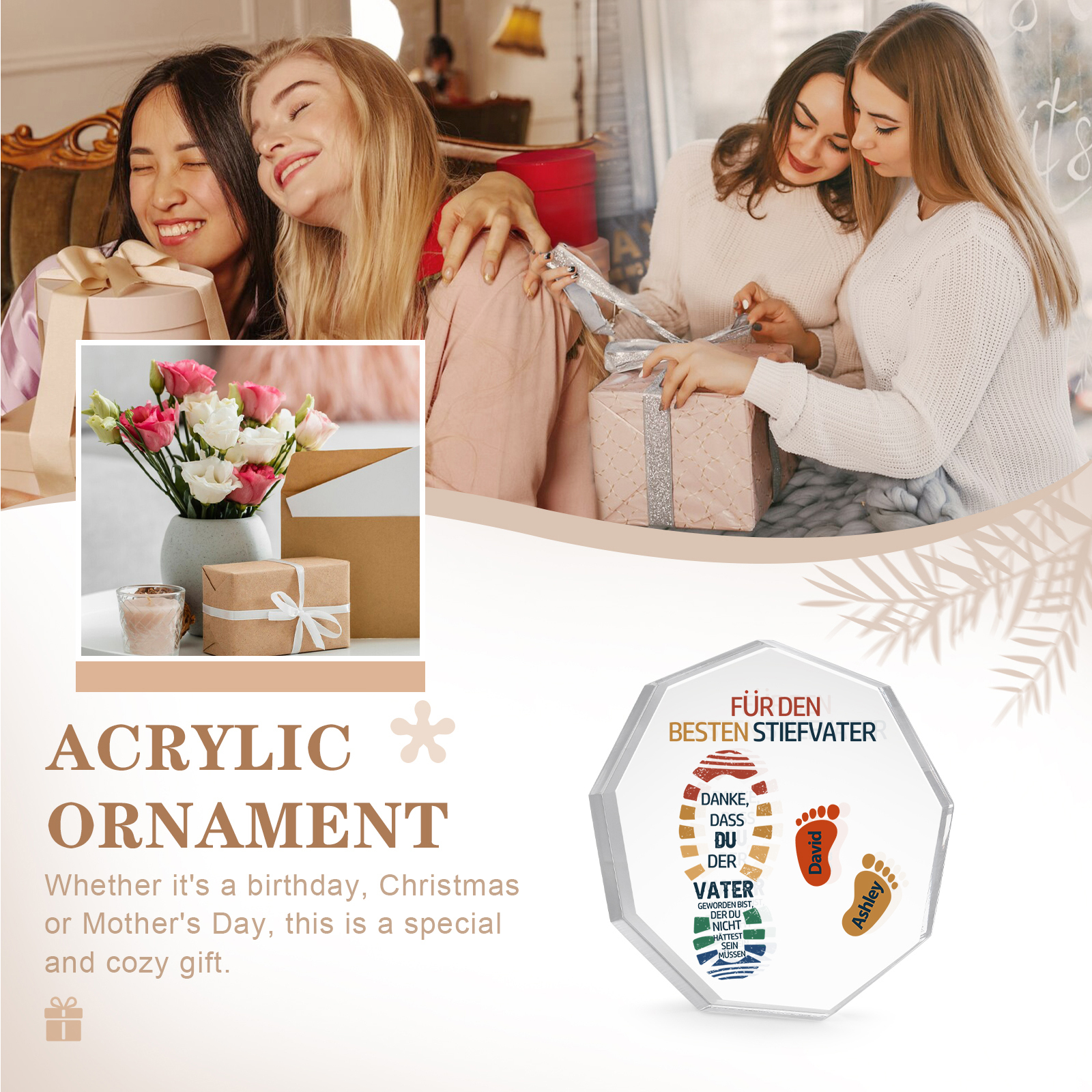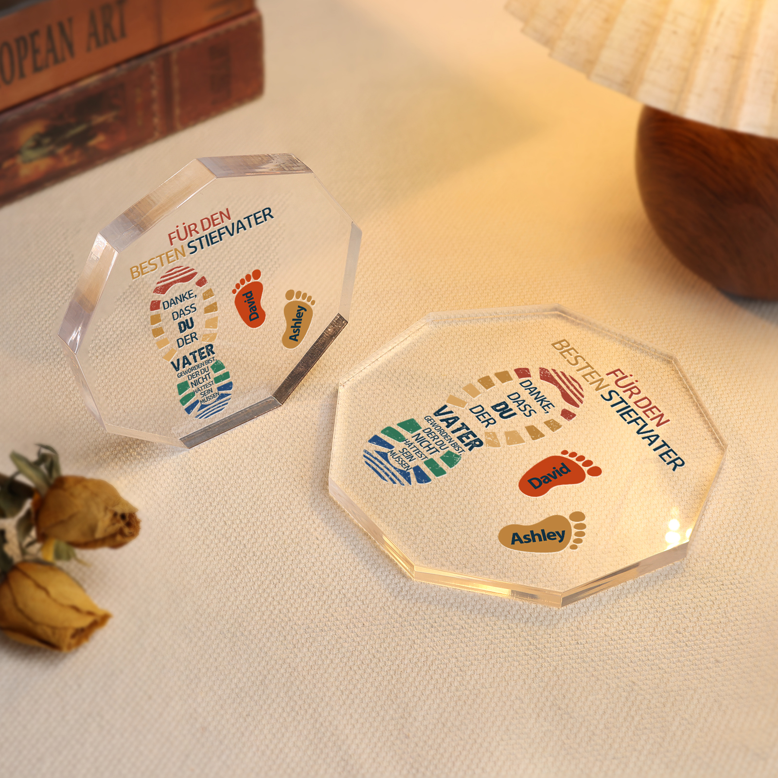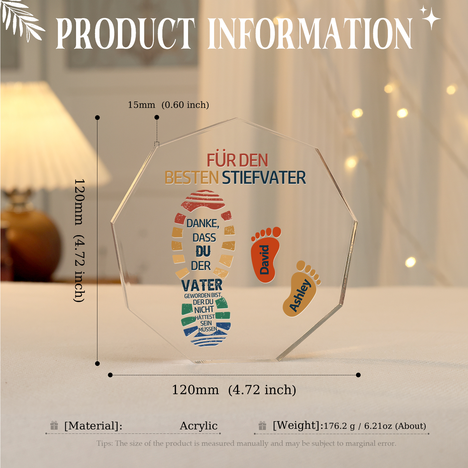 Neuneck Acryl-Deko Personalisierte 2 Namen -Für den besten Stiefvater- Schreibtischdekoration für Stiefvater